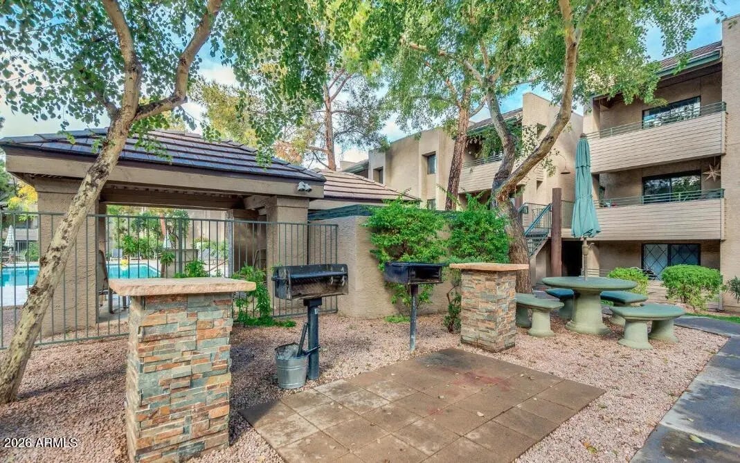 FULLY FURNISHED RENTAL AVAILABLE FOR MOVE IN 4/1/26. Tenants have use of the exercise room diagonal to the condo, a BBQ just around the corner next to the pool, a nice hot tub/spa around the adjacent building, plus covered parking. The unit is 4 minutes to the 101 freeway, close to Fry's, the Fashion Mall, Civic Center and walking distance to old Scottsdale. Located right in Old Town Scottsdale, across the complex is Continental Golf Course. All utilities are to be paid for by the tenant.