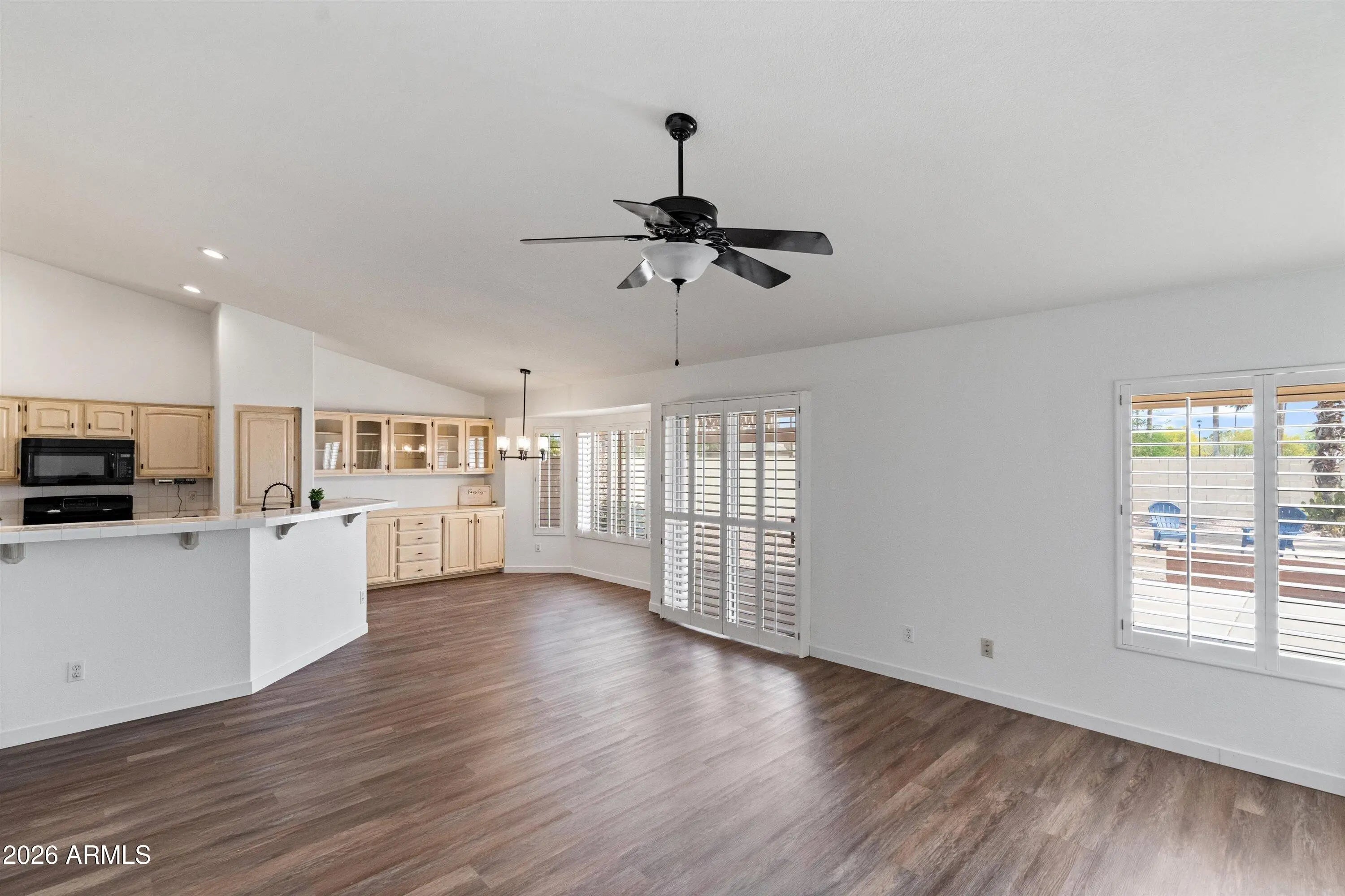 Move-in ready home in the highly sought-after PebbleCreek active adult community, offering the perfect blend of comfort, convenience, and lifestyle. This home features a bright, open layout with fresh updates and a clean, modern feel throughout. The spacious living area flows seamlessly into the kitchen and dining space, creating an ideal setup for both everyday living and entertaining. Large windows bring in natural light, making the home feel open and inviting. The kitchen offers ample cabinetry, generous counter space, and a functional layout that connects directly to the main living area. The primary suite provides a comfortable retreat, while an additional bedroom offers flexibility for guests, hobbies, or a home office. Step outside to a private backyard with covered patio, perfect for relaxing or enjoying evenings. The low-maintenance landscaping makes for easy upkeep year-round. Located just minutes from golf, clubhouses, pools, fitness centers, tennis courts, and dining, this home offers access to everything PebbleCreek is known for.