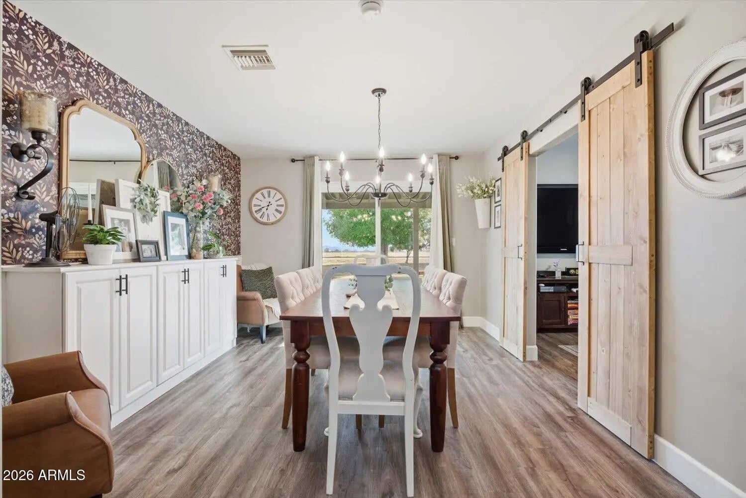 Welcome to Northwood Park Estates - Where Space, Style & Freedom Come Together. Situated on a rare 1.007 irrigated acre lot in the highly sought-after Northwood Park Estates subdivision, this beautifully remodeled 5-bedroom, 3-bath home offers the perfect blend of modern comfort & country charm. From the moment you arrive at the quiet cul-de-sac lot, you'll appreciate the expansive lawn, mature trees, RV gate with dedicated RV hookup, & room for horses. The irrigated lot, fruit trees, & wide-open space create the lifestyle so many buyers are searching for. Step inside to discover a thoughtfully remodeled interior featuring luxury wood-look flooring, designer finishes, & a light-filled open layout. The stunning kitchen boasts crisp white cabinetry, quartz countertops, stainless steel appliances, double ovens, a wine rack, & a breakfast bar that flows seamlessly into the dining and living spaces. The inviting family room showcases a custom built-in entertainment center and cozy fireplace -- perfect for gatherings. A separate dining room with statement wallpaper & barn doors adds character and flexibility for entertaining or multi-use space. The spacious primary suite is a true retreat with backyard views, a beautifully updated bathroom featuring dual vanities, marble countertops, designer mirrors, & a striking walk-in shower with black-framed glass. With 5 generously sized bedrooms & 3 remodeled bathrooms, there is room for everyone -- whether you need guest space, a home office, or multi-generational living. Additional highlights include: Owned solar for energy efficiency, RV gate & parking, Horse privileges, Irrigation rights, Mature fruit trees, Remodeled throughout, Large covered patio overlooking lush green lawn. This is the rare opportunity to own over an acre in one of the area's most desirable subdivisions -- with modern updates already done for you. Homes like this don't come around often.