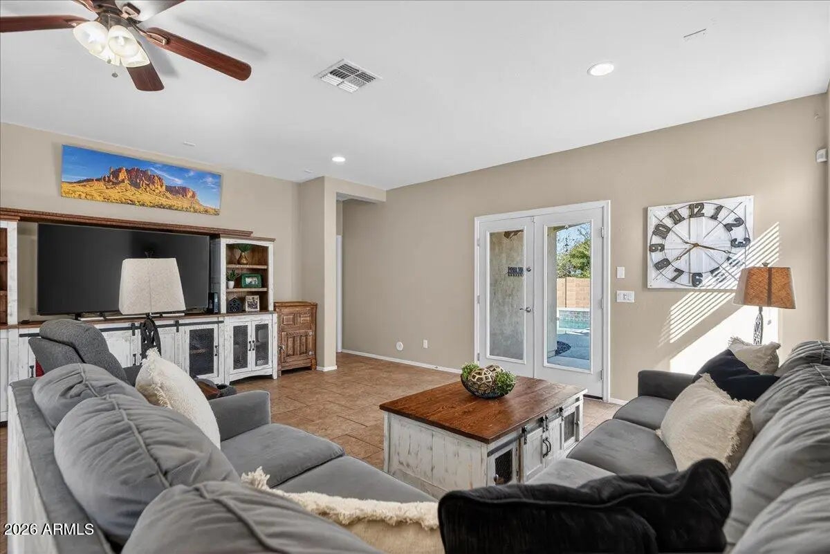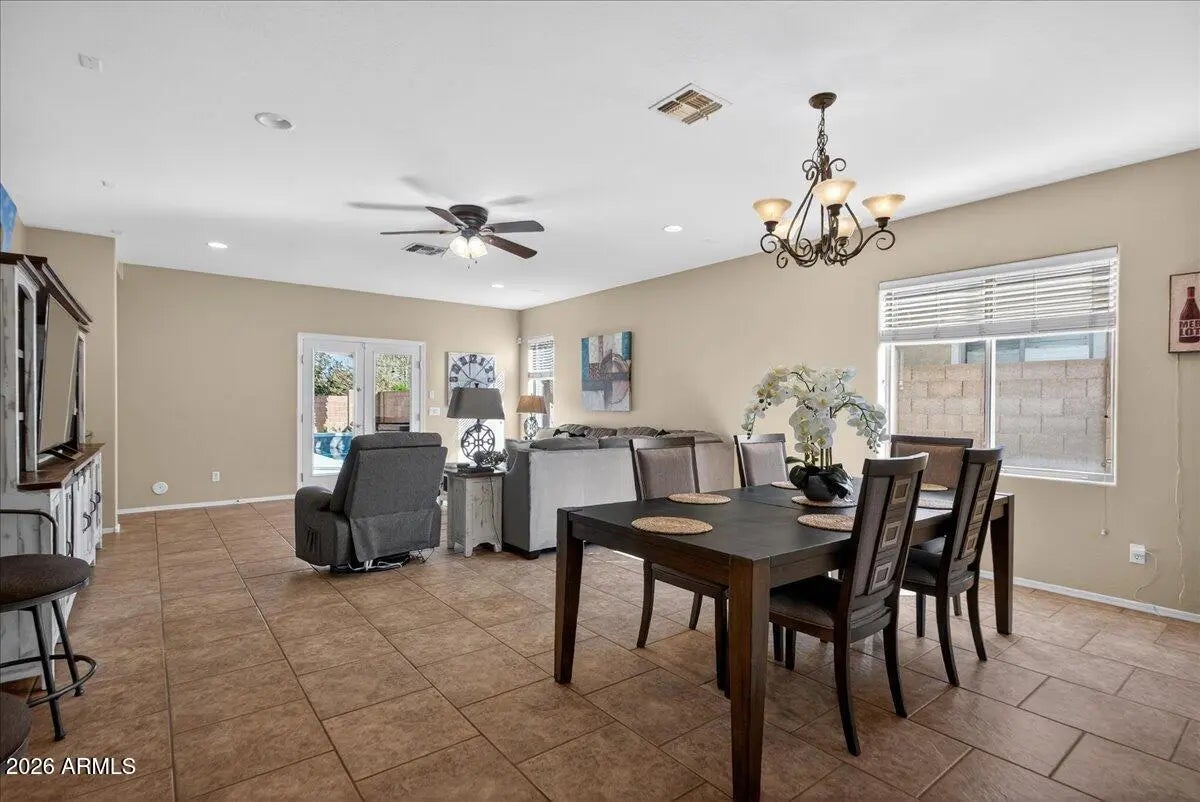 New Price! Welcome home to Seville! This 3 bedroom, 2 bath (plus bonus den) home offers 2,064 SF of thoughtfully designed living space combining comfort, functionality, and exceptional outdoor living. Inside, you'll find a versatile den ideal for a home office, playroom, or flex space, along with spacious bedrooms and an open layout perfect for both everyday living and entertaining. The primary suite is large and offers a sitting room, which could easily double as a home office. Step outside to your own private backyard oasis, featuring a stunning heated pool, perfect for enjoying Arizona's sunny days and relaxing evenings. Enjoy mountain views and the convenience of restaurants, shopping, and schools nearby! Newer HVAC, pool heater, water heater, irrigation and more! Take a look today