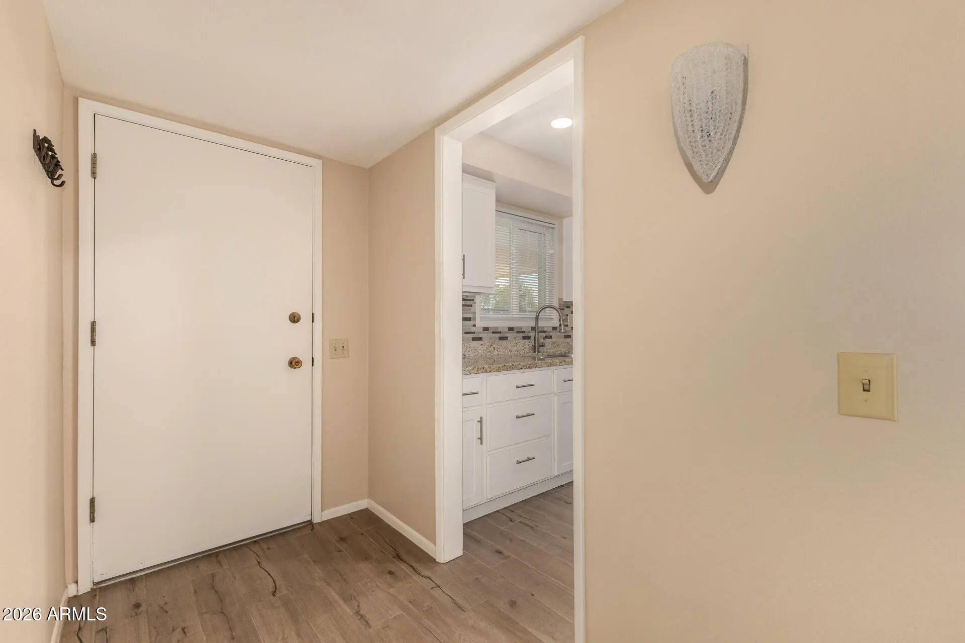 Remodeled condo, minutes from the 101, Banner hospital, and restaurants. Newly installed patio cover. Roof was repaired in accordance with 2025 inspection, including 2 applications of elastomeric coating. Attached carport with electronic security gate. Tiled patio. Block privacy wall. Large laundry room, which doubles as storage for your golf cart and other sundries. Completely Furnished. Move-in ready. All items convey, except interior camera, modem, and air purifier.