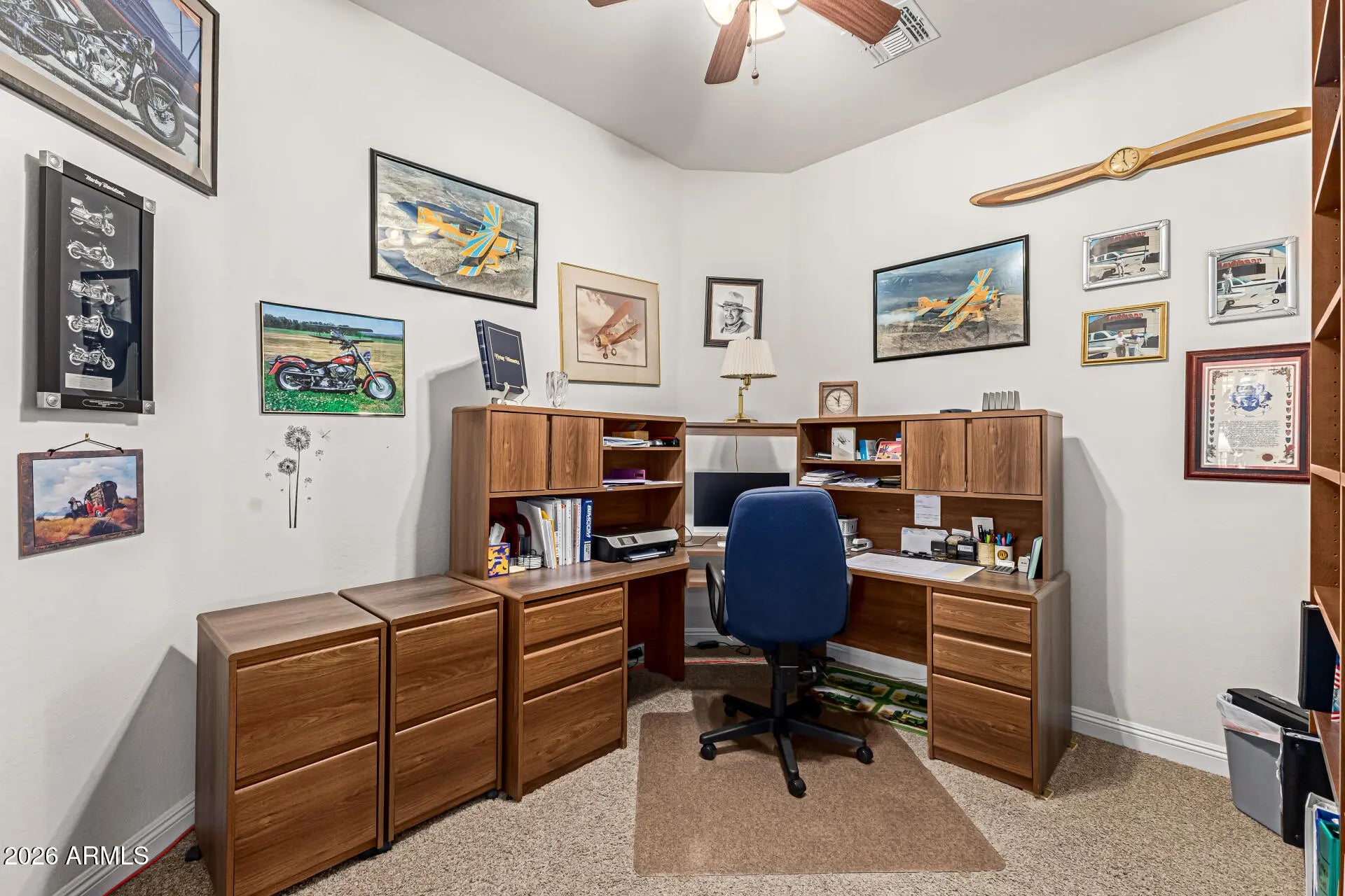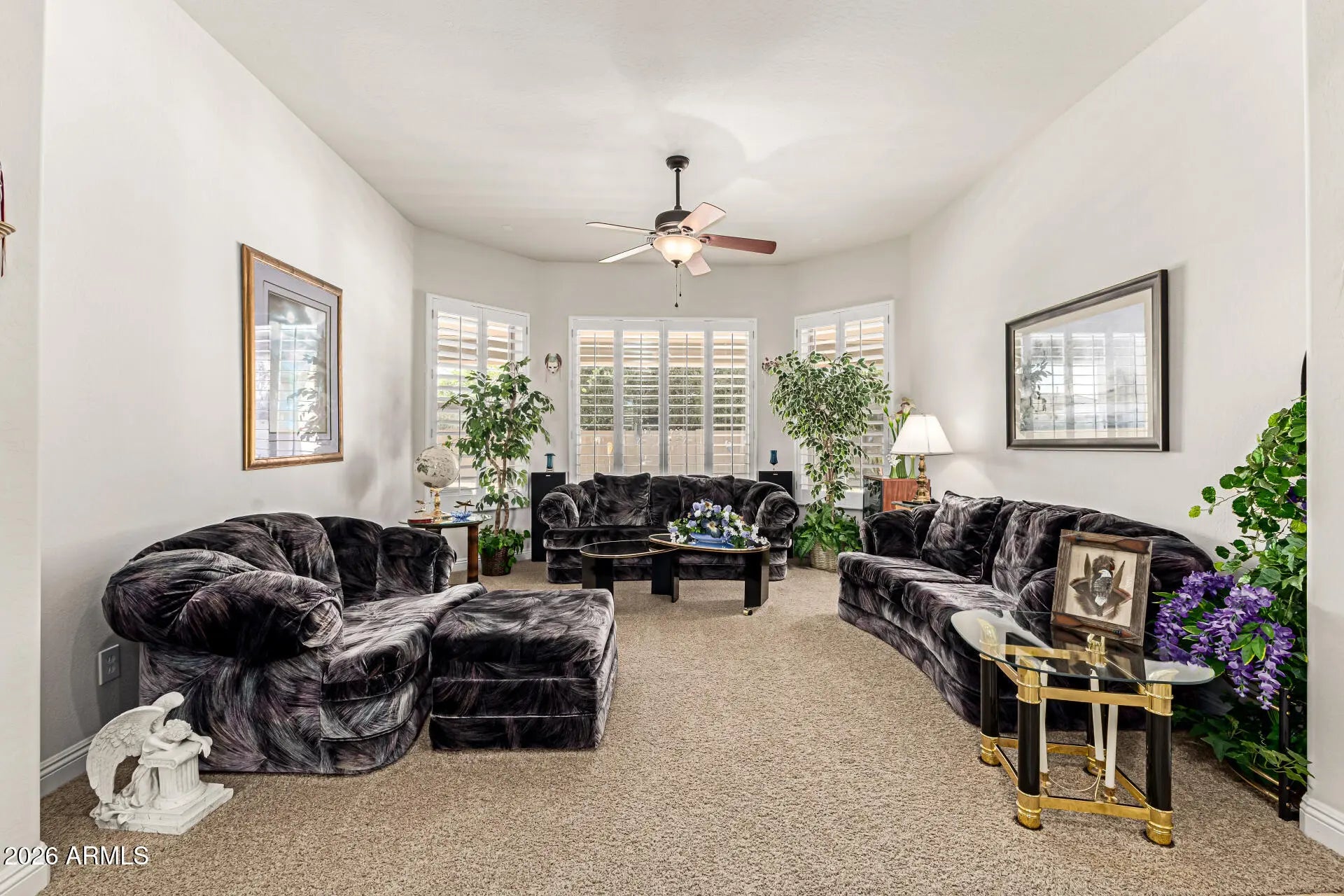 Single-Story Luxury Home W/ a Three car EXTENDED Garage W/ cabinets. A welcoming gated front courtyard to this beautifully upgraded 4 bedroom PLUS DEN, 3 full bath home with a SPLIT FLOOR PLAN. The chef's kitchen is a true centerpiece, boasting GRANITE countertops, custom backsplash behind the high-end 5 BURNER gas stove, MONOGRAM GE refrigerator with cabinetry surround, double ovens, and built-in microwave/convection oven, plus plentiful storage. Built-in Desk Area w/cabinets. Major improvements are already in place: Two high-efficiency AC units (2020)(2025), and Water heater (2020), Exterior paint (2015), Garbage disposal (2019), Water Softener (2025), Back Patio Roof resealed (2025). Beautiful Plantation Wood Shutters. Den includes office furniture and shelving. Room for a Pool in Back Nice Big Lot with a Huge spacious CoolDeck covered patio for entertaining. Tuff Shed Included. Located minutes from top shopping, restaurants, and entertainment, this property also offers quick access to I-17, Loop 101, and SR-303 for easy commuting. Inspiration Mountain School, a top-rated K-8, is just blocks away, and nearby Deem Hills Park features pickleball, tennis, basketball, dog parks, soccer fields, playgrounds, and scenic hiking and biking trails