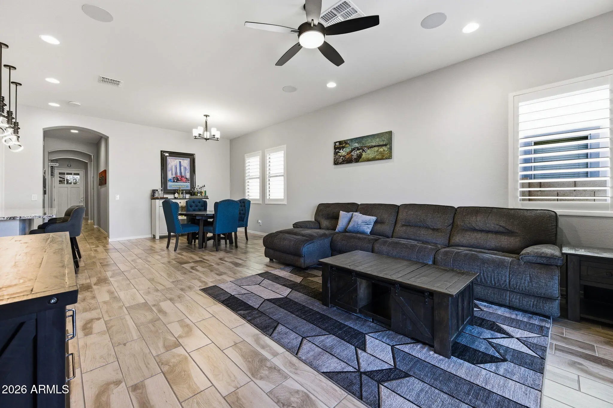 Step into modern comfort in this beautifully designed 4-bedroom, 3-bath home, only three years old and thoughtfully crafted for both style and functionality. With three separate bedroom areas, the layout offers exceptional privacy--ideal for multigenerational living, guests, or a dedicated home office retreat. The heart of the home features an open kitchen with sleek quartz countertops, stainless steel appliances, a 5-burner gas stove, and reverse osmosis at the sink. Decorative lighting adds warmth and character, creating an inviting space for everyday living and entertaining. Enjoy the efficiency of a tankless hot water heater and the convenience of a spacious 3-car garage, offering plenty of room for vehicles, storage, or hobbies. Move in ready and designed with today's lifestyle in mind, this home blends modern finishes with practical upgrades--an exceptional find in a sought-after community. Located in the desirable Barney Farms community, featuring lakes for catch and release fishing, kayaking, canoeing, aquatic center with lap and sport pools, splash pad, bocce ball, pickle ball, ramadas and much more. Move-in ready and thoughtfully designed for today's living.
