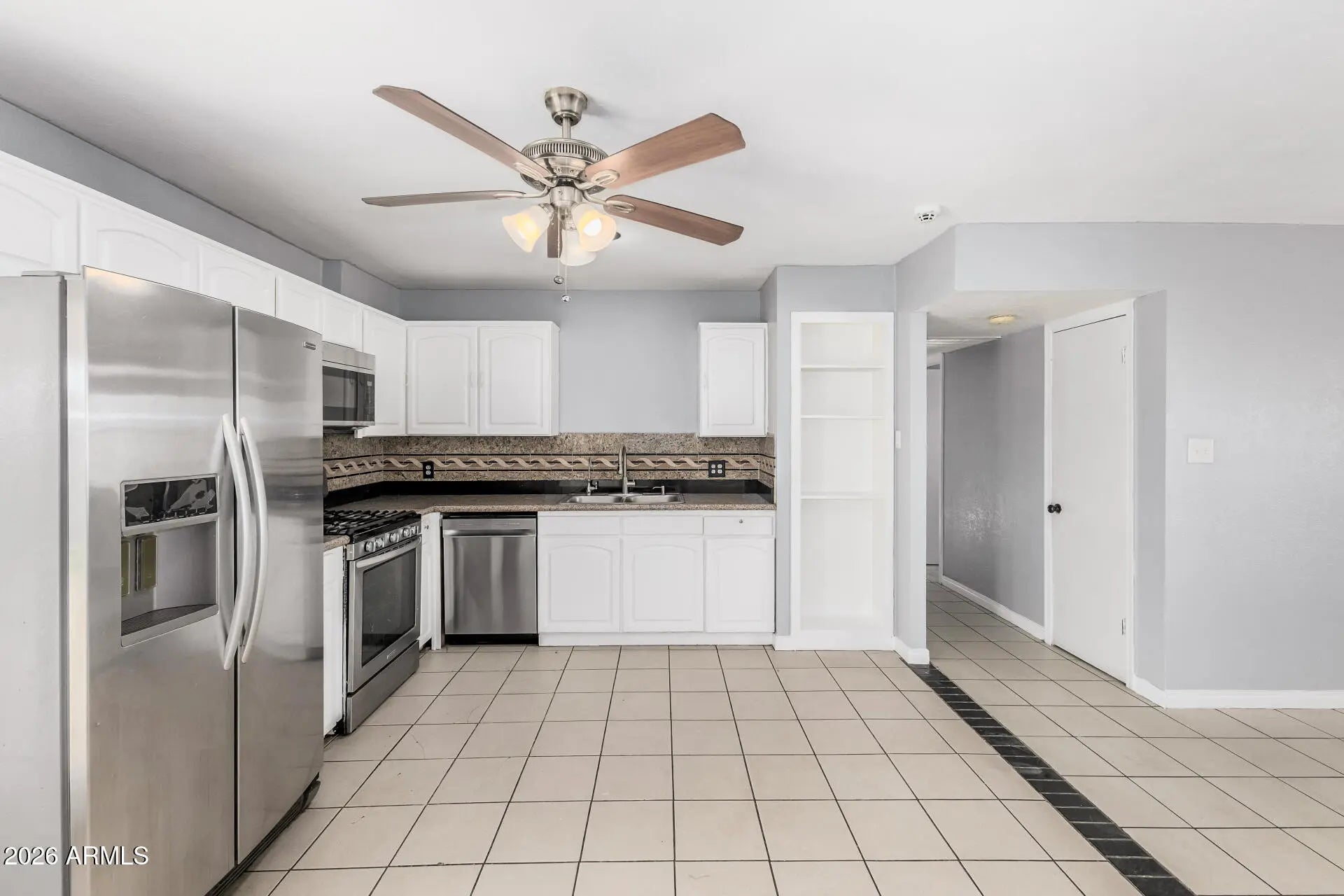 Welcome to this charming 4-bedroom residence on a coveted corner lot! You're greeted by a full-fenced front yard, an RV gate, and a sizable driveway. Inside, you'll find an appealing open layout with a soothing palette and durable tile flooring for easy maintenance. The well-appointed kitchen comes with crisp white cabinetry with crown molding, a tile back splash, a pantry, and new stainless steel appliances for a delightful cooking experience. The main bedroom includes a private toilet for added comfort. Unwind at the end of a long day in the backyard, which offers a covered patio and a lovely gazebo for dining al fresco. Conveniently located close to schools, bus stops, restaurants, and shopping. Don't miss out on this one!
