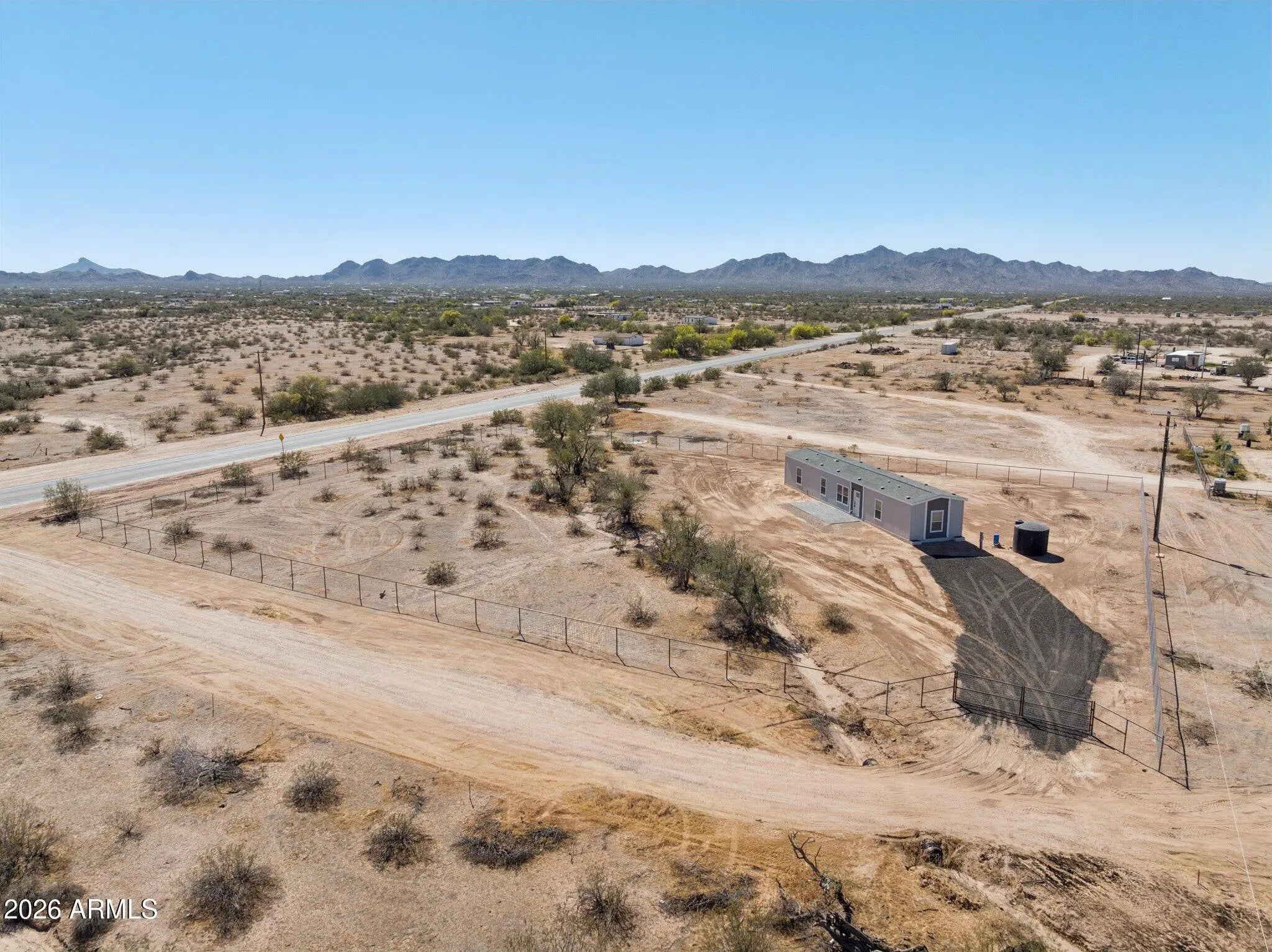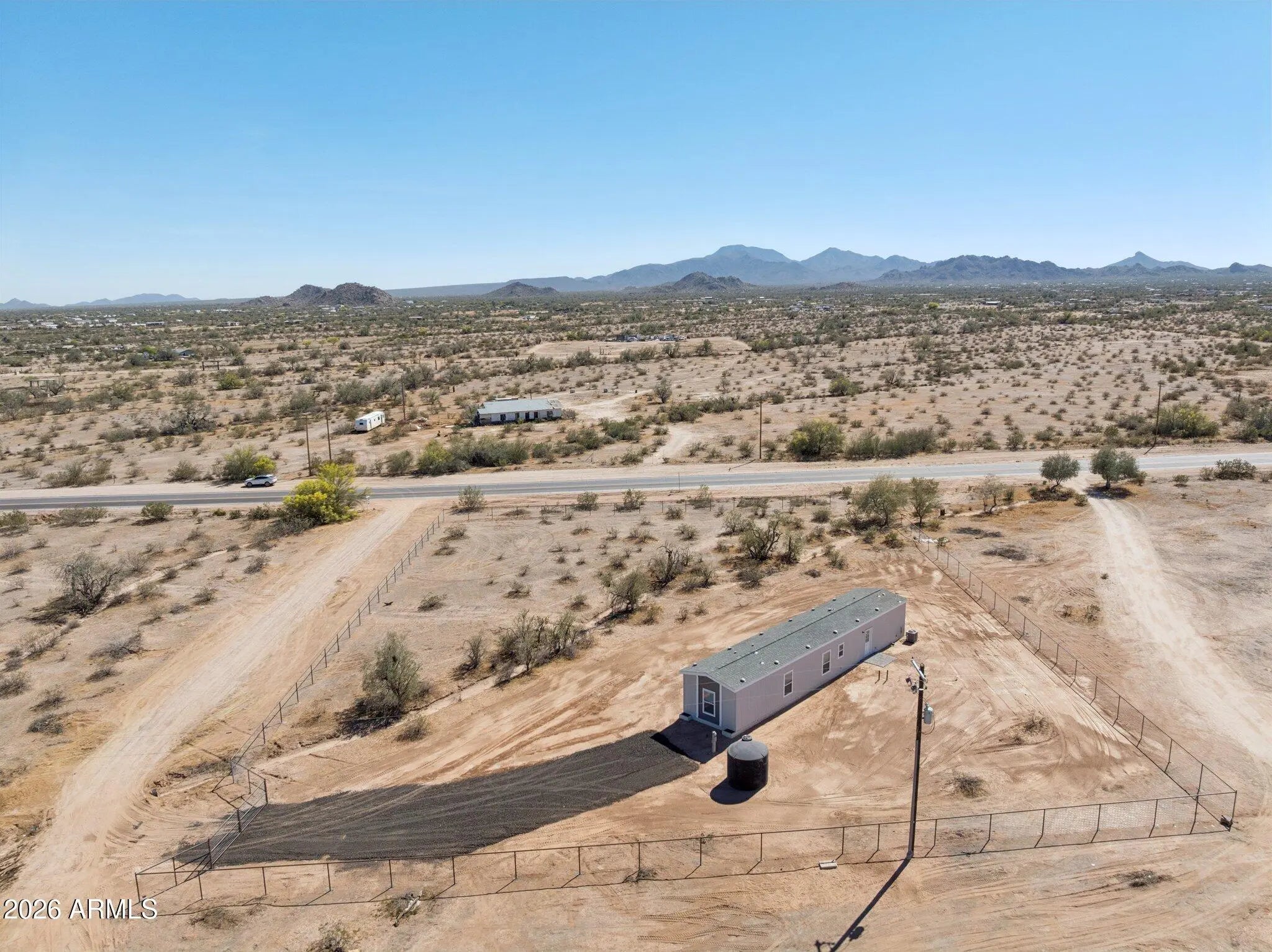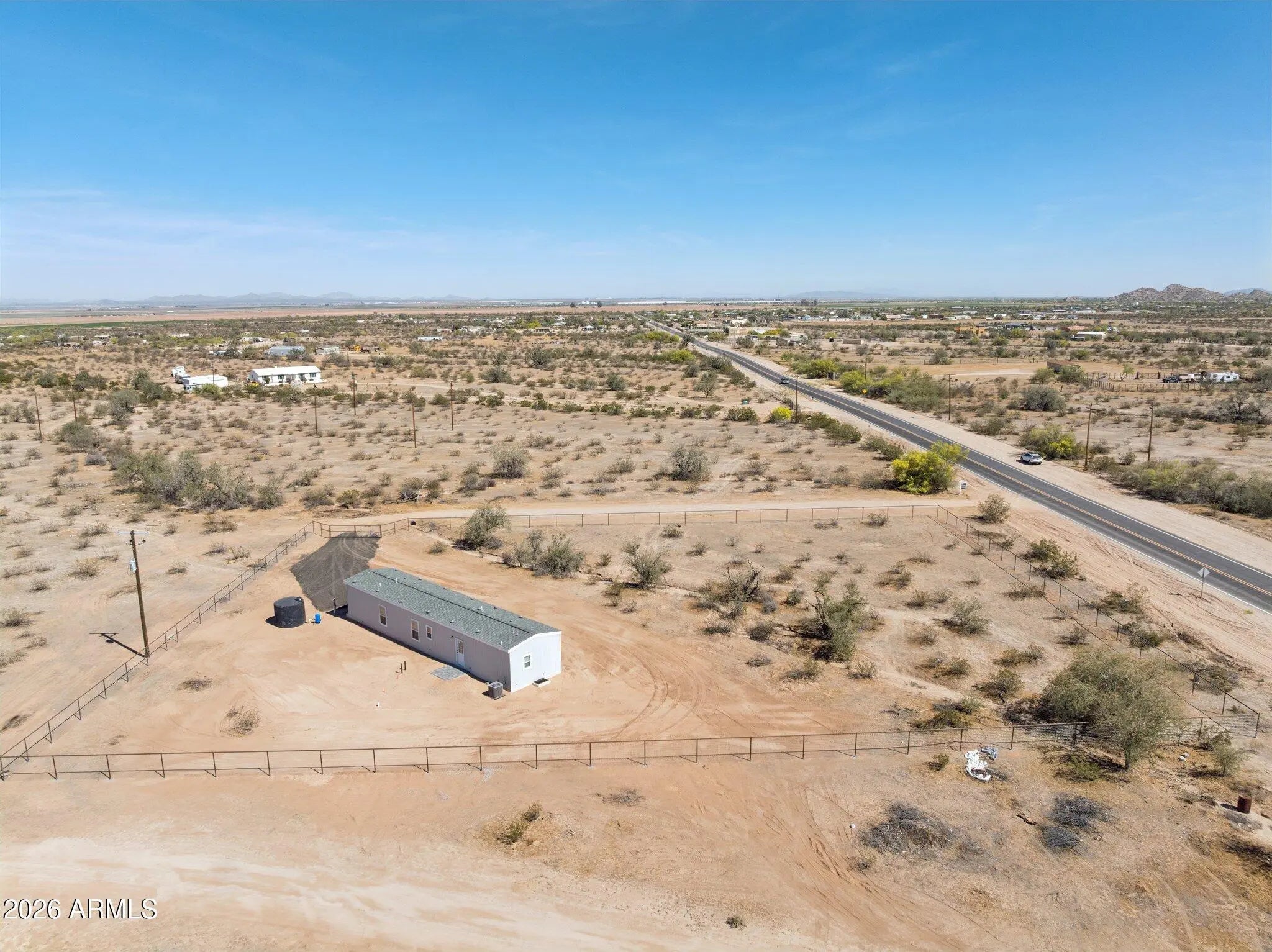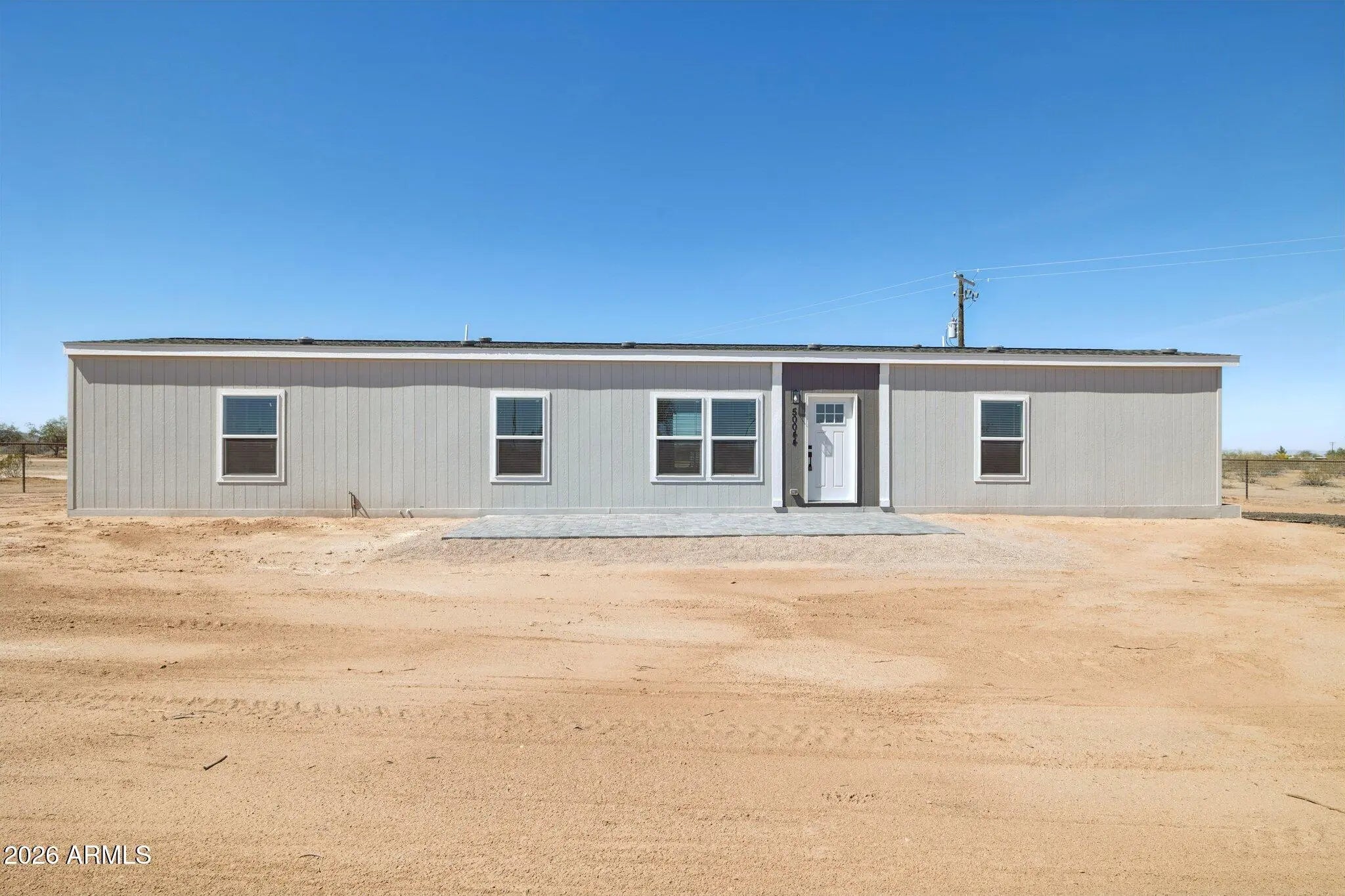 Brand new 1,080 sq ft energy-efficient home with 3 bedrooms and 2 bathrooms on 1.5 acres in Maricopa. Property is fully fenced with no-climb horse fencing and located on a paved road for easy access. Home features an efficient split floor plan with open living space, modern finishes, new cabinetry, stainless steel appliances, and ample counter space. Large front paver patio offers additional outdoor living space with mountain views. No HOA provides flexibility for animals, RV parking, equipment, or future improvements.