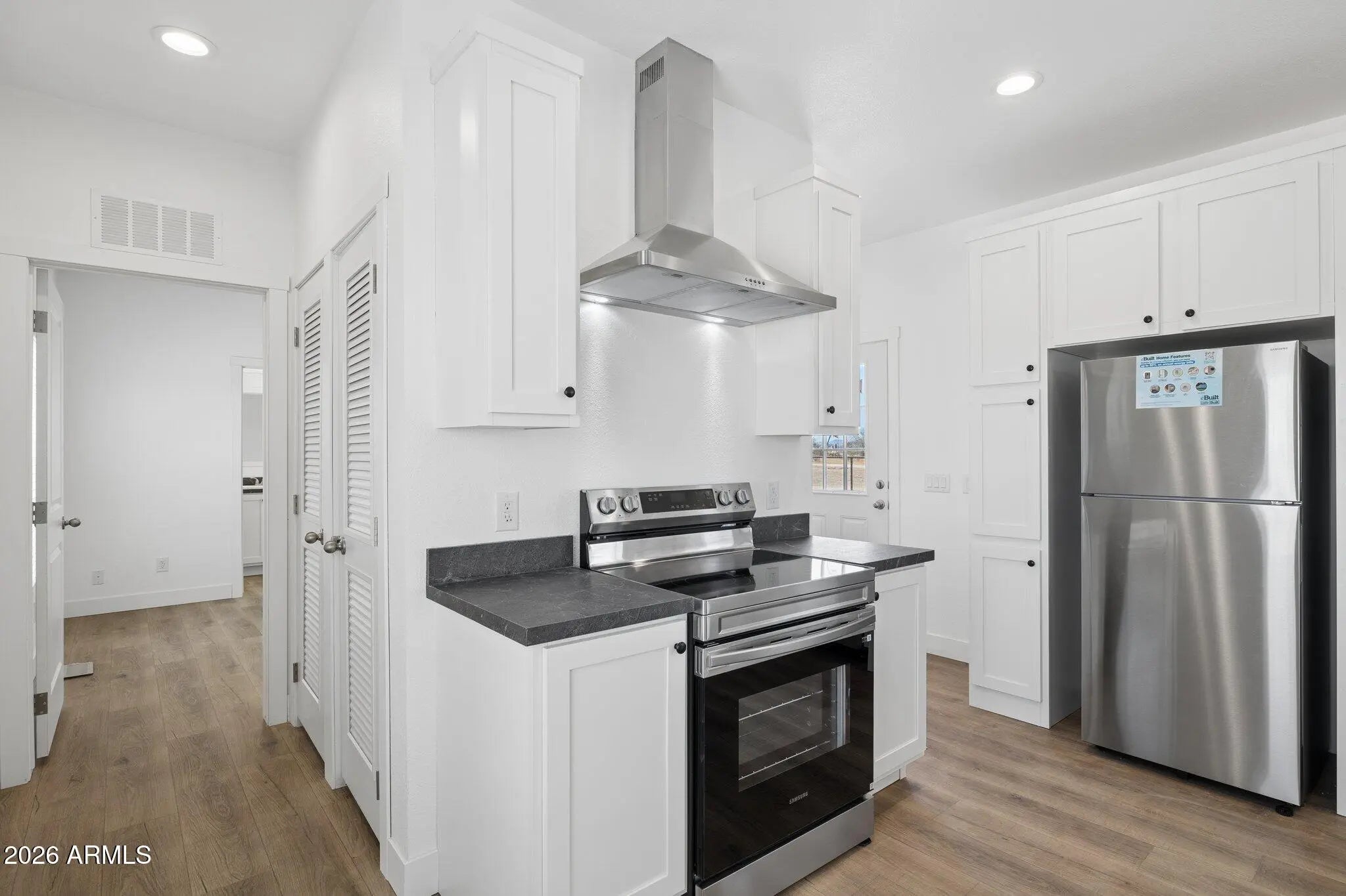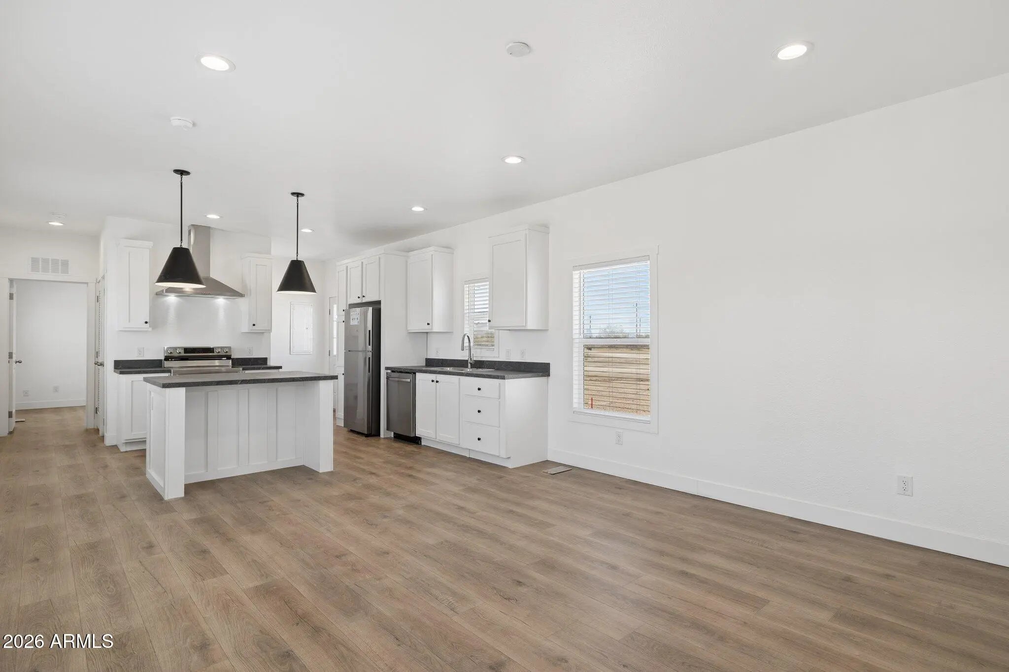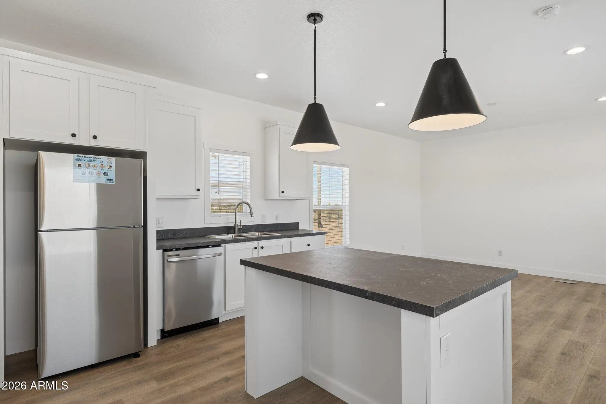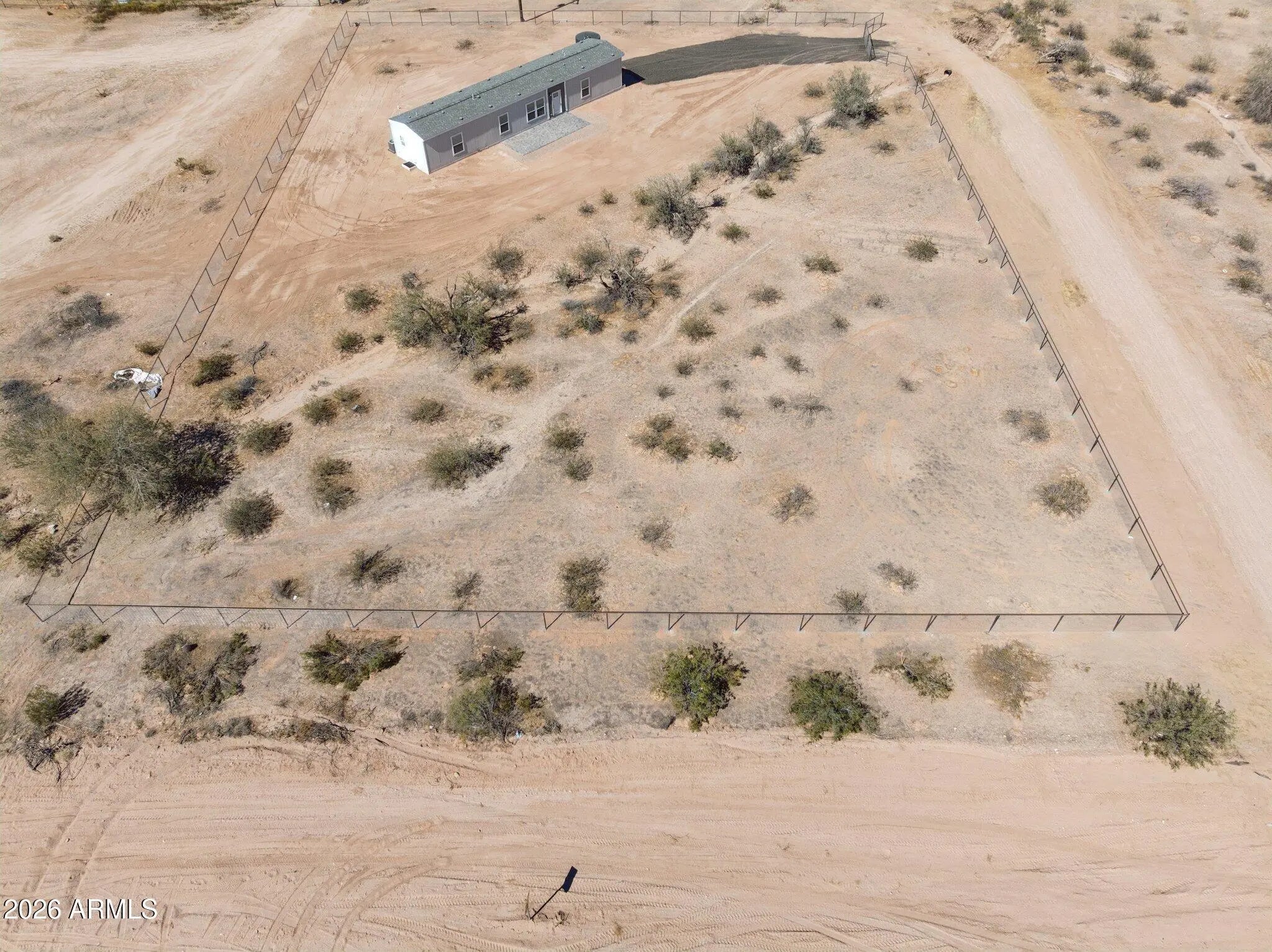 Brand new 1,080 sq ft energy-efficient home with 3 bedrooms and 2 bathrooms on 1.5 acres in Maricopa. Property is fully fenced with no-climb horse fencing and located on a paved road for easy access. Home features an efficient split floor plan with open living space, modern finishes, new cabinetry, stainless steel appliances, and ample counter space. Large front paver patio offers additional outdoor living space with mountain views. No HOA provides flexibility for animals, RV parking, equipment, or future improvements.