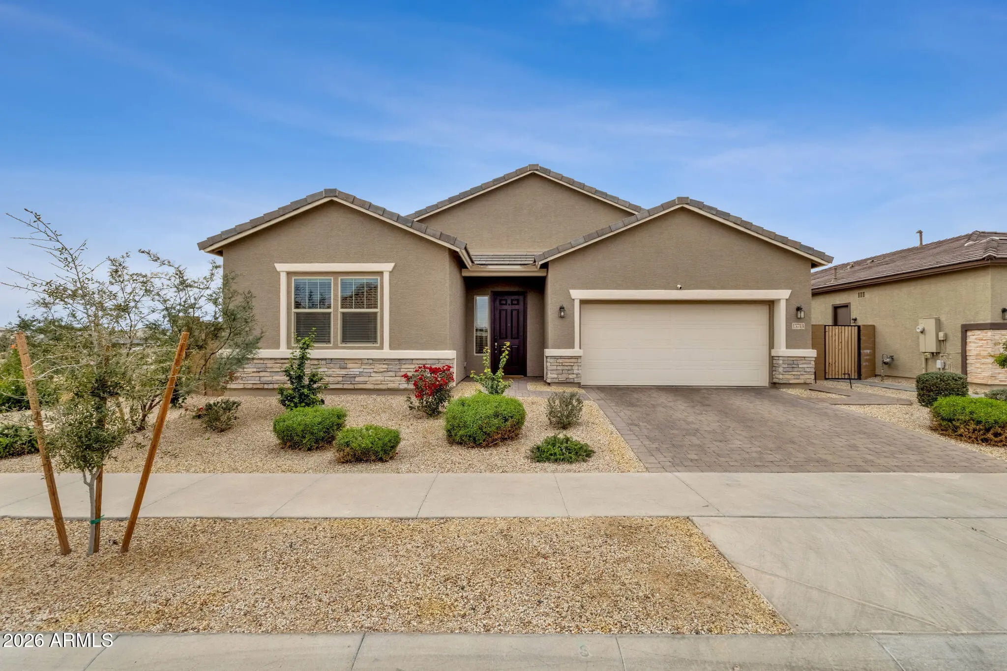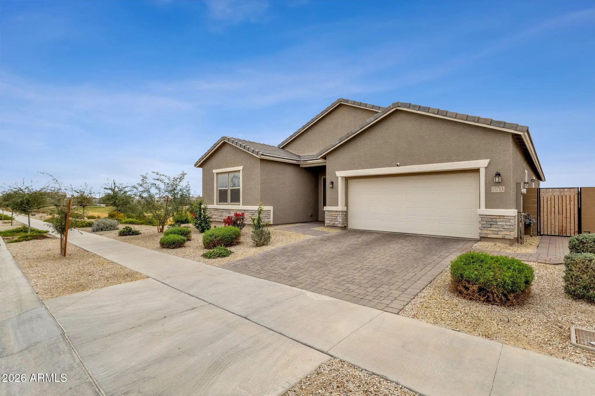 Welcome to a home that checks all the boxes--and then adds a few you didn't know you wanted. Built in 2023, this beautifully designed single-level residence offers 3 bedrooms + a dedicated den, 2.5 baths, and 2,506 square feet of thoughtfully planned living space. From the moment you step inside, you'll notice the clean, modern finishes and tile flooring throughout the main living areas (with carpet only in two secondary bedrooms for added comfort). The heart of the home is the kitchen--and this one truly delivers. A massive island anchors the space, complemented by a gas cooktop, double ovens, and an oversized walk-in pantry that makes everyday living and entertaining effortless. Whether you're hosting friends or enjoying a quiet night in, the open layout creates the perfect setting The split floor plan offers privacy, and the den provides flexibility for a home office, media room, or fitness space. Recent upgrades include a water softener and reverse osmosis system--details that add comfort and long-term value. Washer/Dryer and refrigerator are included in the sale. Step outside and you'll understand why this homesite is special. Backing to open space and a walking path with no neighbors behind--and siding directly to a park--the backyard feels private and peaceful. Recently completed with turf and pavers, it's low maintenance and ready for relaxing evenings or weekend gatherings. Location matters, and this one is hard to beat. Just minutes from the Goodyear Recreation Campus, you'll enjoy access to aquatics, fitness facilities, ball fields, and year-round activities. Quick access to Interstate 10 makes commuting simple, while nearby shopping and dining continue to expand throughout Goodyear's vibrant growth corridor. This is the kind of home buyers wait for--newer construction, premium lot, smart upgrades, and an unbeatable location. If you've been looking for that "this is the one" feeling... you just found it.