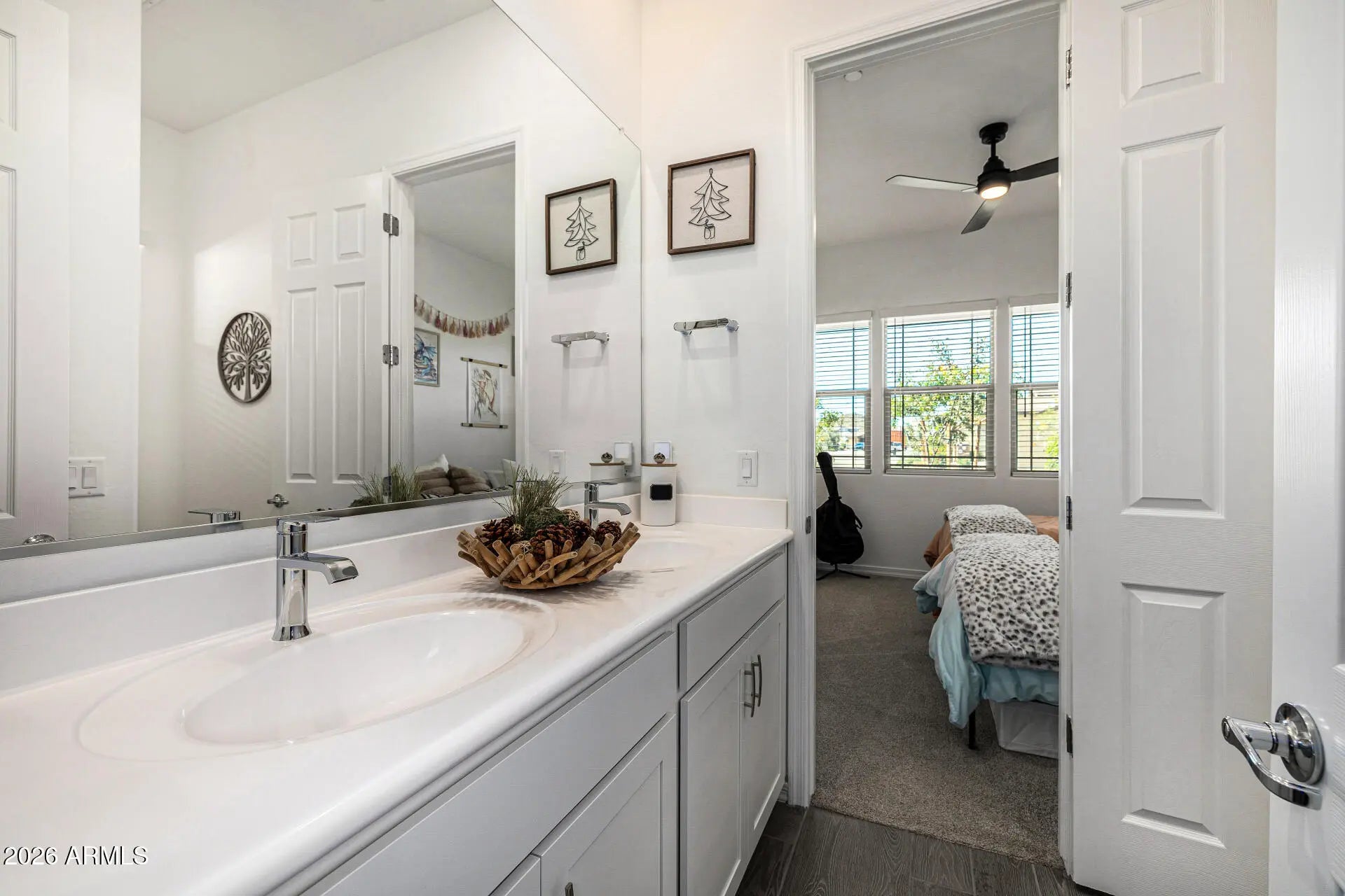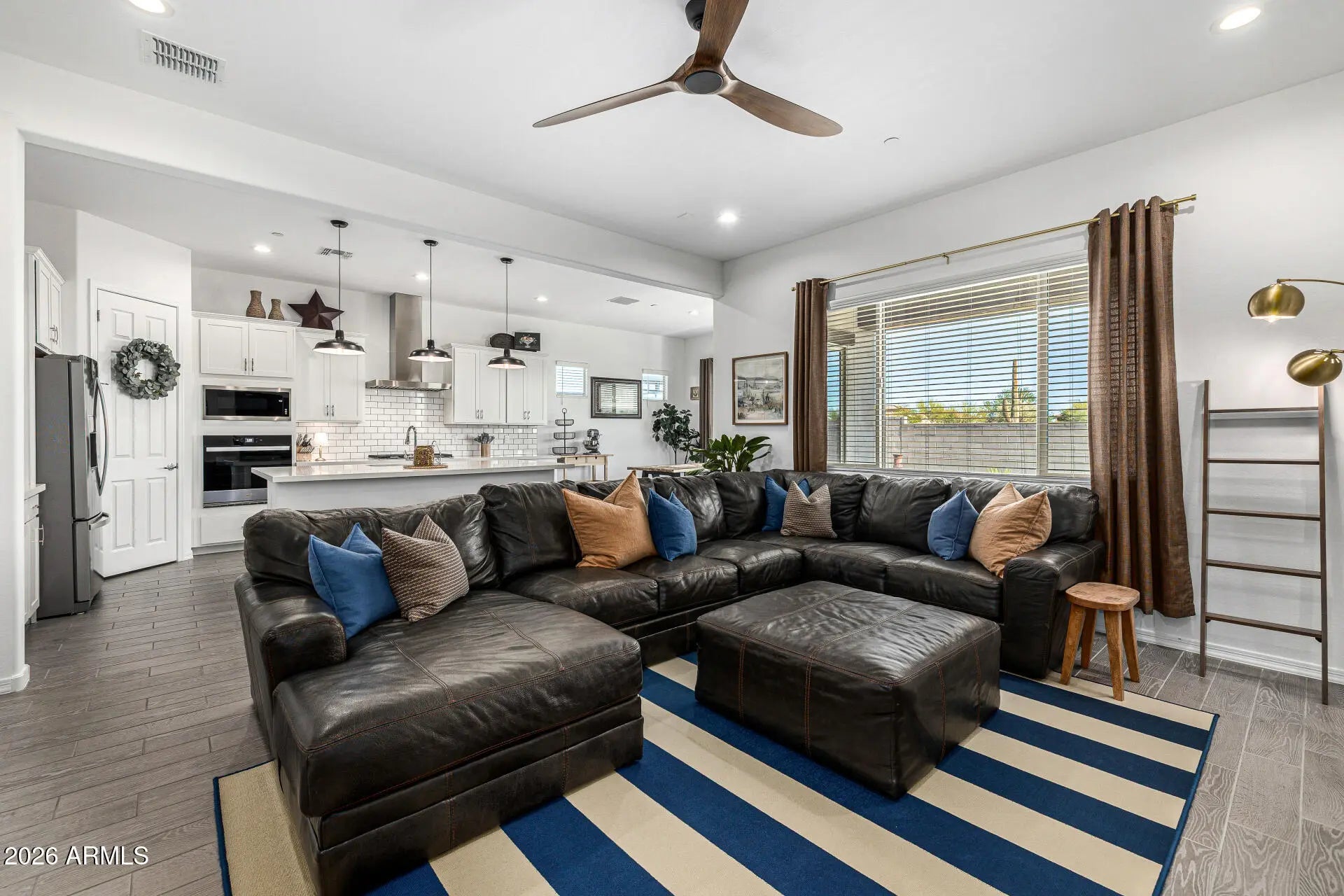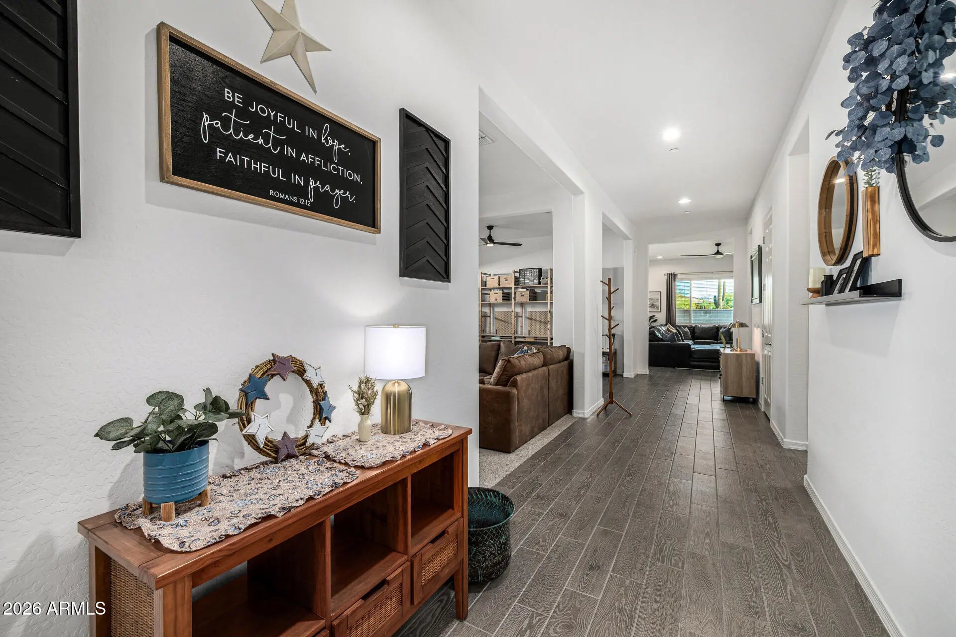 This 2,645 sqft single-level home built in 2023 (shows like a model home) on the outskirts of Vistancia delivers purposeful design with refined comfort. Offering 3 bedrooms, 2.5 baths, 2 flex spaces, and a 3-car tandem garage, the split floorplan balances privacy and connection. The open kitchen anchors the expansive great room with seamless indoor-outdoor flow. Flexible spaces adapt for work, wellness, or creativity. Minutes to Loop 303, Lake Pleasant marinas, parks, dining, shopping, and Peoria Unified schools. Modern desert living--intentional, efficient, elevated. INTERIOR FEATURES: -Mattamy Homes popular Bellwood model with a floorpan that offers a great room concept, versatility, and 3-car garage -2 flex spaces that are easily convertible to be separated/walled. -Continuous flooring: plank tile throughout main areas. -8 ft. interior and exterior doors. -Neutral color palette allows you to add your own color and style -Gourmet kitchen with quartz countertops, gas range, wall oven, refrigerator/freezer with icemaker/water, built-in microwave, spacious island, walk-in pantry, and pendant lighting. -Primary bathroom is like a spa with oversized tiled shower, dual sinks, crisp white finishes. In addition, the primary suite closet is huge. -Large laundry room with extensive room for storage. -Many storage closets. EXTERIOR FEATURES: -Located in a cul de sac -Pavered covered front porch for catching sunsets. This is optimal in that the backyard (east-facing) doesn't have direct afternoon sun. -The zen, low-maintenance backyard was designed to create a felicitous mix of textures including turf, plants, gravel (1/2"), and quarter-minus gravel for the opportunity to connect with the earth. COMMUNITY: The lovely community of Sereno sits on the outskirts of Vistancia with the backdrop of the Peoria Mountains Preserve. There is a Sereno neighborhood park, picnic areas, and walking paths surrounded by scenic mountain views. Beyond the community, the city of Peoria offers more than 30 parks and 20 miles of recreation trails. Enjoy hiking in the mountain preserve, dog parks, splash pads, and green spaces. Commutable to TSMC ( Taiwan Semiconductor ) and the PIC ( Peoria Innovation Core ). Nearby Lake Pleasant: Only 25 minutes to beautiful Lake Pleasant with easy public access to 2 marinas where you can enjoy renting a boat or renting a slip for your own personal boat. Enjoy live music and dining at Dillon's Bayou. Culture/Entertainment: Peoria offers a wide variety of cultural experiences including the Peoria Center for the Performing Arts, spring training, libraries, and many opportunities to be involved in the city.