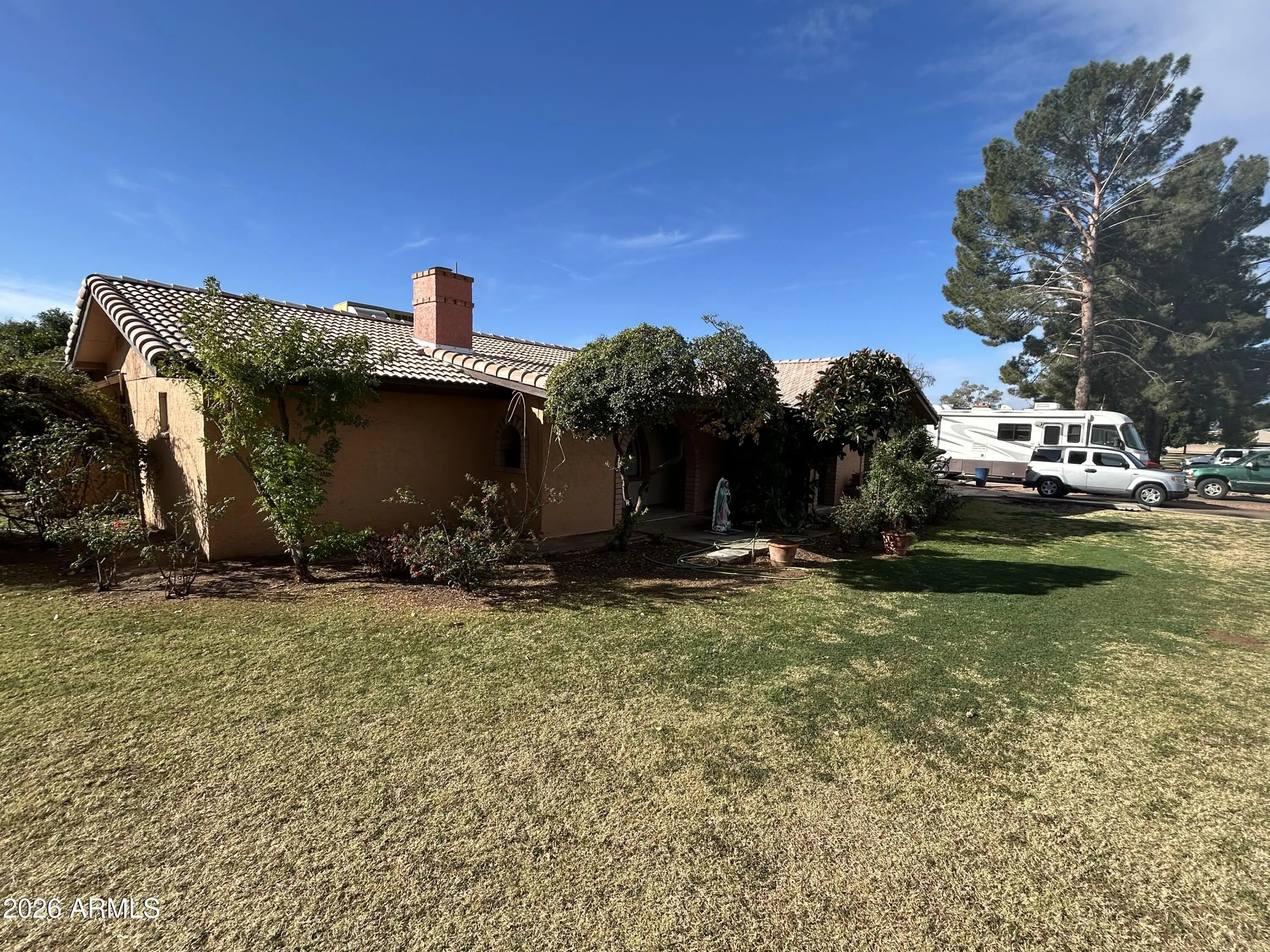 Your new Hacienda masonry construction 4 bedrooms 2 baths on a large irrigated 28300 sq ft lot. A bit dated but a very nice custom home perfect for the buyer who needs a large lot with plenty of room for toys, kids, pets, cars and anything else you can think of. Tons of storage, huge amounts of parking. Animal pens, numerous fruit trees,large out door patio with a second fireplace. Ready for an update or ready for immediate move-in. Bring us an offer!