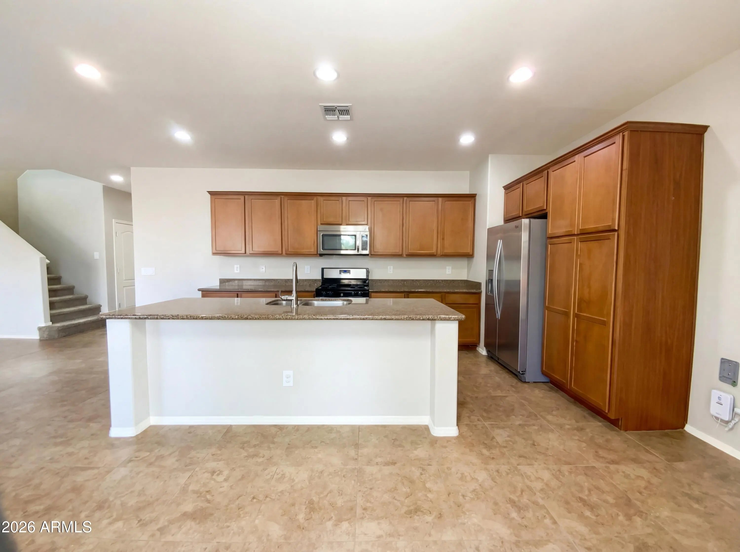 Welcome home to this charming 4-bedroom, two-story residence in the sought-after Hastings Farms community. Featuring a spacious split floor plan and an open, inviting living area, this home is perfect for both everyday living and entertaining. The updated kitchen shines with granite countertops, a large center island, abundant cabinetry, and a cozy eat-in nook ideal for gatherings. Upstairs, all four bedrooms offer comfort and privacy, including a generous primary suite with dual sinks, a walk-in shower, private water closet, and an expansive walk-in closet. Step outside to a low-maintenance backyard ready to become your dream outdoor retreat. Residents of Hastings Farms enjoy multiple parks, ramadas with grills, a soccer field, basketball courts, and nearly 10 miles of scenic walking paths. Comfort, convenience, and community--this home truly has it all.