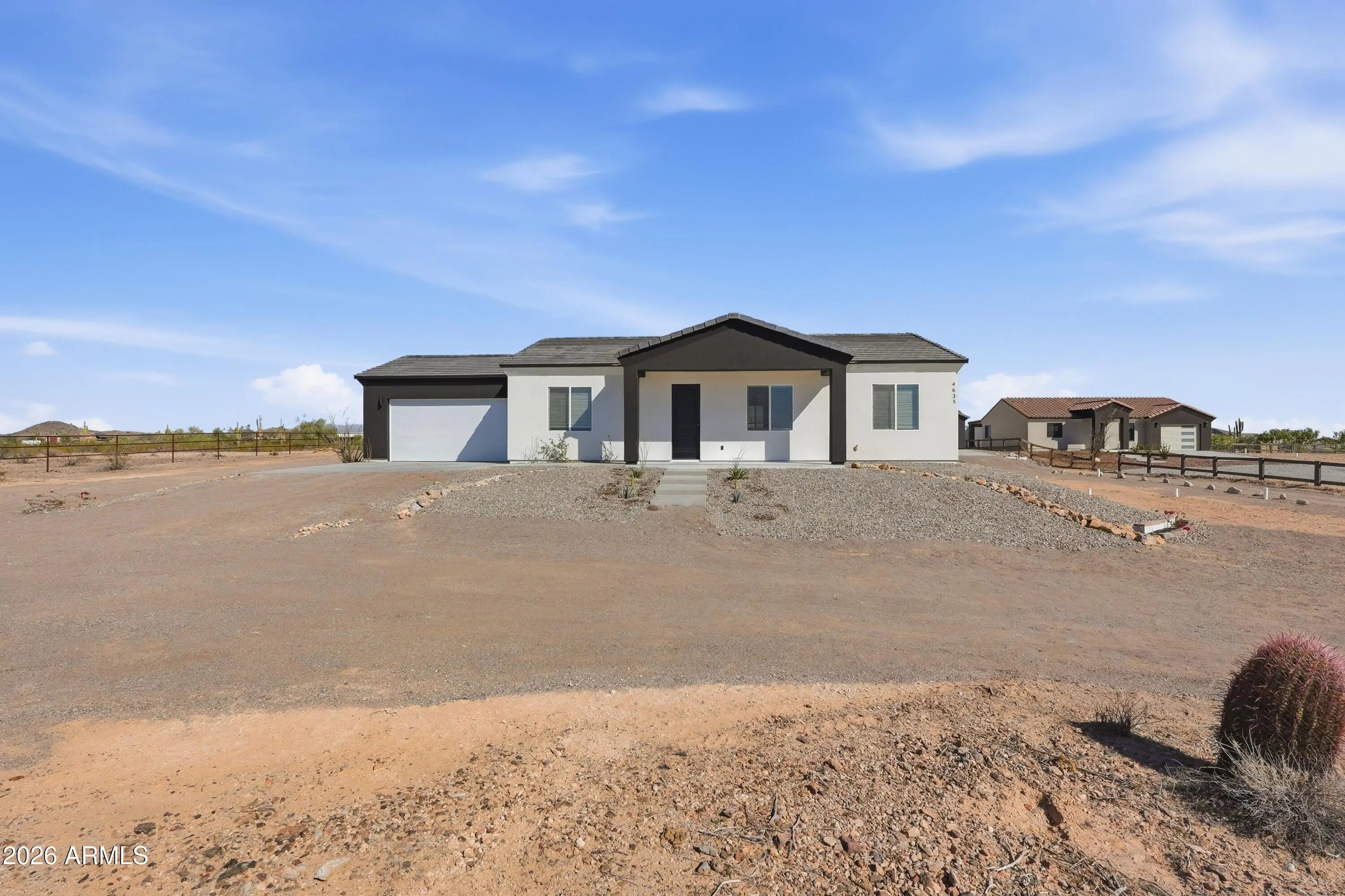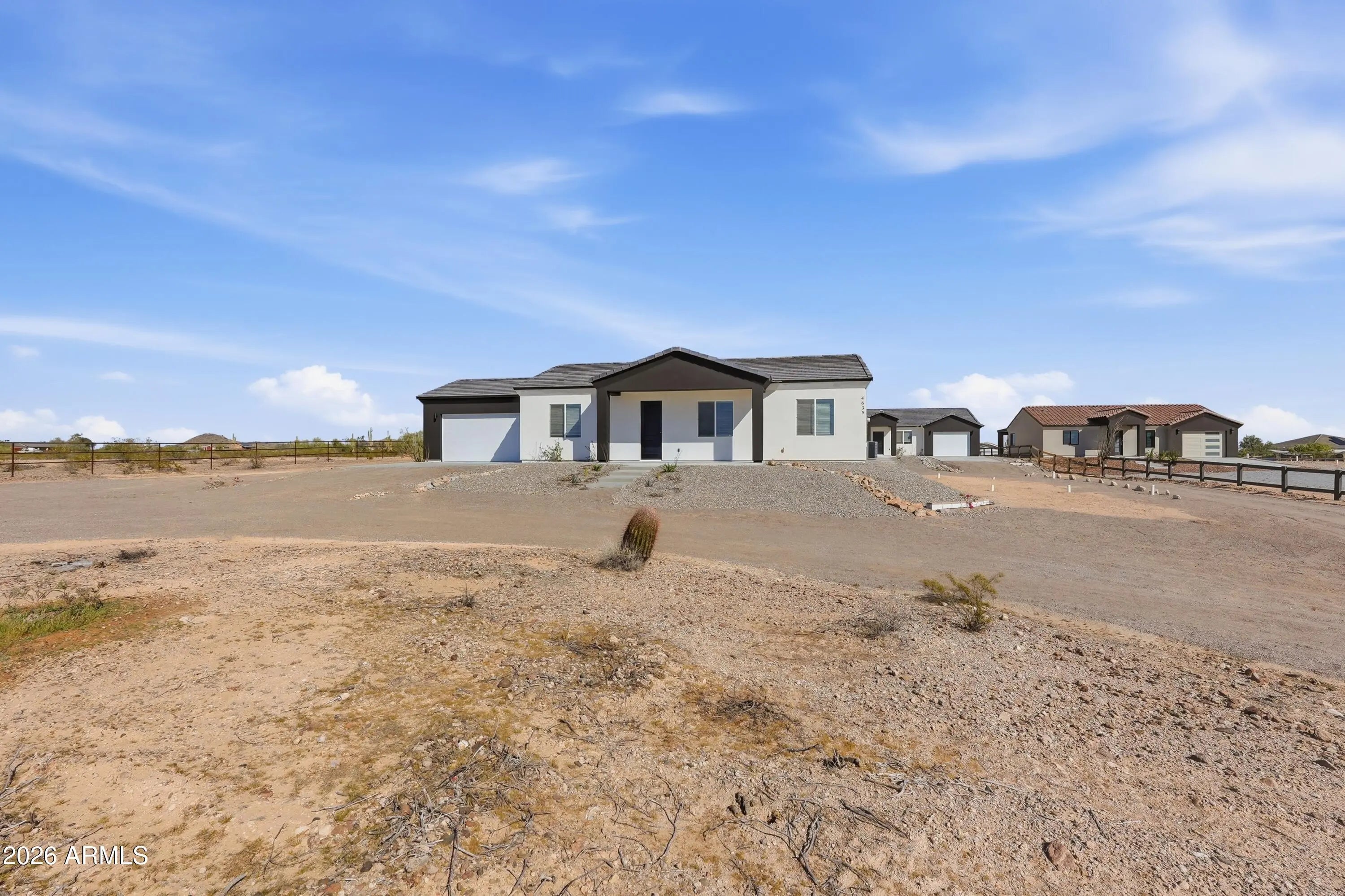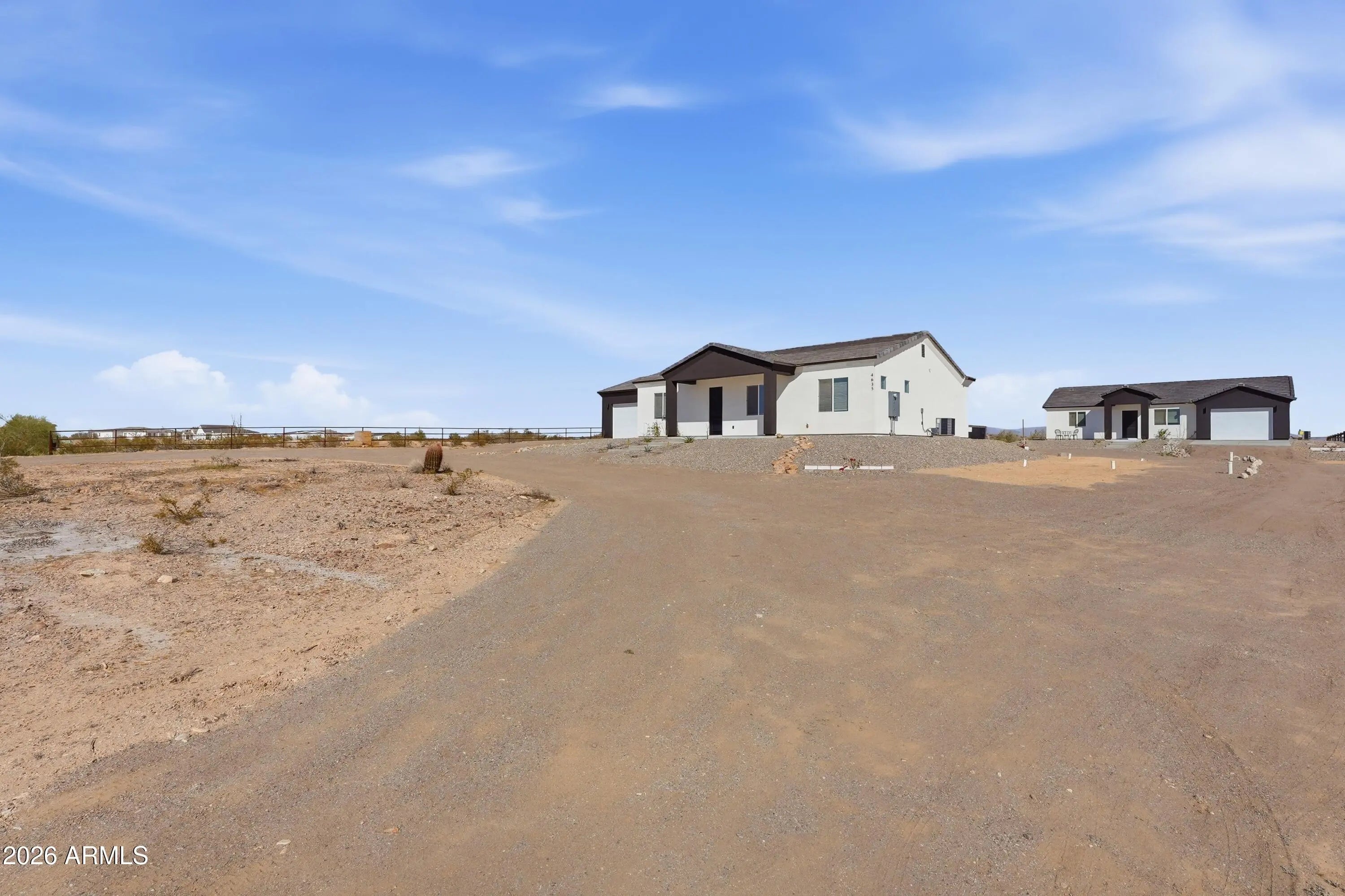 Welcome to this exceptional property located in the growing community of Tonopah, Arizona -- offering space, quality, and flexibility all in one incredible opportunity. The main house features 3 bedrooms, 2 bathrooms, and a spacious 2-car garage. From the moment you walk in, you'll appreciate the beautiful custom-made wood kitchen cabinets, a large kitchen island perfect for entertaining, stainless steel appliances, and a convenient pantry for extra storage. The bathrooms showcase exquisite tile work, elegant glass shower doors, stylish vessel sinks, and modern light fixtures that elevate the home's design. A tasteful color palette inside and out complements the synthetic stucco exterior and classic tile roof, creating timeless curb appeal. The guest house is equally impressive, offering bedrooms, 2 bathrooms, and a 1-car garage. It features the same high-end custom cabinetry, kitchen island, and stainless steel appliances as the main home, providing a cohesive and upscale feel throughout the entire property. Both homes include washer and dryer, adding convenience and value. This property truly stands out with NO HOA and horse privileges, giving you the freedom to enjoy your land the way you choose. The shared water well provides an efficient water source while maintaining the rural lifestyle buyers love. If you're looking for multi-generational living, rental income potential, or simply extra space to spread out -- all while enjoying the wide-open beauty of Tonopah -- this is the perfect place.