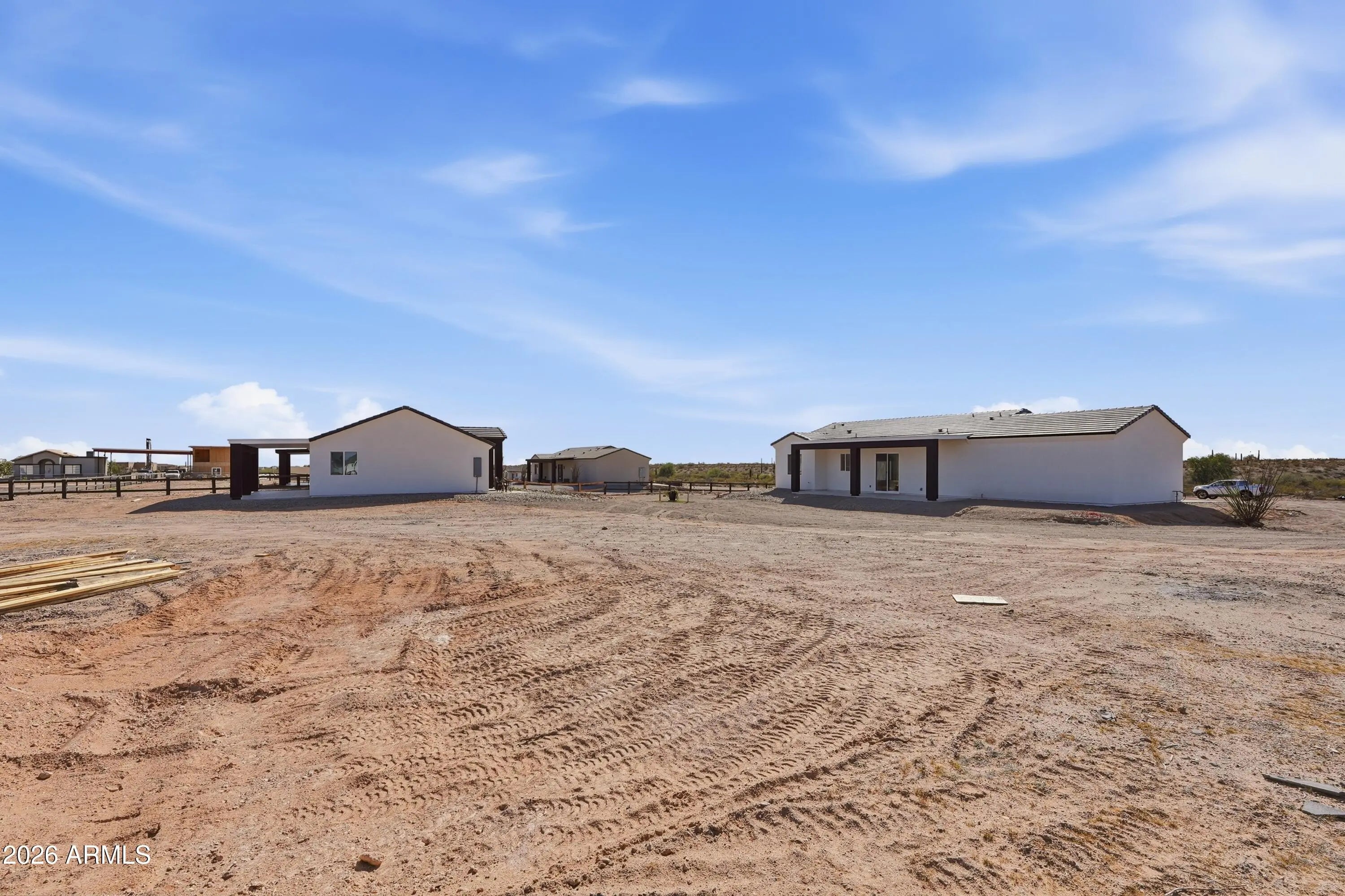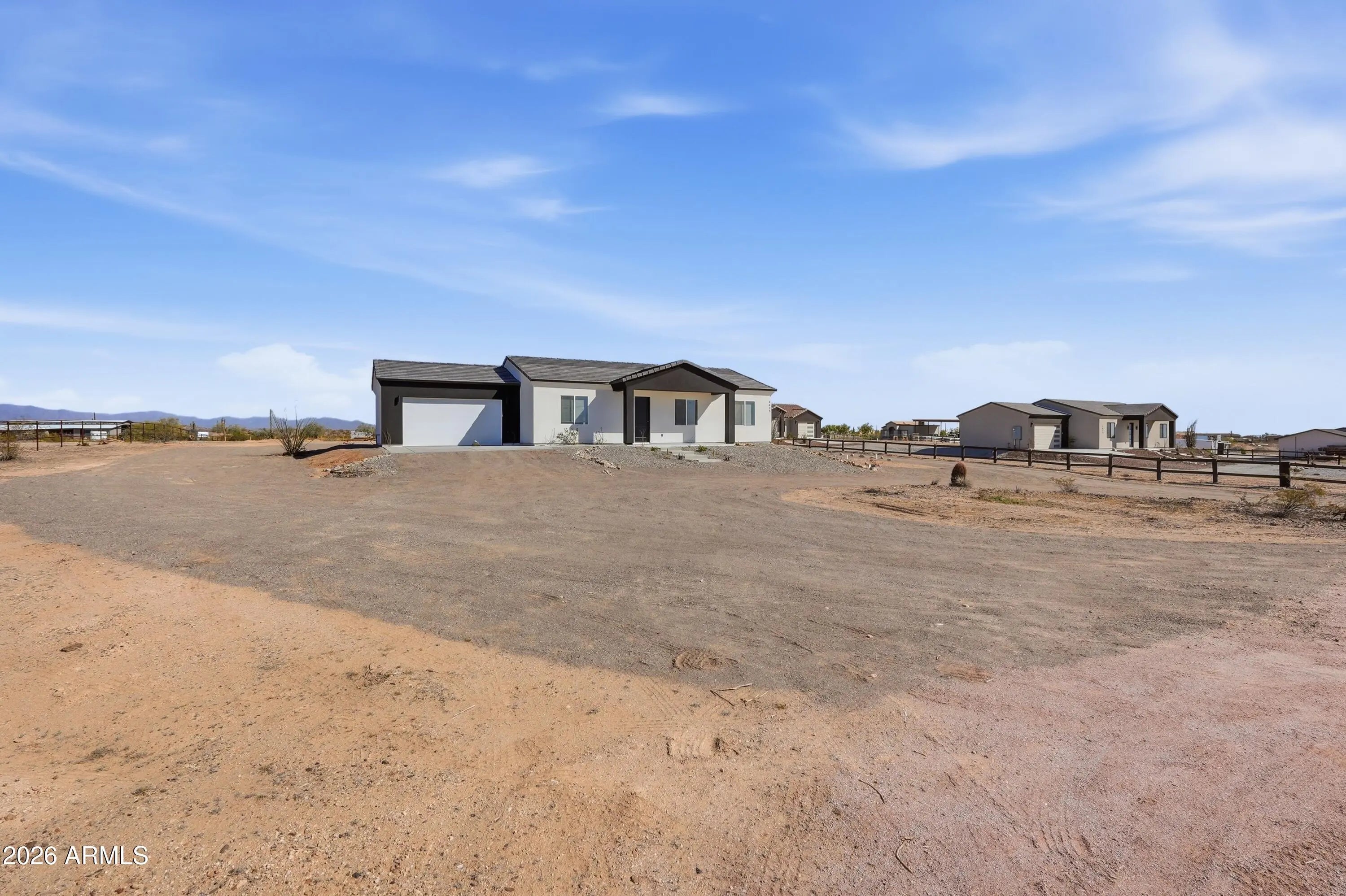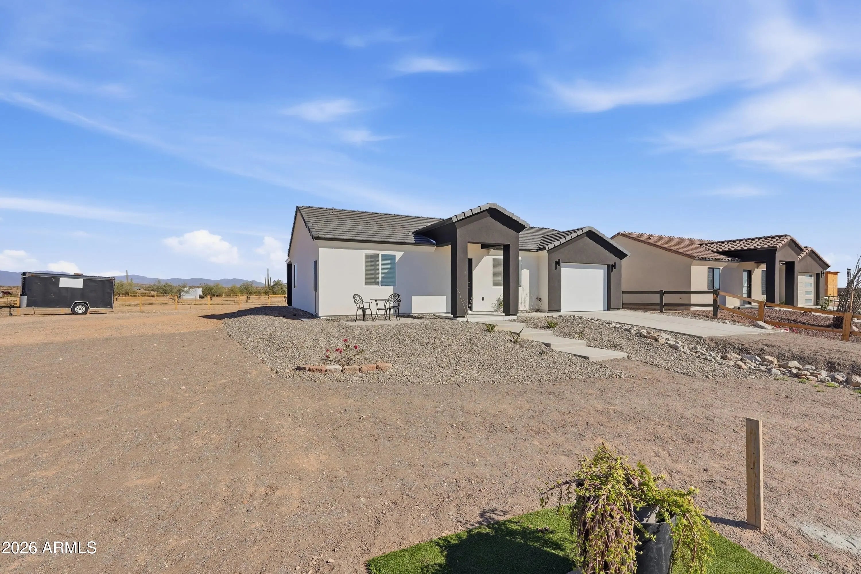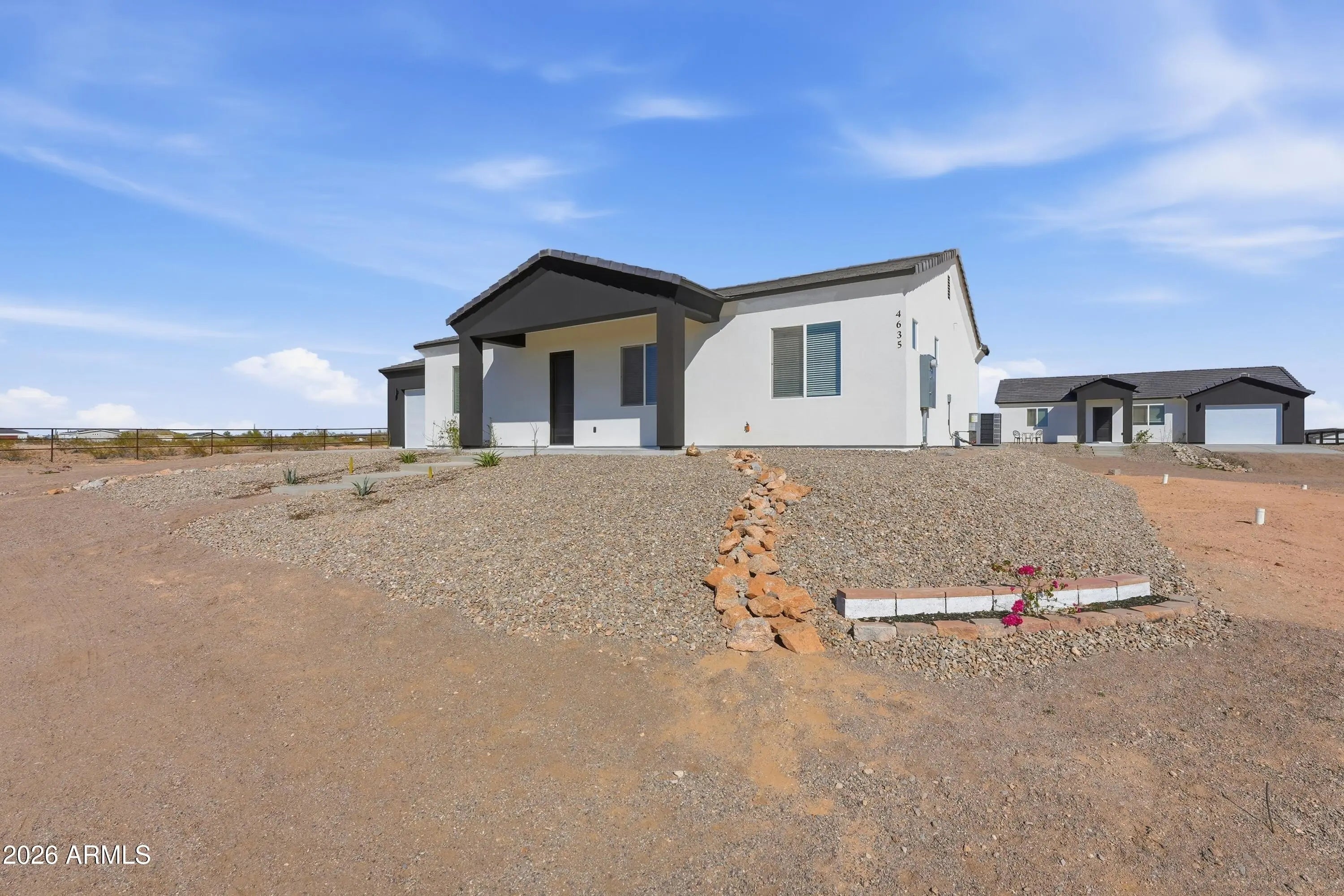 Welcome to this exceptional property located in the growing community of Tonopah, Arizona -- offering space, quality, and flexibility all in one incredible opportunity. The main house features 3 bedrooms, 2 bathrooms, and a spacious 2-car garage. From the moment you walk in, you'll appreciate the beautiful custom-made wood kitchen cabinets, a large kitchen island perfect for entertaining, stainless steel appliances, and a convenient pantry for extra storage. The bathrooms showcase exquisite tile work, elegant glass shower doors, stylish vessel sinks, and modern light fixtures that elevate the home's design. A tasteful color palette inside and out complements the synthetic stucco exterior and classic tile roof, creating timeless curb appeal. The guest house is equally impressive, offering bedrooms, 2 bathrooms, and a 1-car garage. It features the same high-end custom cabinetry, kitchen island, and stainless steel appliances as the main home, providing a cohesive and upscale feel throughout the entire property. Both homes include washer and dryer, adding convenience and value. This property truly stands out with NO HOA and horse privileges, giving you the freedom to enjoy your land the way you choose. The shared water well provides an efficient water source while maintaining the rural lifestyle buyers love. If you're looking for multi-generational living, rental income potential, or simply extra space to spread out -- all while enjoying the wide-open beauty of Tonopah -- this is the perfect place.