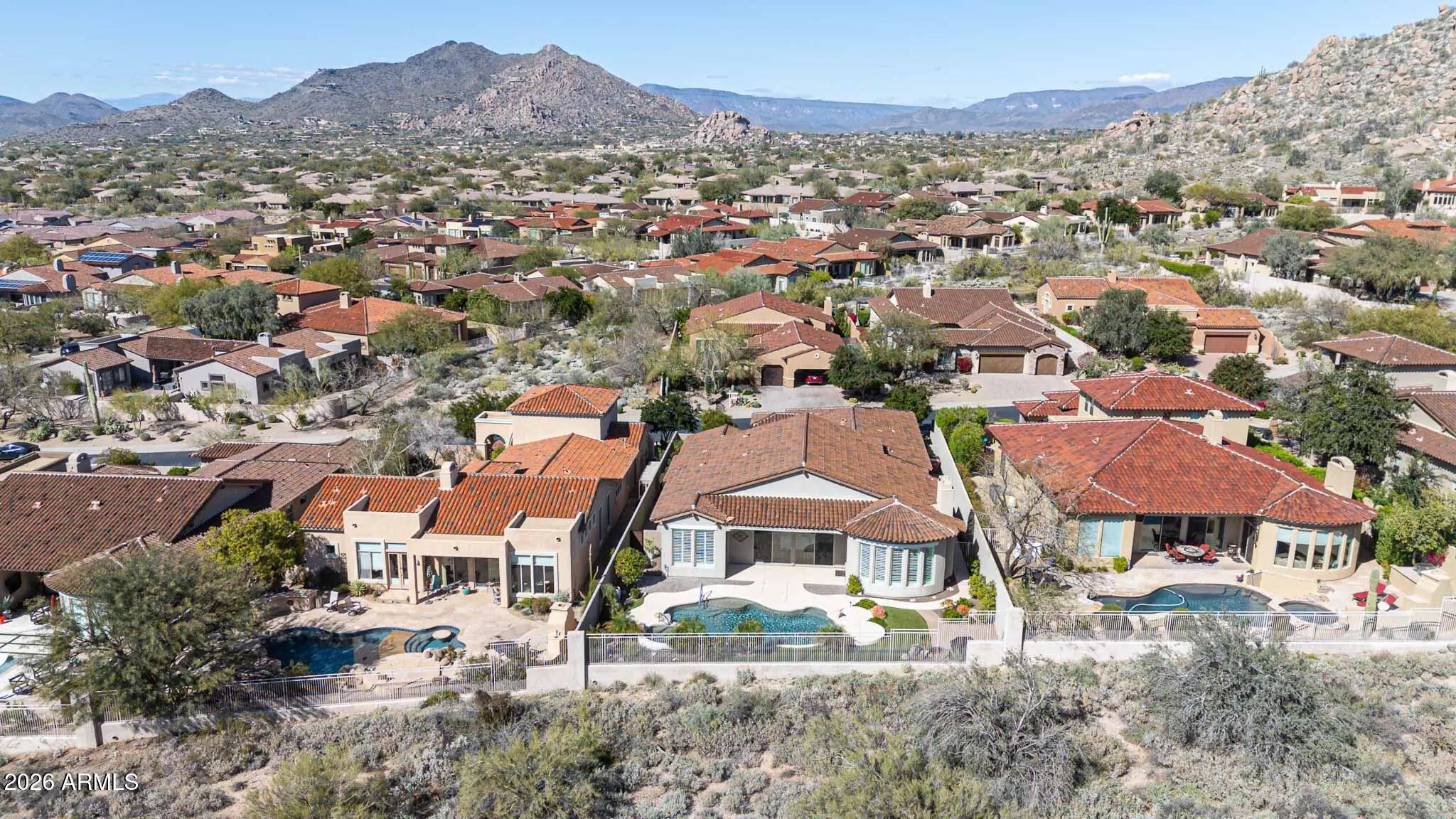 Experience MOUNTAIN and DESERT VIEWS with NO NEIGHBORS behind, creating a peaceful and truly private setting rarely found. This elevated 4BD | 3.5BA North Scottsdale home in the private gated community of Las Piedras at Sevano Village is ideally positioned near Whisper Rock and The Boulders, with convenient access to dining, shopping, and world-class golf. Designed for Arizona's indoor-outdoor lifestyle, expansive sliding glass doors frame the view and open to the backyard desert oasis featuring a heated pool and spa. The backyard is open yet private, enhanced by beautiful landscaping and custom lighting. Outdoor living is exceptional, with multiple spaces to enjoy Arizona's weather: a private courtyard, covered rear patio, side patio, and a grilling area or future pergola addition. A dedicated dog run is located on the east side of the home. Recent improvements include updated bathrooms, replacement of spa therapy lines with durable PVC and upgraded jets, a new pool pump housing and seal kit (Oct 2025), and a new water heater (Aug 2023). This light-filled single-level home truly lives large, seamlessly blending indoor and outdoor living. A custom new iron-and-glass front door leads to a charming enclosed courtyard with matching iron gate creating a true "bring the outdoors in" experience from multiple directions. Designed for both comfort and versatility, the flexible floor plan offers generous living spaces ideal for a variety of lifestyles. The dedicated office includes French doors and is spacious enough to function as a media room or game room. The primary suite is a retreat, and all bedrooms are ensuite with private bathrooms recently renovated in a desirable split layout. The bright interior is complemented by high-end plantation shutters, and motorized SunSetter retractable awnings providing shade to the back and side patios. With versatile living spaces, extensive upgrades, and ultimate privacy, this home offers comfort, functionality, peace, and thoughtful design in every detail. Hurry, because this home will not last!