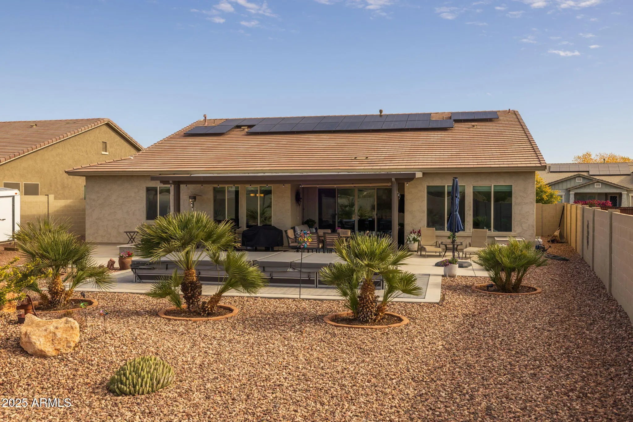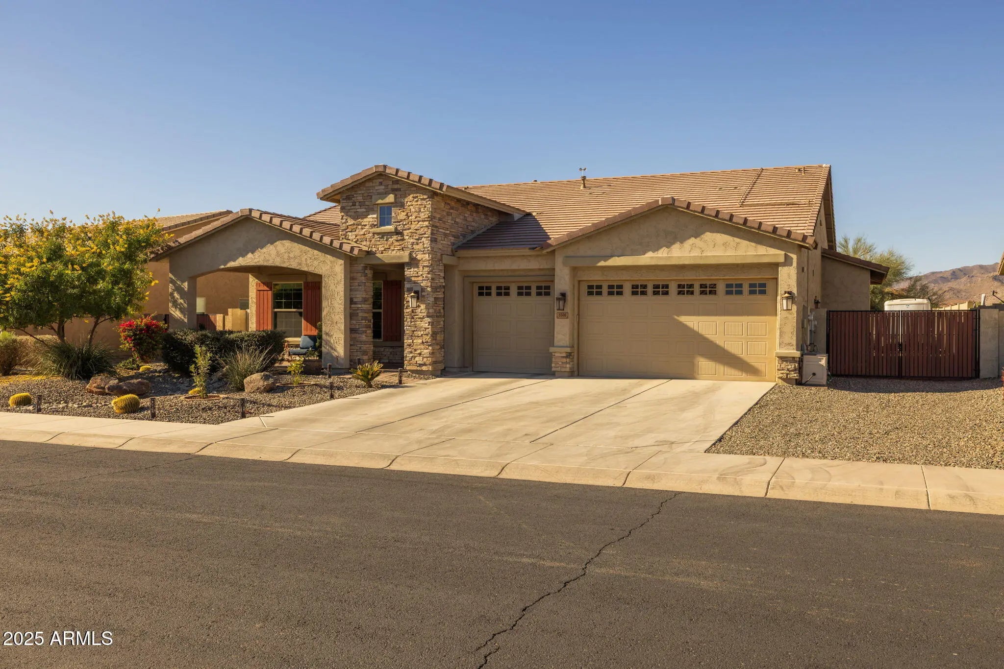This is the One!! Owned Solar, White Tank Mountain Views on Huge Premium, RV Gated Lot! This Meticulously Maintained Home is in Like New Condition! Built by David Weekley in 2019! Walk into this well-designed home thru the front covered porch, and experience a thoughtful floorplan w/ 3 Bedroom, 2.5 Baths & a Den. Complete w/ Gourmet Kitchen, Tons of Cabinets, & Nicely Designed Laundry Room. Natural Sun Light can be found t/o w/ Large Slider to enjoy your extended Covered Patio w/Private backyard space, no direct build behind home!$50,000 Endless Pool Fitness System Swim Spa, Includes Underwater Treadmill, swim resistance Turbine & Relaxing Spa. Don't Forget the 3 Car, 4' extended Garage, easily housing Larger Vehicles & R38 Insulation added for keeping it cool Additional Home Details: R44 Insulation Throughout Home Entire Garage is Insulated, Pool is Heated, only 1/2 Mile from Schools! Lots of Local Amenities, 5 minutes to Restaurants & Grocery Stores!