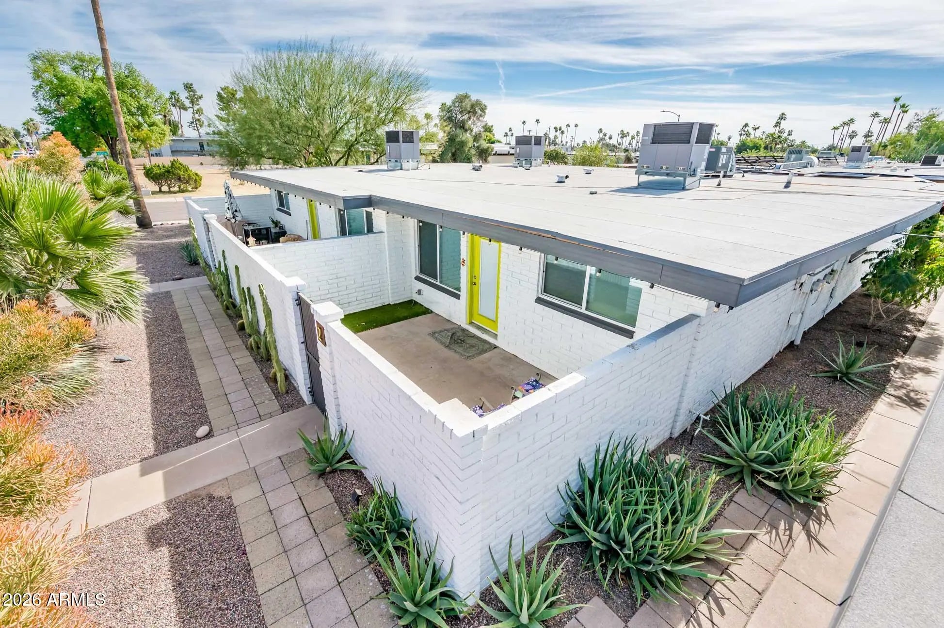 Turn-key prime Old Town Scottsdale fully renovated fourplex featuring three 2-bed/1-bath units and one 1-bed/1-bath unit. Interiors offer modern updated kitchens with quartz countertops, stainless appliances, luxury vinyl plank flooring, exposed block accents, and energy-efficient windows. Each unit has a separate entry into a private gated block-wall enclosed patio with turf and drip irrigation. Dedicated 4 carport spaces and 4 uncovered guest spaces on property. Second building is a shared on-site laundry room plus a locked storage closet for each unit. Major improvements include sewer line relining and HVAC upgrades. Exceptional proximity to Old Town dining, shopping, and galleries. Fully-rented and strong rental location with long-term hold appeal.