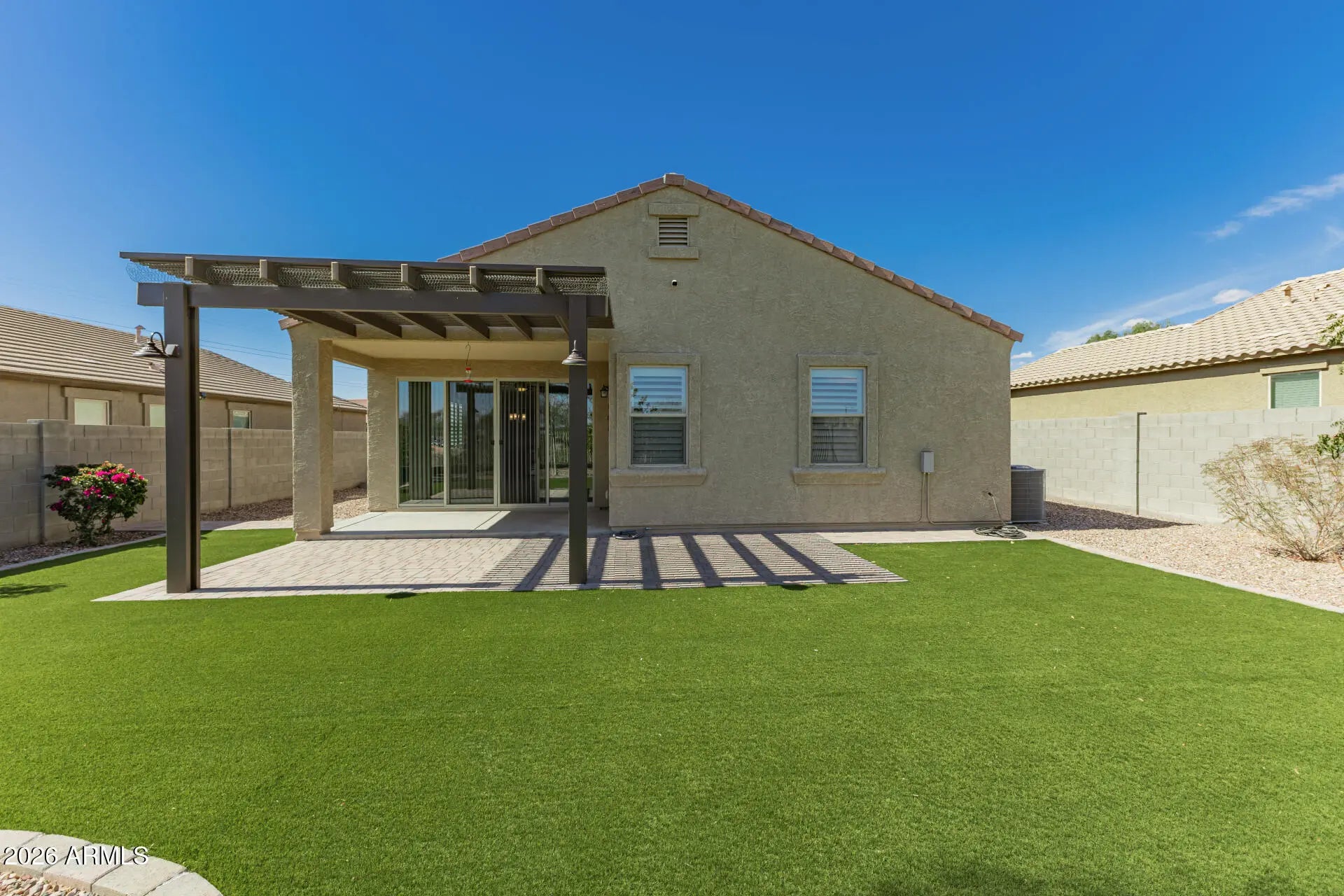 Sprinklers In Rear, Sprinklers In Front, Desert Front, Synthetic Grass Back