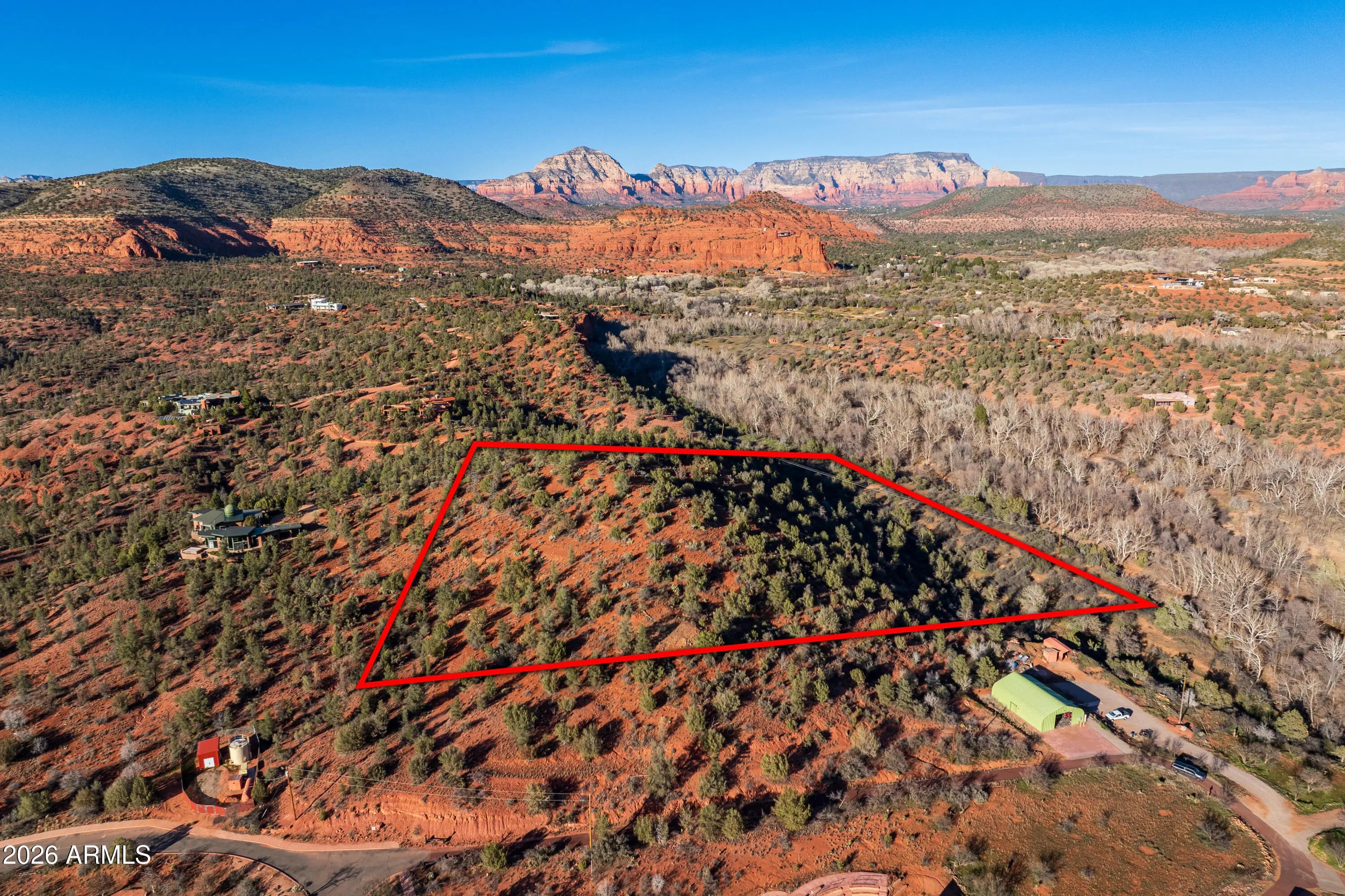 Have you ever watched a vintage western movie and wondered what it would be like to live amid the red rock vistas of the Old West...but with the conveniences of contemporary life? Make that dream come true at Smoke Trail Ranch, an exclusive, gated, 45 acre enclave of 5 home sites surrounded by sweeping, majestic mountain views. The gorgeous lot at 500 Smoke Trail offers 9 acres with a 1.25 acre building envelope. It's an incredible canvas just waiting for you to make your mark on this amazing piece of the Old West. Sewer lines, underground electric, telephone lines, and a shared well are all in place to provide a lifestyle early settlers couldn't have imagined. There's also a 3-acre creek-side retreat reserved exclusively for residents of the enclave. Smoke Trail Ranch was originally 700+ acres of pure Old West beauty, owned and nurtured by an airline executive and his wife who first saw it through the window of an airplane. The beauty they beheld all those years ago remains. Today, much of the original ranch is known as Red Rock State Park and provides an undisturbed look back at the rugged world brave settlers once dared to tame and turn into a home. As a resident of the Smoke Trail Ranch neighborhood, you can call the park your backyard, offering opportunities for exploration and education about preserving the environment in this unique corner of the natural world. Enjoy such famous views as Cathedral Rock, Wilson, and Mingus Mountain. 500 Smoke Trail is the only undeveloped lot left in the Smoke Trail Ranch enclave. Don't miss your opportunity to own a share in the incredible history and beauty of the Old West.