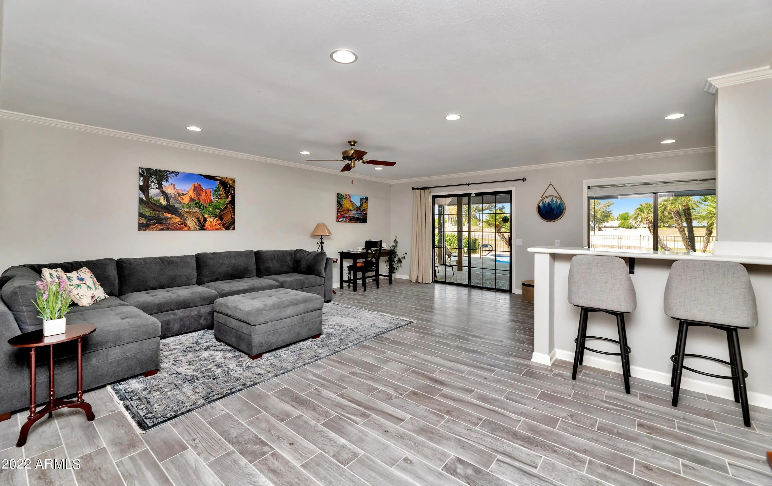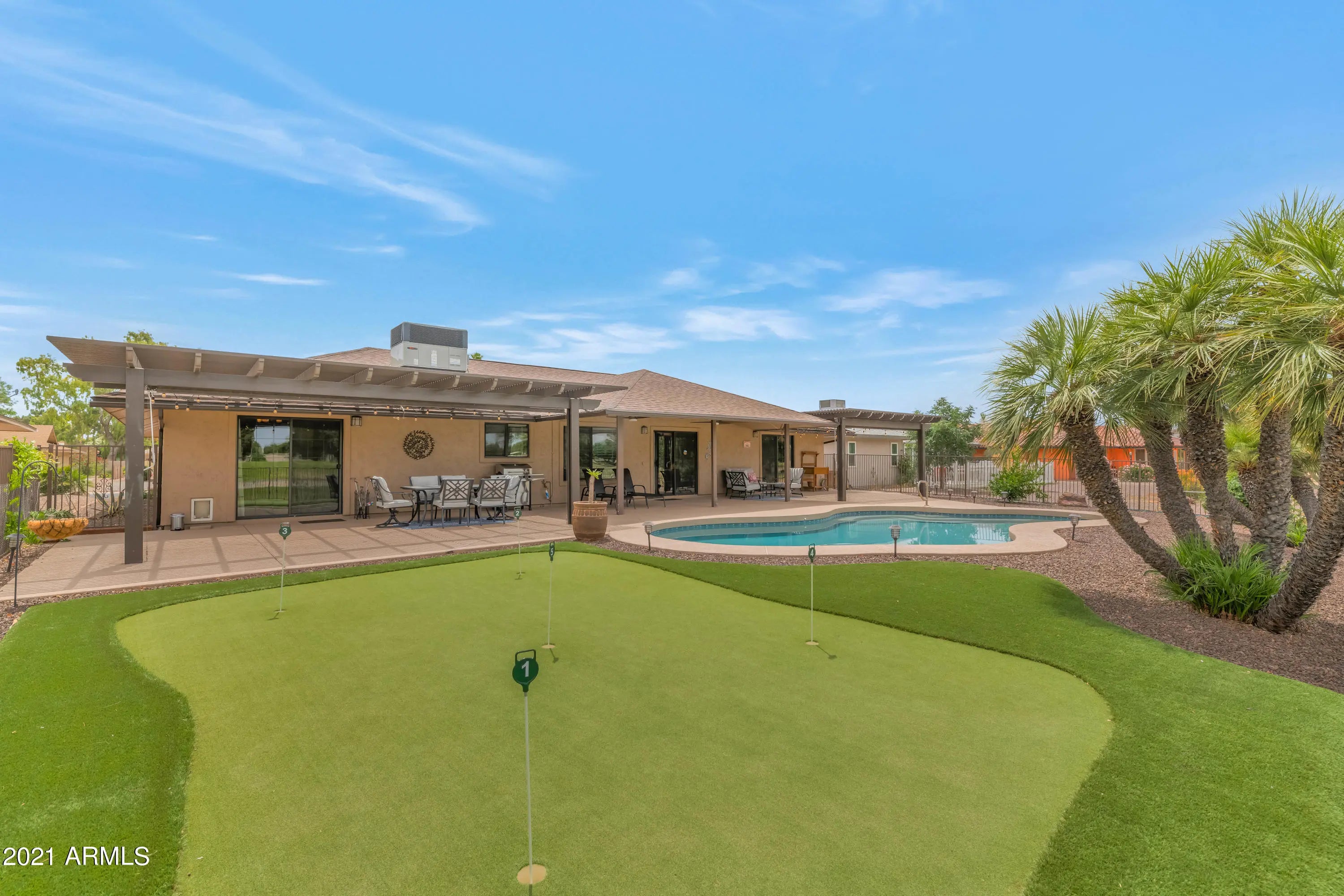 Beautiful totally remodeled home located on the 18 hole Union Hills Golf Course. This home offers a passage to paradise. Enjoy fun in the sun in the private pool with optional cooling/heating or sharpen your skills on your private putting green, or enjoy playing the piano in the living room. All this comes with dazzling AZ sunsets to be enjoyed from the covered patio with fans and misters for your comfort. Nothing has been overlooked for the tenant with discerning taste. (1 car parking space is available in the garage). ~~SUN CITY IS A 55+ ACTIVE ADULT COMMUNITY~~ TENANT HAS THE OPTION TO PURCHASE AN ACTIVITY CARD TO ACCESS SUN CITY'S 9 RECREATION CENTERS. SUN CITY ALSO HAS 8 BEAUTIFUL GOLF COURSES.