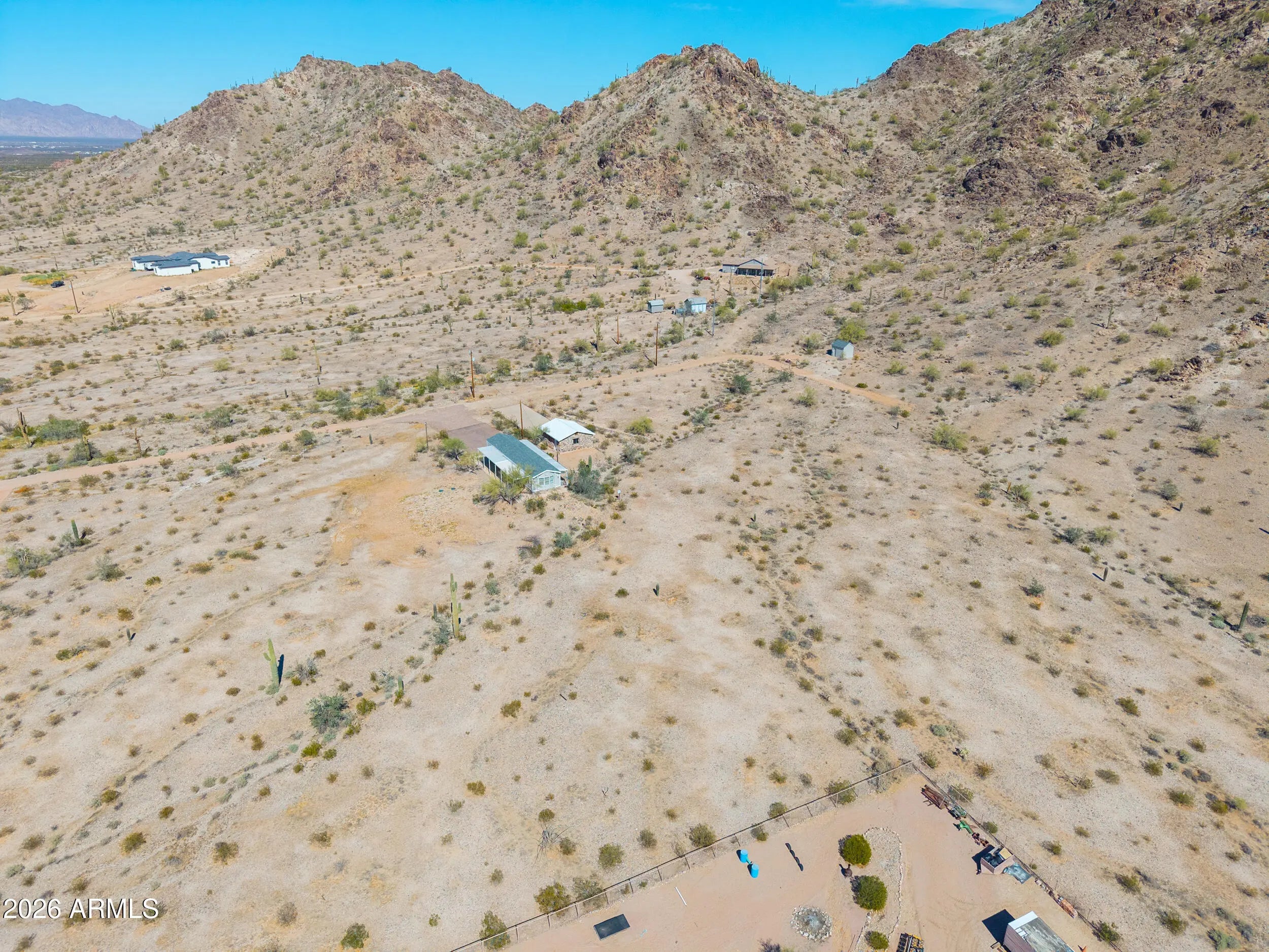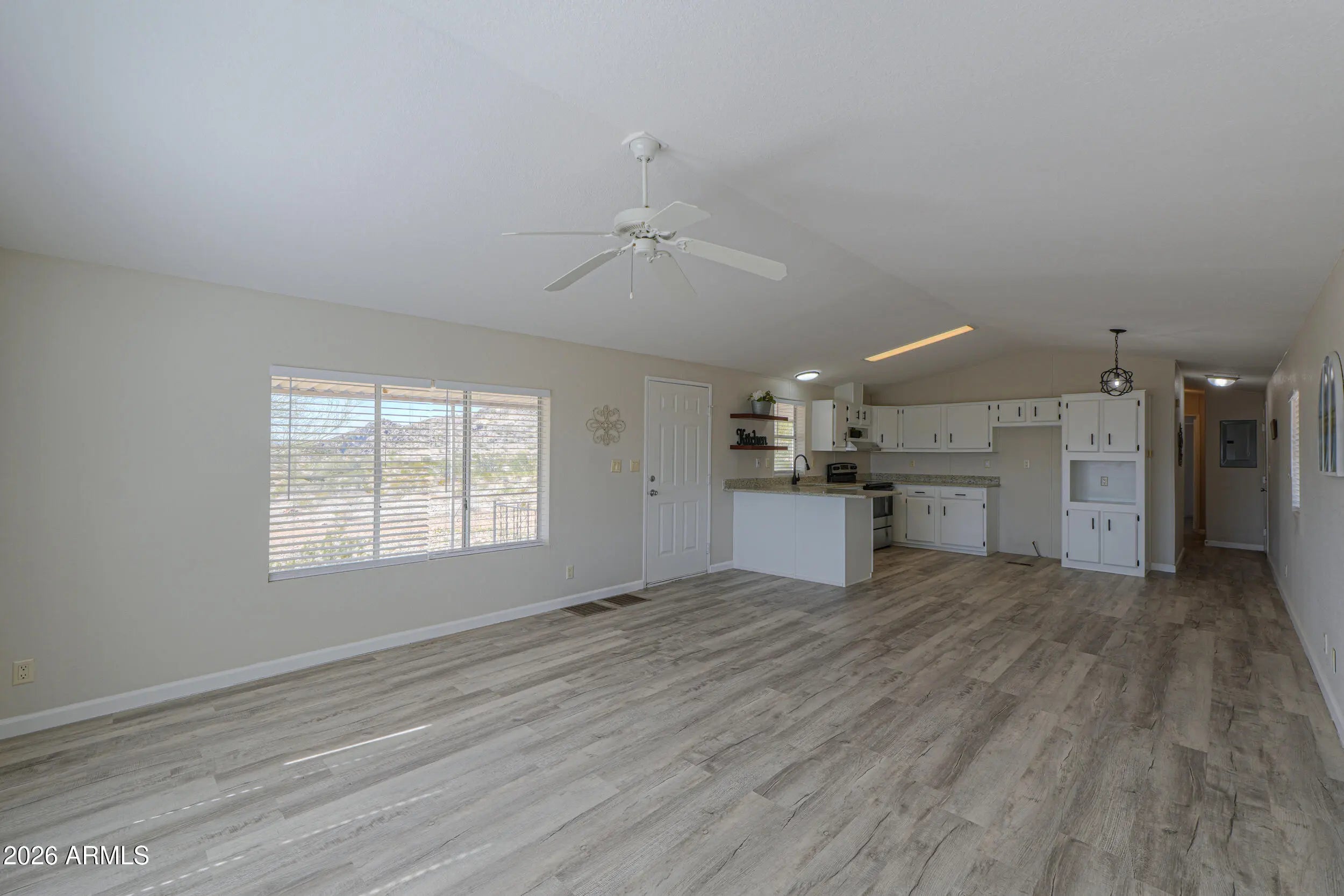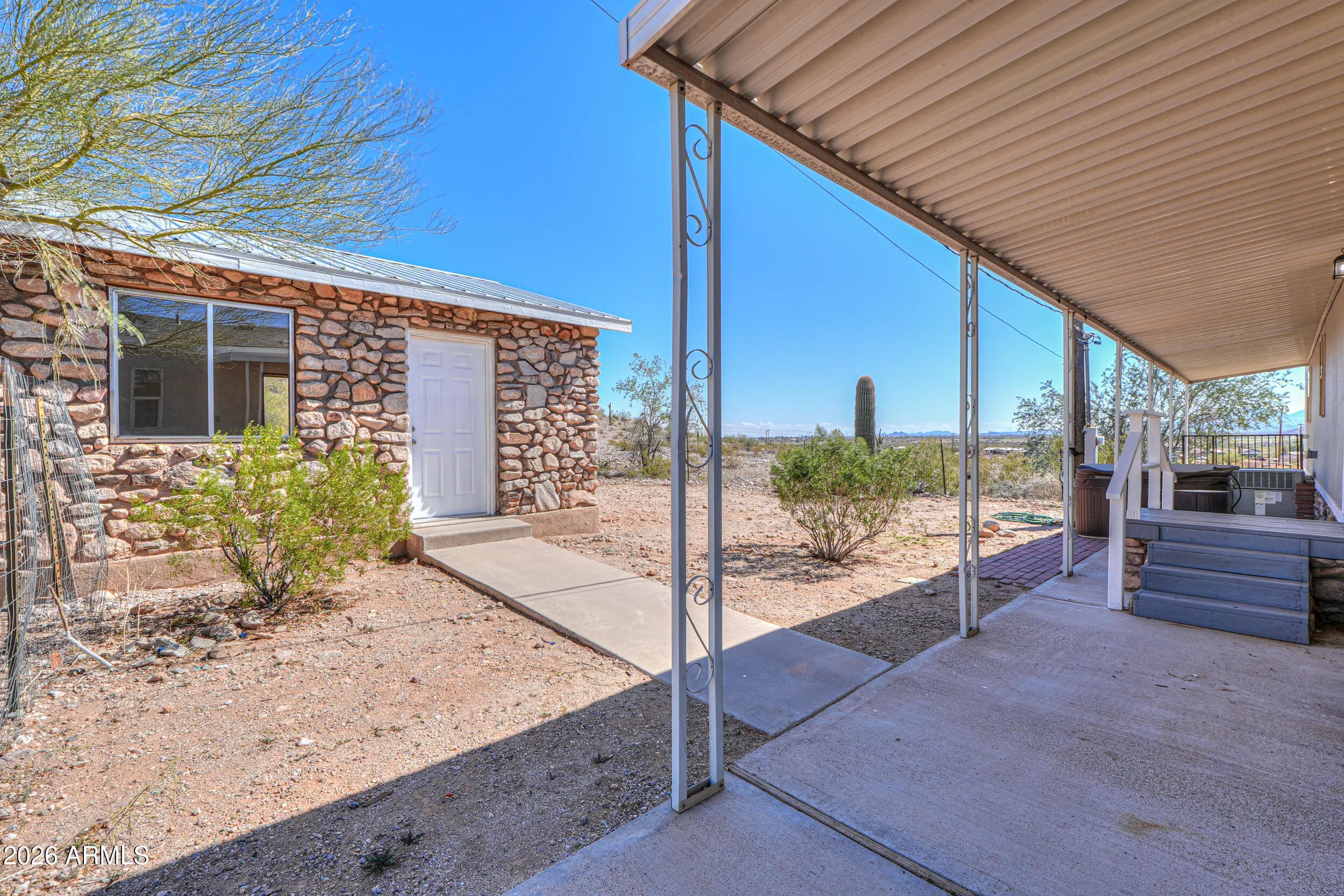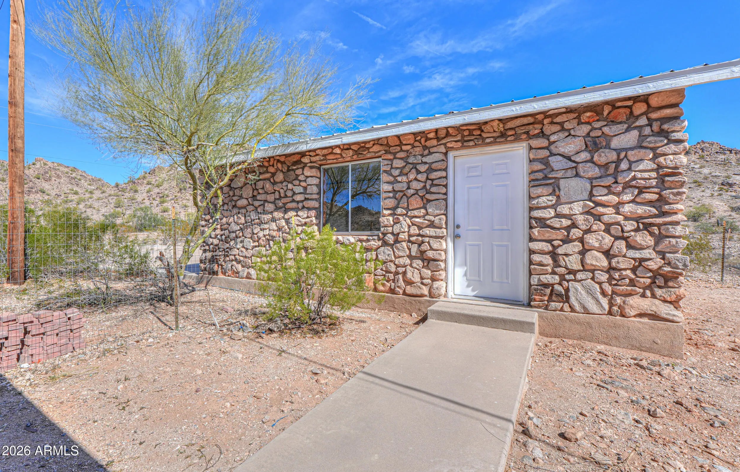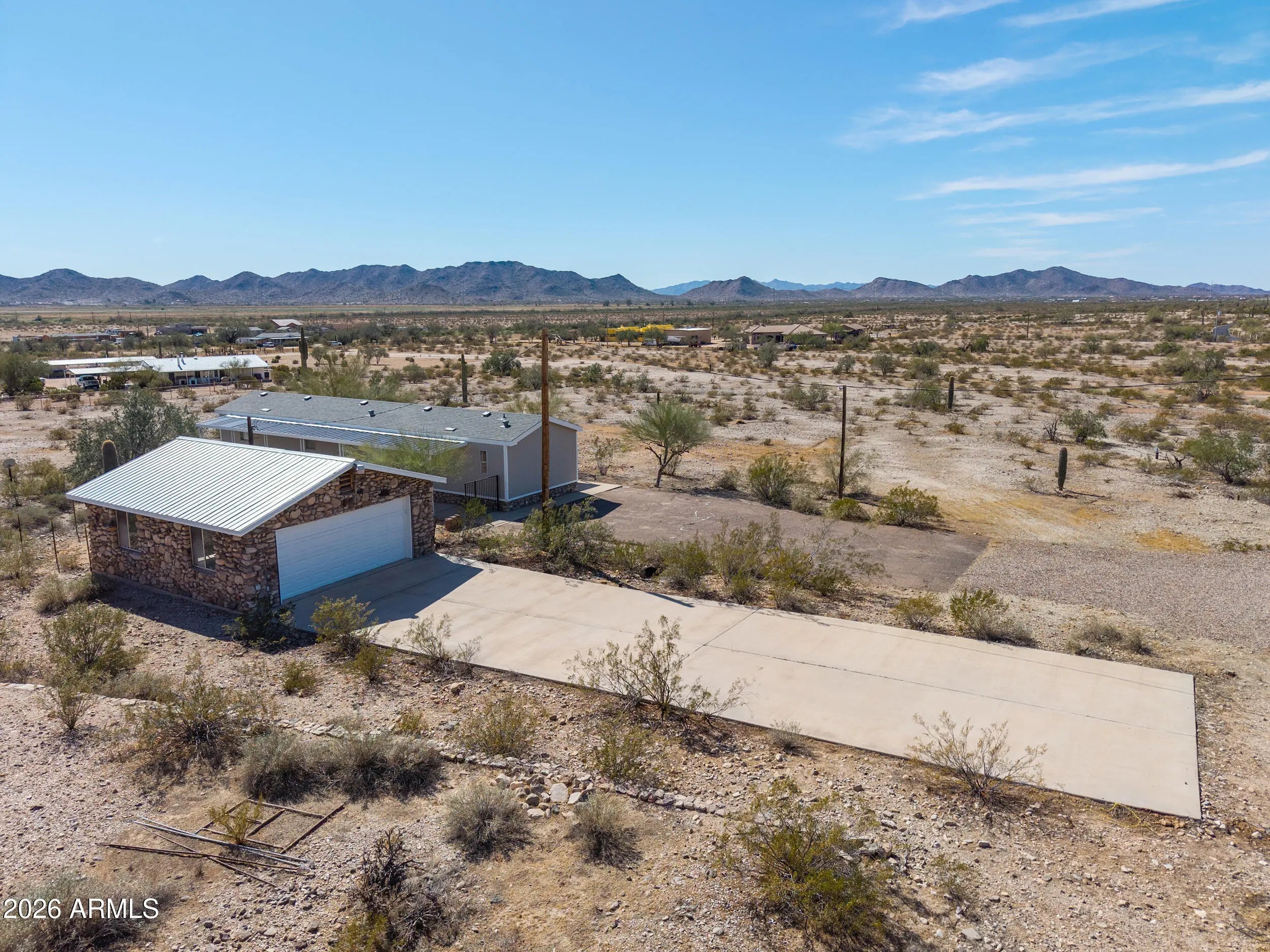A MUST SEE! This REMODELED beauty sits on 2.8 MOUNTAINSIDE acres & has plenty of room for horses & toys! This gorgeous MOVE-IN READY home boasts over 1000 sq ft & is loaded with upgrades- NEW ROOF, wood laminate flooring throughout, FRESH neutral two-toned paint inside & out, vaulted ceilings, upgraded fixtures & more! Featuring spacious entertainers kitchen with White cabinetry, granite countertops, SS appliances + 2 large bedrooms (with walkin closets), 2 full baths & open concept floorplan with palatial great room with bay window & breakfast bar! Spacious primary features an ensuite bath with granite vanity & large shower! Stunning lot nestled among saguaros & pristine desert landscaping with detached 2 car garage, full covered patios, no HOA, shared well, paved roads & MOUNTAIN VIEWS!