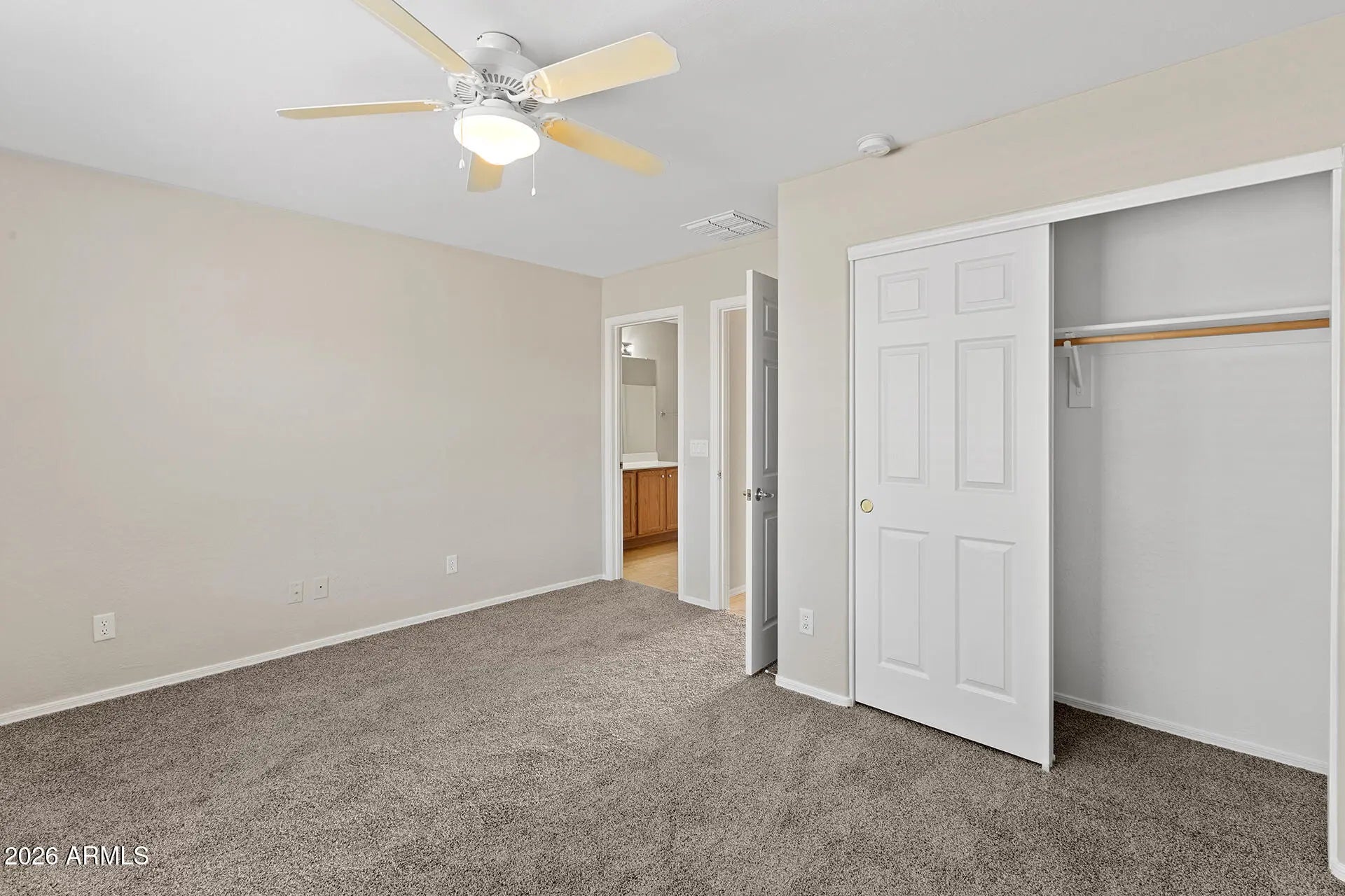 Premium lot, soaring ceilings, and two primary suites--this home truly stands out! Offering 3 beds, 2 bath, and 1,905 sq ft of spacious living on a premium lot! Inside, soaring vaulted ceilings, custom paint tones, and elegant plantation shutters. The open-concept floor plan creates a seamless flow between living, dining, and kitchen areas--perfect for entertaining or everyday comfort. Features two primary suites, both featuring walk-in closets and full baths in a split layout--ideal for multi-generational living or added guest privacy. The kitchen offers a center island, pantry, and large hardwood cabinets with ample storage space. Step outside to a full-length covered patio overlooking a large, low-maintenance backyard--ready for gatherings, relaxation, or future customizatio