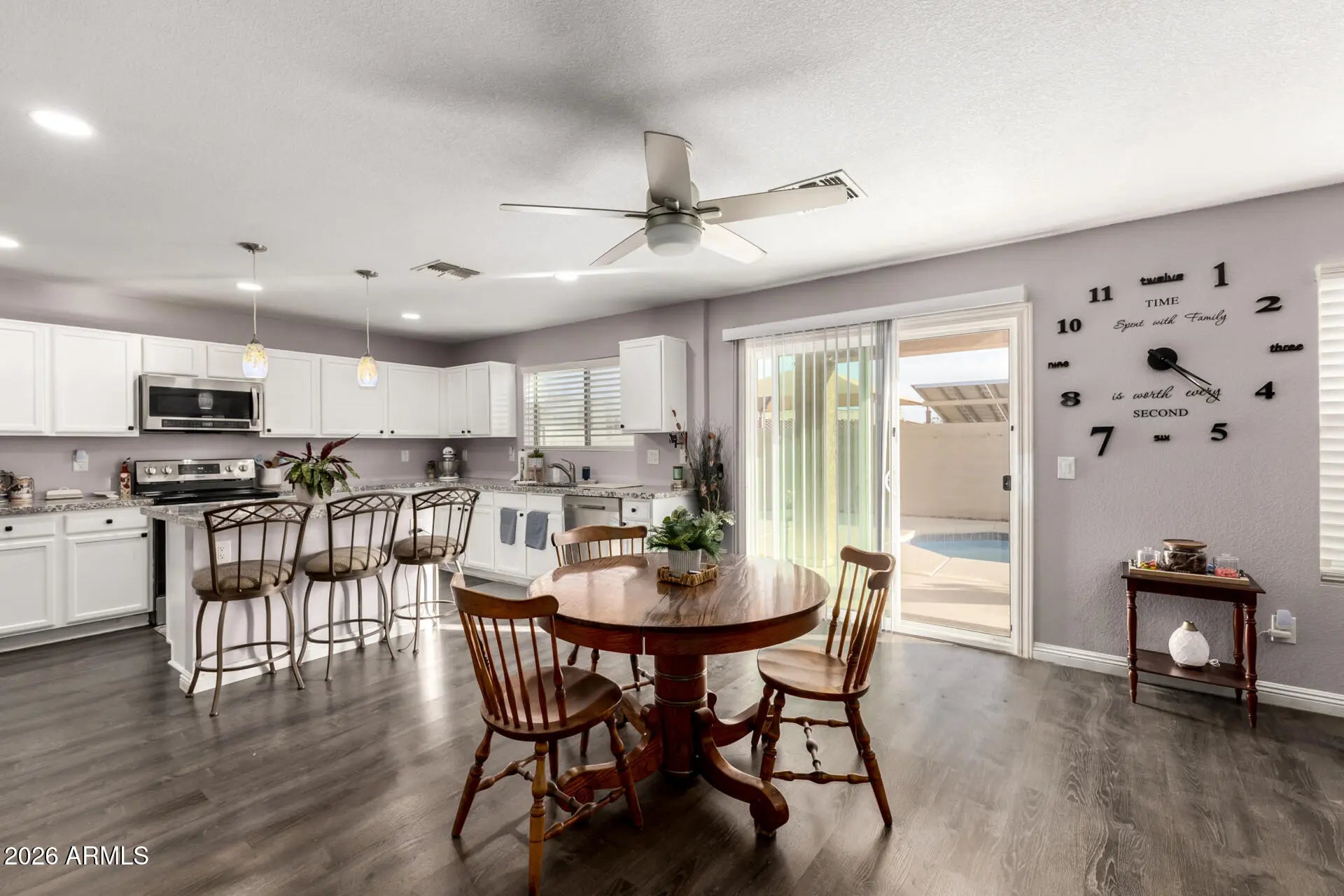 Welcome home to this beautiful, move-in-ready gem nestled in a quiet cul-de-sac in the highly sought-after Surprise Farms community. Offering the perfect blend of comfort, privacy, and entertainment potential, this two-story property is the ultimate Arizona retreat. The Home Step inside to discover 1,726 square feet of thoughtfully designed living space. The inviting great room floor plan seamlessly connects the living, dining, and kitchen areas, making it an ideal setup for hosting family and friends. Upstairs, you'll find a versatile loft space--perfect for a media room, home office, or kids' play area--alongside the spacious bedrooms. Head out back to your own private oasis! The backyard features a refreshing play pool that is ready for those warm Arizona days, a covered patio for shaded lounging, and easy-care landscaping. Best of all, there are no two-story homes directly behind the property, giving you premium privacy while you swim or relax.