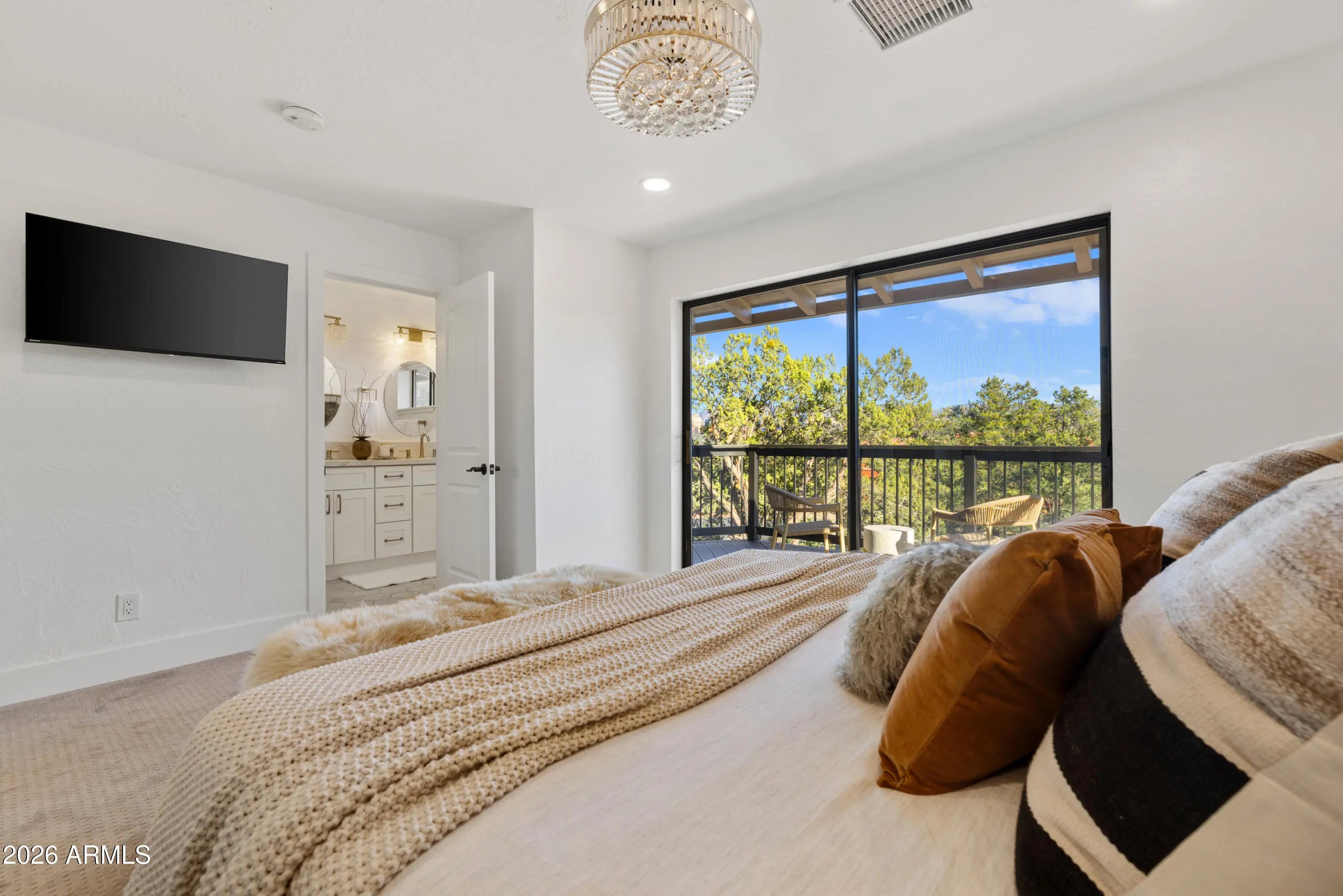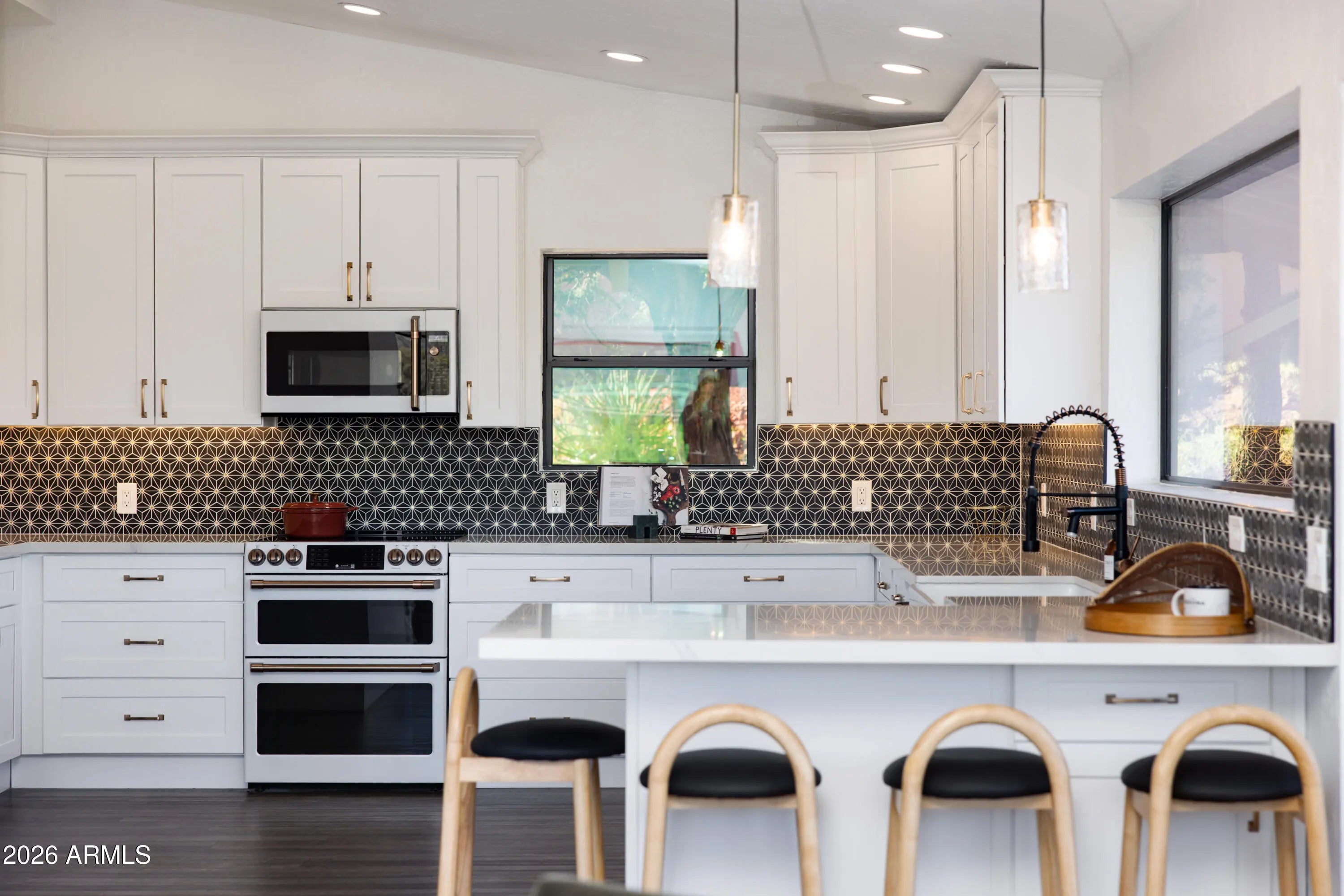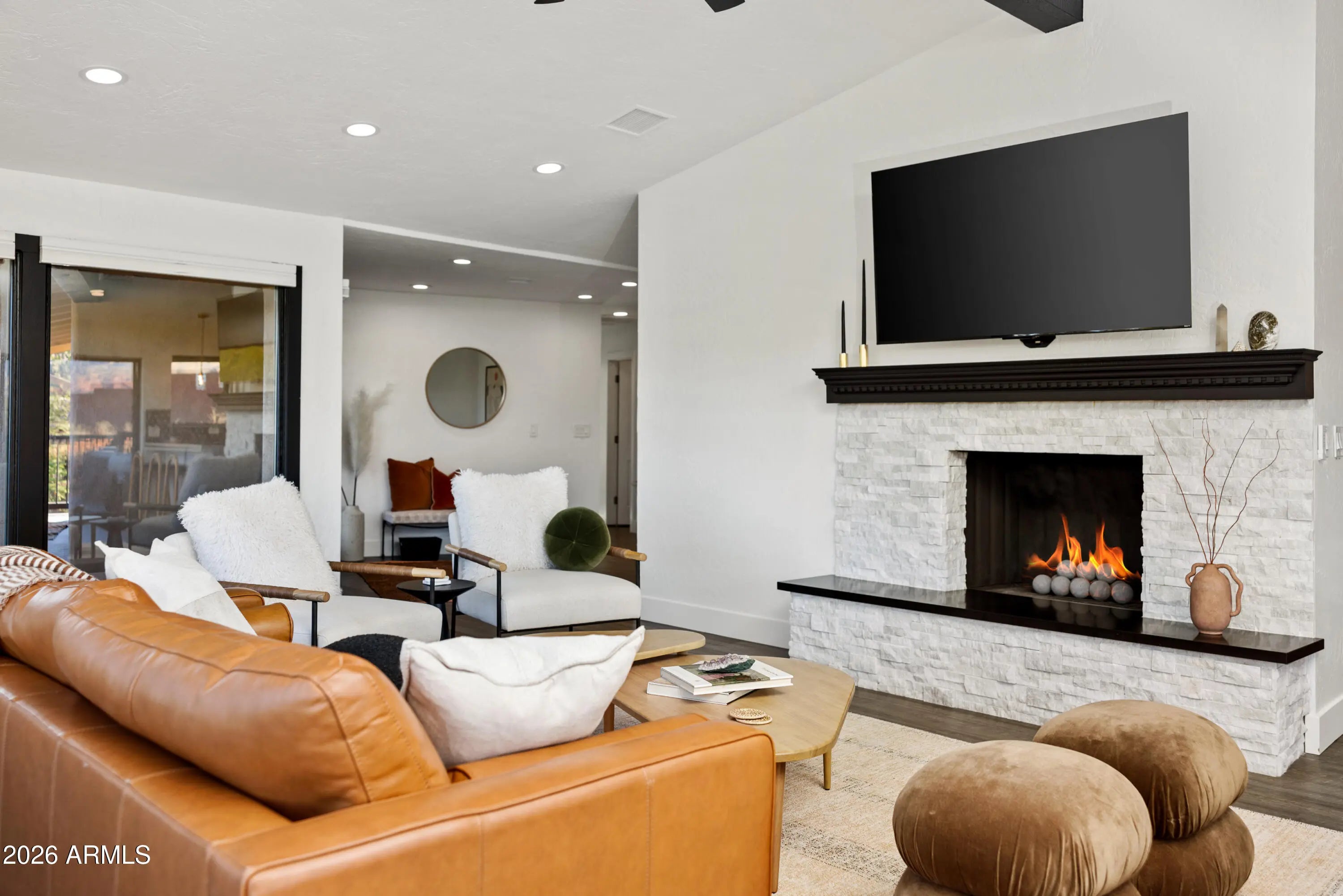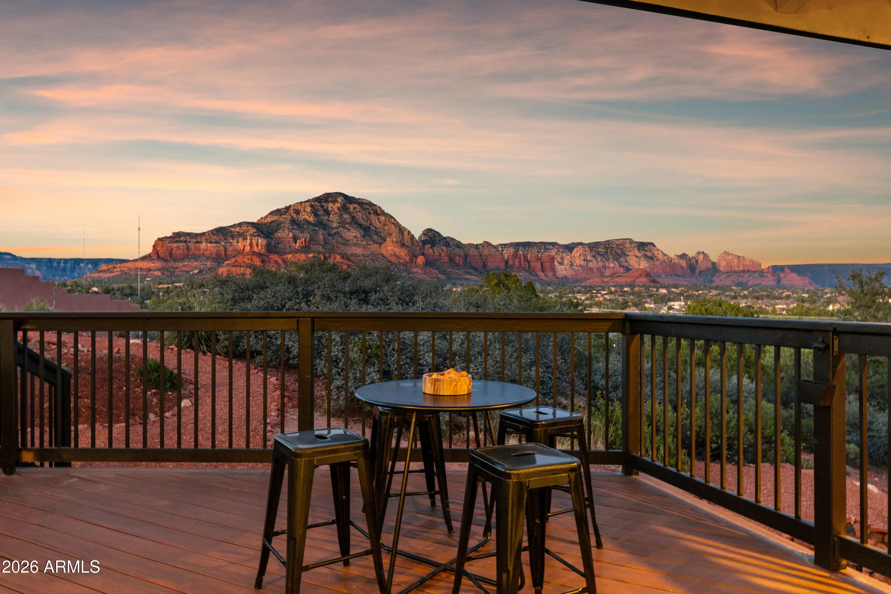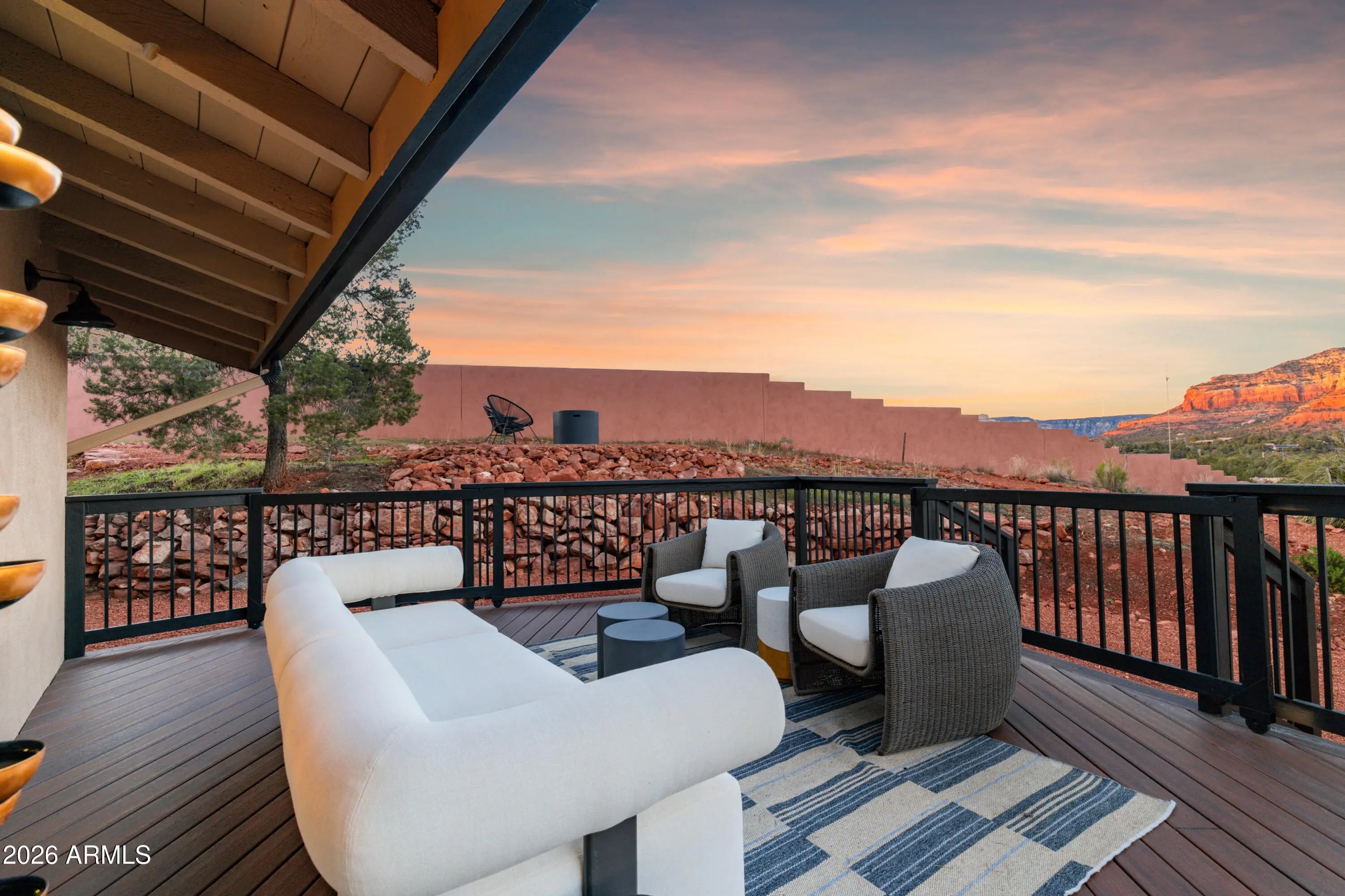 Elevated above the glittering city lights of Sedona with unobstructed 270° red rock vistas, this fully reimagined contemporary home has 3BD/2.5BA + a lower level flex bonus room. It delivers the trifecta of updated design, a gorgeous lot, and transcendent scenery. Picture windows flood the open-concept living space with natural light and ever-changing desert color. Remodeled inside and out, the home features clean lines and expansive open decks, creating effortless indoor-outdoor flow. Price also includes the adjacent .66-acre parcel for a combined 1.15 acres, amplifying privacy and presence. Beautifully staged to highlight its city-meets-nature setting. The owner holds AZ Real Estate Broker License. MORE DETAILS+PHOTO NARRATIVE: -------------- 300 CALLE DEL NORTE HIGHLIGHTS & DETAILS: Originally built in 1986 and intentionally positioned to capture the full sweep of Sedona's majestic red rock skyline, this home has undergone a thoughtful top-to-bottom transformation over the past three years. What once stood as a well-sited property with strong bones in the highly desirable Foothills South neighborhood is now a fully reimagined contemporary retreat -- refined, cohesive, and intentionally modern. Every surface has been reconsidered. Interior and exterior renovations were executed with an emphasis on clean lines, durability, and bright, neutral finishes. The result is far more than cosmetic improvement -- it is a true reinvention, blending modern influence with the warmth, proportion, and scale that Sedona living demands. The surrounding grounds received equal attention. Landscaping was groomed and reshaped to create a cohesive 1.15-acre setting with walking paths (inclusive of the adjacent parcel), increasing usable outdoor space while preserving the natural beauty that frames the panoramic views -- offering a private, park-like environment. A generous horseshoe driveway enhances both arrival presence and functionality, accommodating up to 6 vehicles. Set along West Sedona's main corridor, the property enjoys immediate access to town amenities and thoroughfares, making daily living and entertaining effortless. Elevated above the roadway, the home captures uninterrupted red rock vistas and city lights, pairing convenience with commanding views. With the inclusion of the adjacent parcel, the expanded 1.15-acre footprint opens the door to enhanced outdoor design opportunities. A future owner may choose to incorporate additional privacy landscaping, architectural screening elements, water features, fountains, or even a pool and spa environment -- further enriching the sensory experience of the outdoor spaces. Mature plantings, rustling trees, and thoughtfully designed hardscape features could create an even more immersive and layered landscape setting while preserving the property's panoramic outlook. (Buyer to verify expansion options with the HOA and compliance with all applicable CCRs.) Without exception, this is a property that has been carefully curated -- not flipped or rushed -- but deliberately refined by the seller, who lived in the home and personally served as the general contractor for the remodel. Explore the immersive 3D walkthrough and cinematic video tour to fully experience the layout, elevation, and panoramic view corridors this property offers. Continue to take a closer look at the layout, materials, improvements that define this property. All of the heavy lifting and expense has been taken care of for the new owner. NEW STRUCTURAL & MECHANICAL IMPROVEMENTS (2023-Present) -Composition shingle roof -Exterior Paint - Beige stucco with black trim accents -HVAC system including new ductwork and the addition of central air conditioning -Dual-pane energy-efficient windows and main sliding glass door -Electrical updates throughout with all new interior and exterior lighting NEW EXTERIOR ENHANCEMENTS (2023-Present) -2 new decks with composite plank floors +wood rails & bannisters -New asphalt driveway -Added Retaining walls and expanded hardscaping improvements -Added paver patio off third bedroom with enclosed pet area -Added upper yard paver patio creating additional outdoor space NEW SITE WORK & DRAINAGE (2023 to Present) -Comprehensive landscaping refresh with new decorative rock and gravel -Added groomed walking paths throughout the property -Added drainage channels and French drain systems installed for improved water management GARAGE & STORAGE (2025/26) -Full 2-car garage remodel including fresh paint, epoxy-coated floors, new garage doors, and quiet-open openers + coded entry pad -Expansive crawl space maintenance with groomed earth floor, lighting, w/fully sheathed walls & ceilings for mechanical protection and insulation integrity - TONS OF STORAGE! INTERIOR RENOVATIONS (2023-Present) The interior renovation reflects a cohesive, modern design palette centered on warmth, contrast, and functionality. INTERIOR FINISHES & DESIGN FEATURES FLOORING & PAINT -Whole-home luxury vinyl plank flooring in a dark walnut tone -Five-inch white baseboards throughout -Bright white interior paint with updated wall texturing -Warm, dense oyster-toned carpet in the primary suite & Bedroom 2 LIVING & ENTERTAINING SPACES -Open-concept living and dining areas adjacent to a spacious corner kitchen -Wood-burning fireplace with stone ledger accent wall and a black quartz hearth creating a striking focal point -Flooded with light coming in the large format wood encased picture windows and trimmed out w/black accent paint -Whole-home new doors, hinges, and hardware -Whole-home new lighting including plates, switches, receptacles KITCHEN -White quartz countertops w/gorgeous geometric starburst tile backsplash with metal button accents -Extensive white shaker-panel cabinetry, upper & lower with soft-close doors and drawers -Brushed bronze cabinet hardware -Ceramic apron-front sink w/gooseneck faucet with pull-down sprayer + a dedicated pot filler faucet -Air button disposal -White Matte-finish Café