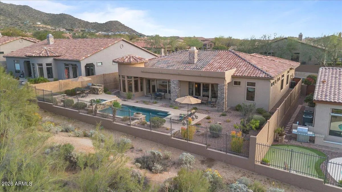 Nestled on a premier preserve lot in prestigious Las Sendas, this original-owner estate blends privacy, elegance, & breathtaking desert beauty. Backing to a mountain preserve, this meticulously maintained 4-bedroom split floorplan plus office includes a private detached casita & showcases refined living throughout. The resort-style backyard features stunning mountain & city views, a heated, remodeled pool & spa, along with a built-in BBQ--perfect for relaxing or entertaining. Inside, a thoughtfully designed open layout combines sophistication & comfort. The spacious living area flows into a chef's kitchen with a large island & breakfast nook. High-end appliances, a new roof, & a new HVAC system ensure modern efficiency & lasting peace of mind. Impeccable pride of ownership throughout