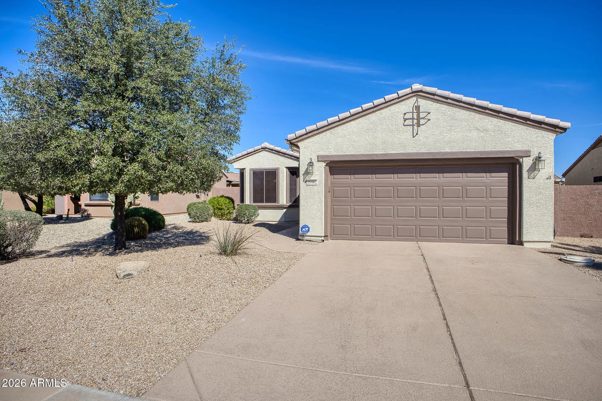 Enjoy The Grand with access to fitness centers,4 golf courses,pickleball,tennis,clubs & activities.You will be impressed with this Iris plan featuring a great room,2 bed/2bath,breakfast bar & eat in kitchen.Light tile in all the right places & carpet in bedrooms.Stainless steel appliances,washer/dryer included.Maple Cabinets.Bay windows in kitchen & primary bedroom.Ceiling fans.Water heater replaced.HVAC & ROOF underlayment replaced. Soft water loop.Ext garage with epoxy floor,built-in cabinets & workbench.PVC landscape lines.Driveway,sidewalk & patio cool coating.Relax on the covered patio + enjoy the privacy with block fencing & spacious yard.Other features include; raised panel doors,new lighting,mirrors & toilets in bathrooms,rain gutters,patio gas line,vac mailbox.Welcome Home!