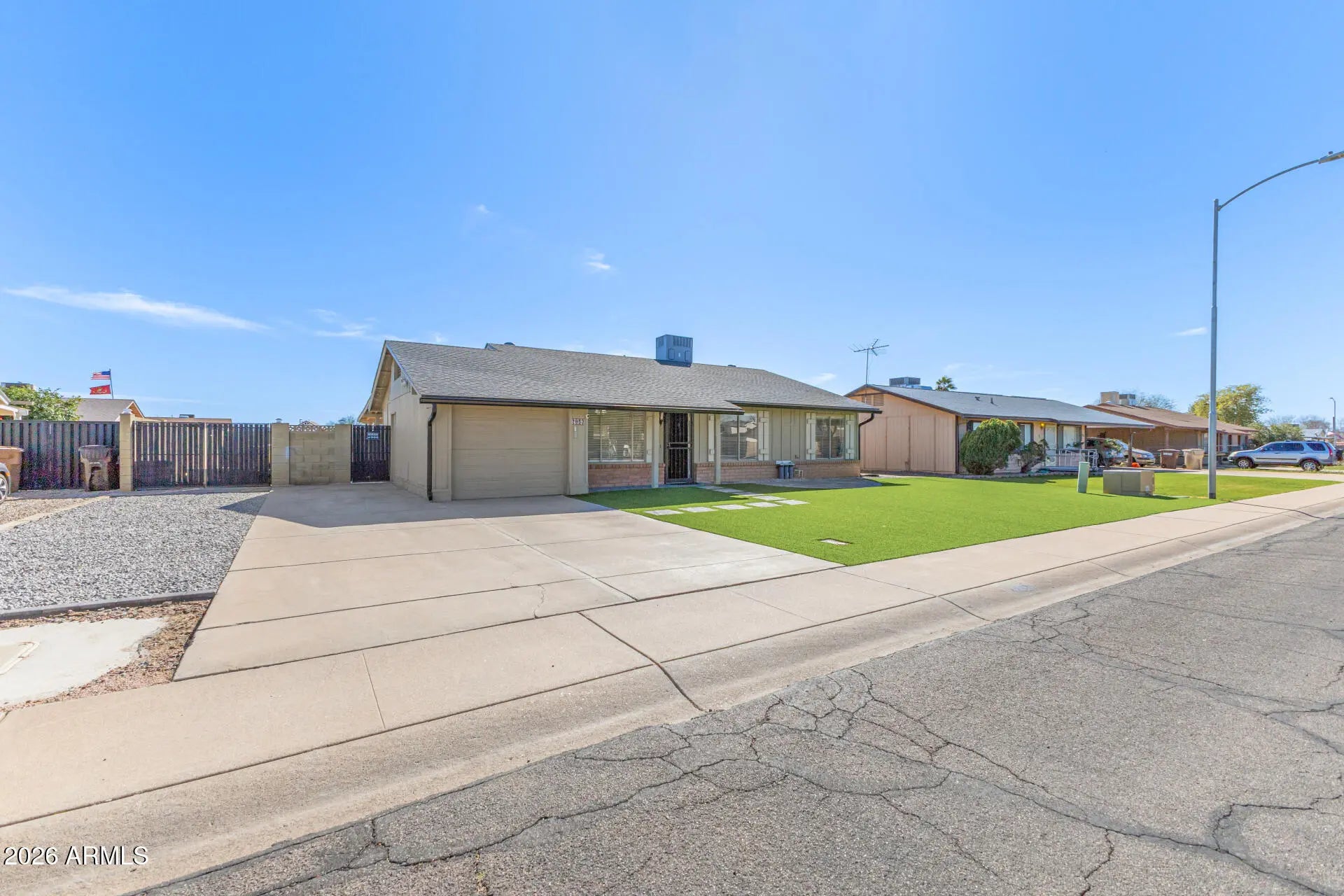 Check out this beautiful 4 bed, 2 bath residence now on the market! Charming curb appeal, garage with epoxy, a large front yard w/artificial turf, and an RV gate are just the beginning. Inside you will find a sizeable semi-open concept w/stylish wood-look flooring and trending palette throughout. Prepare delicious meals in this fabulous kitchen, equipped w/shaker cabinetry, granite counters, tile backsplash, and high-end SS appliances. The primary bedroom boasts plush carpet, an ample closet, and a private bath for added convenience. Lastly, the expansive backyard includes a covered patio, extended seating area, and convenient storage shed! Your new home is waiting for you, hurry and act now! See documents tab for list of updates.