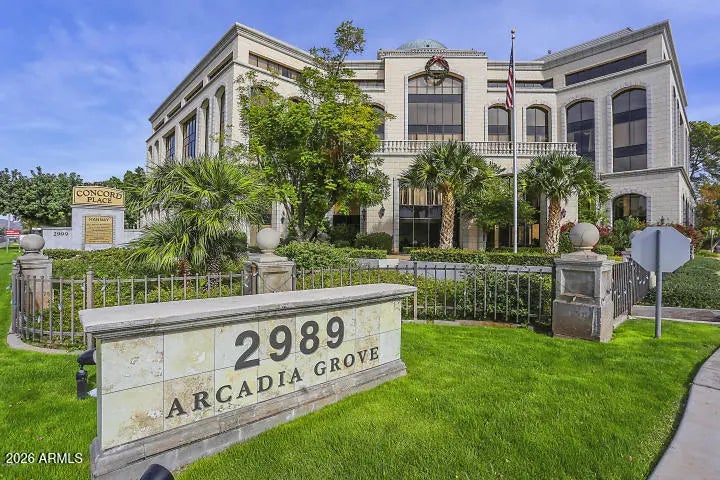 Resort-style living awaits in the gated community of Arcadia Grove. This North-facing 1-bedroom/1-bath condo offers peaceful views of Camelback mountain, lush palms, koi ponds, & cascading waterfalls -- w/ the relaxing sound of water right outside your door. There are only 3 - 1 Bedroom units in the complex & this is on the Top Floor! Secured indoor lobbies w/ elevator access provides effortless entry to this single-level residence. Primary bedroom offers a sitting area/office space & walk in closet. One car garage for private parking & storage. Minutes from Scottsdale, Biltmore, Tempe, Downtown Phoenix, & Sky Harbor, the community features a heated pool & spa, fitness center, and clubhouse. Perfect as a full-time residence or an effortless lock-and-leave retreat for seasonal living.