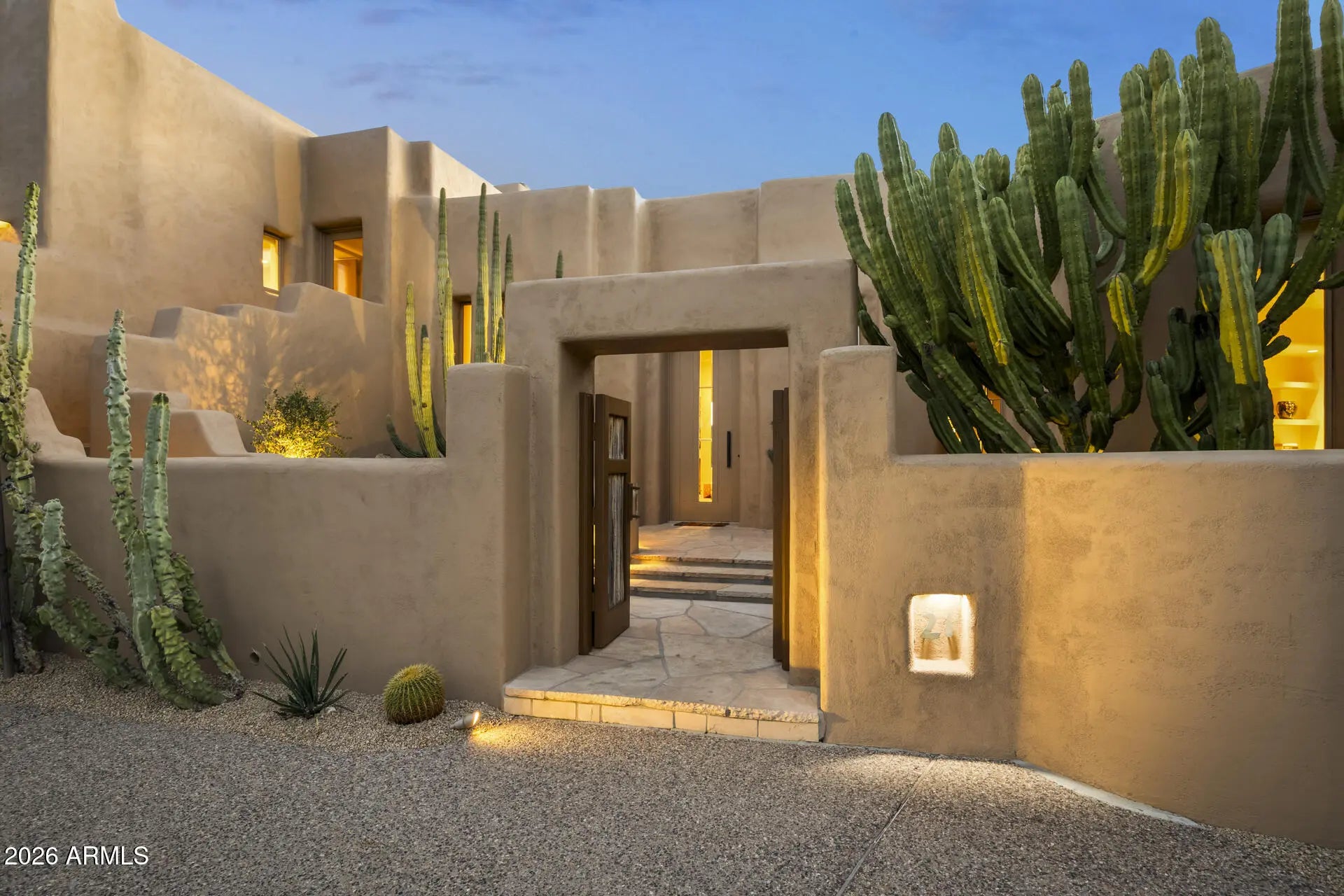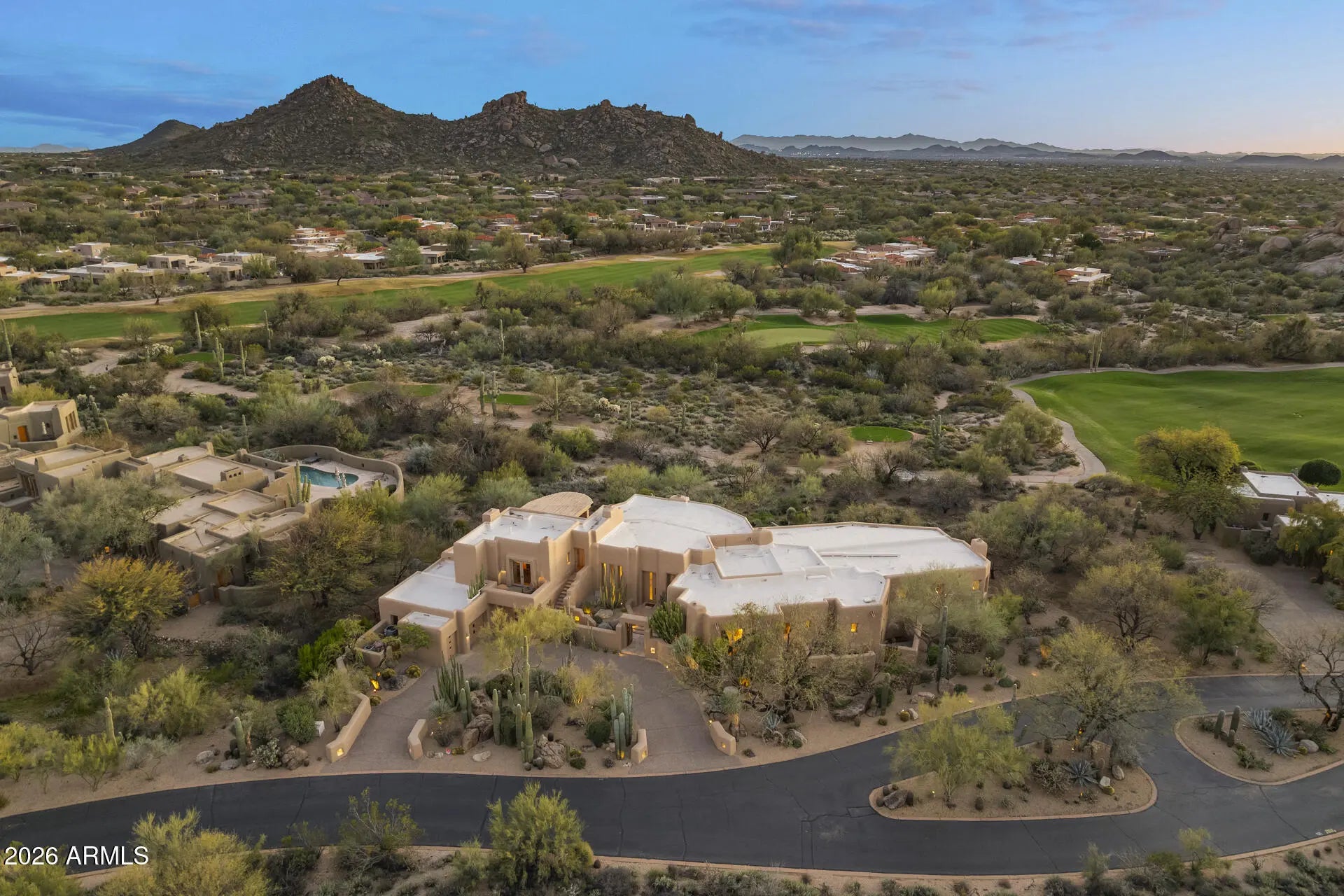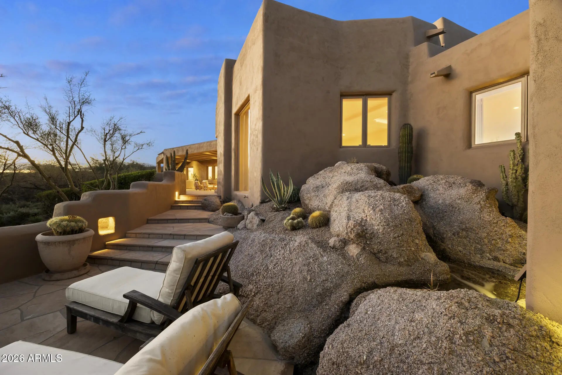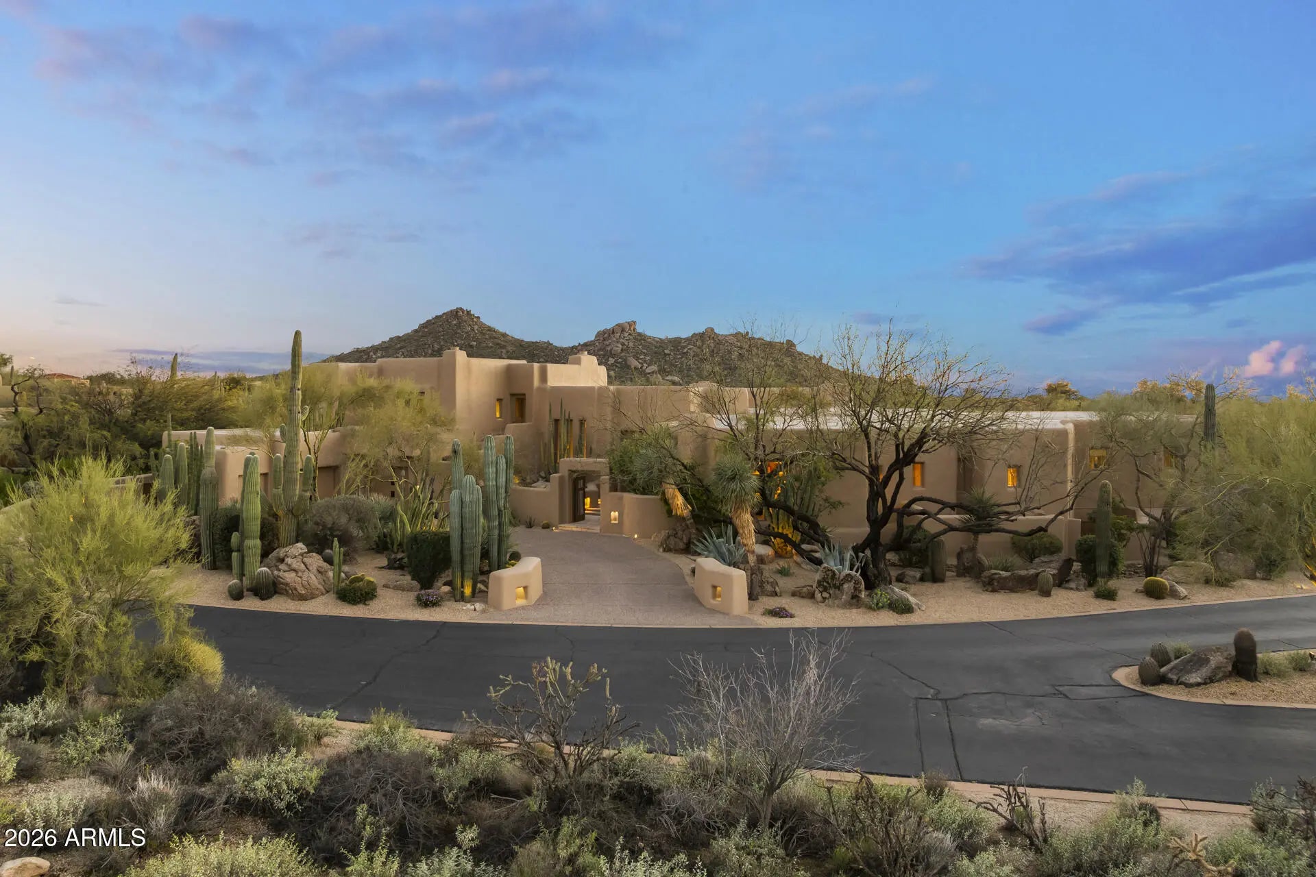 William (Bill) Tull, renowned artist & sculpter, designed this private adobe retreat which offers complete privacy within the famous ''Boulders Resort.'' This custom adobe home on the 17th green of the Boulders south course is 1 of only 17 architecturally unique houses in the Tull inspired ''Adobe De La Tierra'' subdivision. South facing patio provides fairway, mountain & gorgeous sunset views. 7 fireplaces, 6 bathrooms, 4 bedrooms, 5016 square foot home features hand-sculpted, custom shaped rooms. Circular drive takes you to two cactus spine gates leading to a private courtyard. Enter the home to a large great room w/dramatic views. Make your way through a mini family room - great for reading, movies, games, or a sitting room-on the way to the primary room with separate his/her (see more) bathrooms, mountain views and an outside sitting area. One bedroom has an exterior entrance perfect for a nanny, caregiver or a relative who has returned. All bedrooms are separated and several have an ensuite. Kitchen opens to the patio w/BBQ for outdoor dining. Kitchen has all of the bells and whistles including two dishwashers, beverage refrigeration drawers and many top of the line appliances. Breakfast nook is cozy with art niches. The great room and kitchen/family room feature many niches and abundant wall space for art. Saguaro ribbed window coverings and air vents all make for a distinct Santa Fe feel. This home is authentic adobe, meaning it was constructed with handmade solid bricks from the earth. The result is a home built with exceptional quality and care, boasting unparalleled efficiency for the desert climate. Room for a guest house and/or a pool on the private ¾ ace lot. The south facing wrap around patio has several viewing areas and sports a water feature and a romantic firepit. The home was remodeled/expanded twice, the first with true adobe and the second using standard block. The Boulders Resort features 2 golf courses and three types of membership. Bill Tull adobes rarely come on the market.