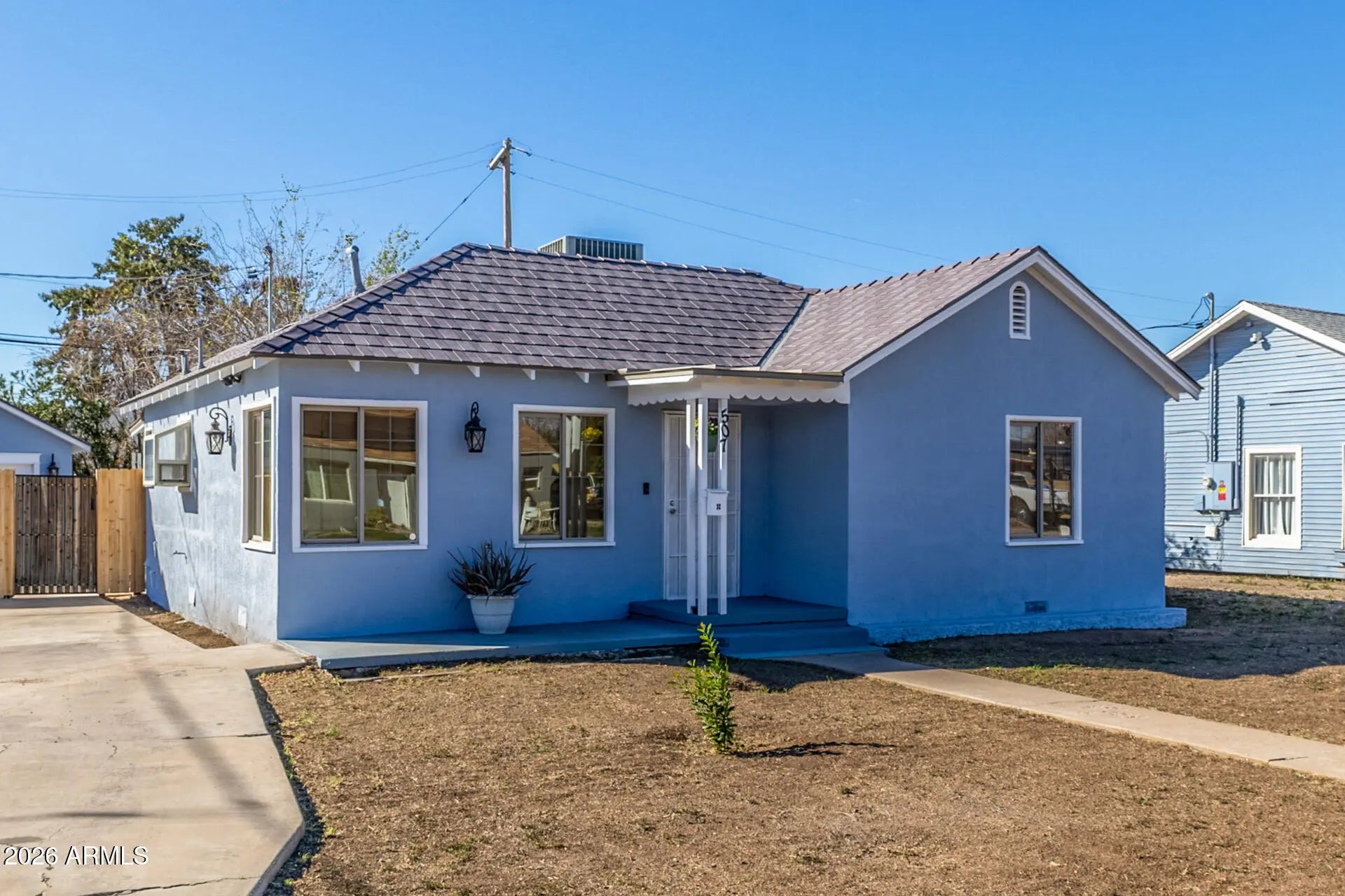 This is a must see charming bungalow in the historic district of downtown Buckeye! This home has the original wood floors and original built in storage area in the hallway. This home has updated kitchen and bathrooms. All new fresh exterior and interior paint. Not only does this home have forced air there are also added mini splits in the rooms for your added comfort! Metal roof that looks like slate. The yard is currently a blank slate to make it your own, the property does have flood irrigation. Fenced in backyard. 1 car detached garage with a long driveway with lots of parking. No HOA and low property taxes. Walking distance to the park, Library, elementary school, shopping and lots of new dining experiences in Buckeye! Owner is related to Relator