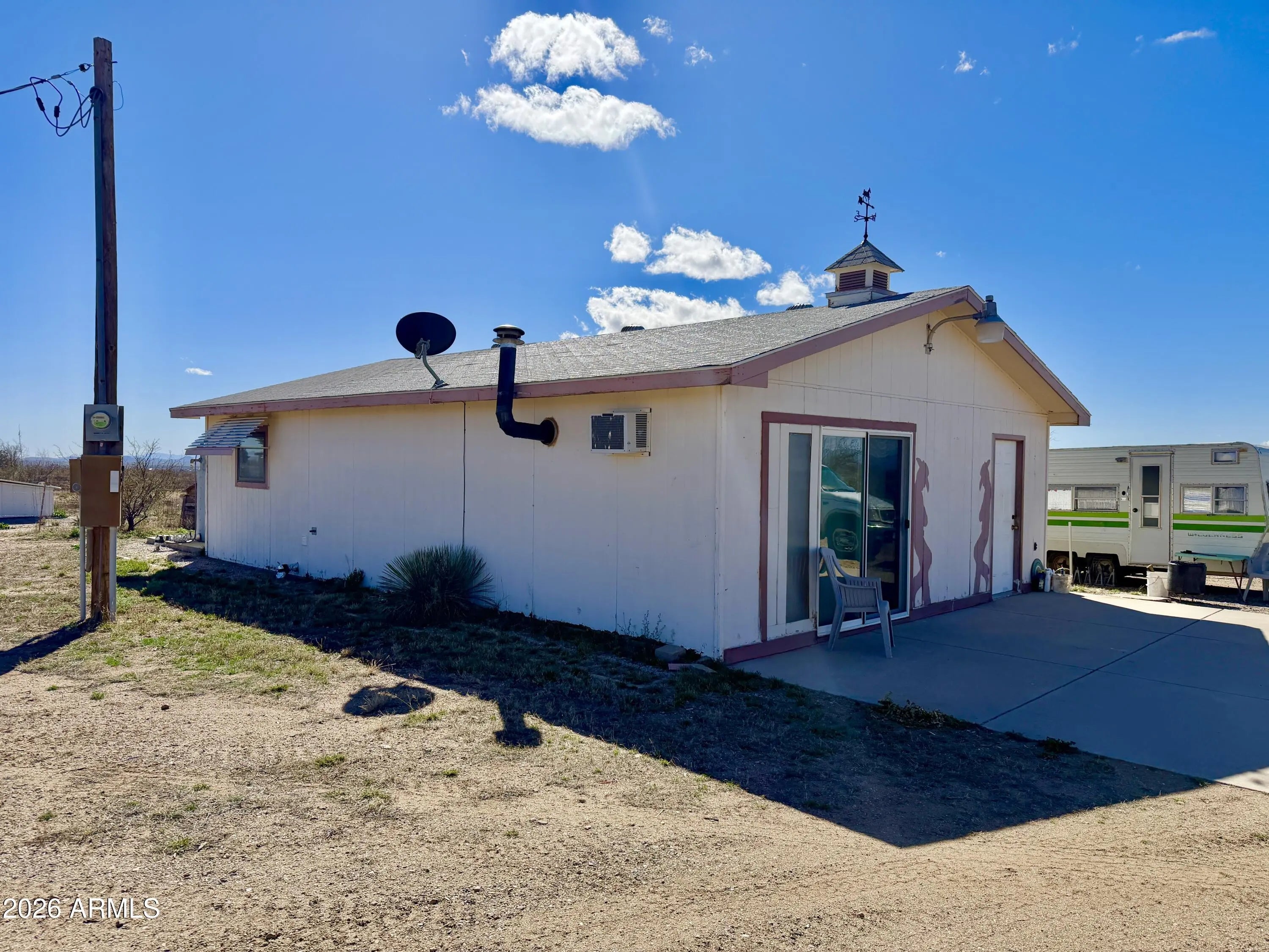 An incredible opportunity to own your own private ranch on 37 expansive acres! This unique property features a charming 1-bedroom, 1-bath main residence, plus an affixed 1973, 2-bedroom, 2-bath mobile home--ideal for guest quarters, multigenerational living, or comfortable ranch-hand accommodations. Take in the breathtaking views of the Dos Cabezas Mountains and experience the unmatched peace and privacy of wide-open spaces. With minimal light pollution and stunning dark skies, this property is a dream for stargazing enthusiasts. Located just minutes from acclaimed local wineries along Arzberger Road, you'll enjoy the perfect blend of rural tranquility and nearby amenities. Equestrian-ready with a tack room, shade/rain shelter and plenty of room for horses to roam, this ranch is well-equipped for country living. The property also offers a reliable water source and septic system for added peace of mind. Whether you're seeking a working ranch, a private retreat, or an investment opportunity, this versatile property is full of potential.