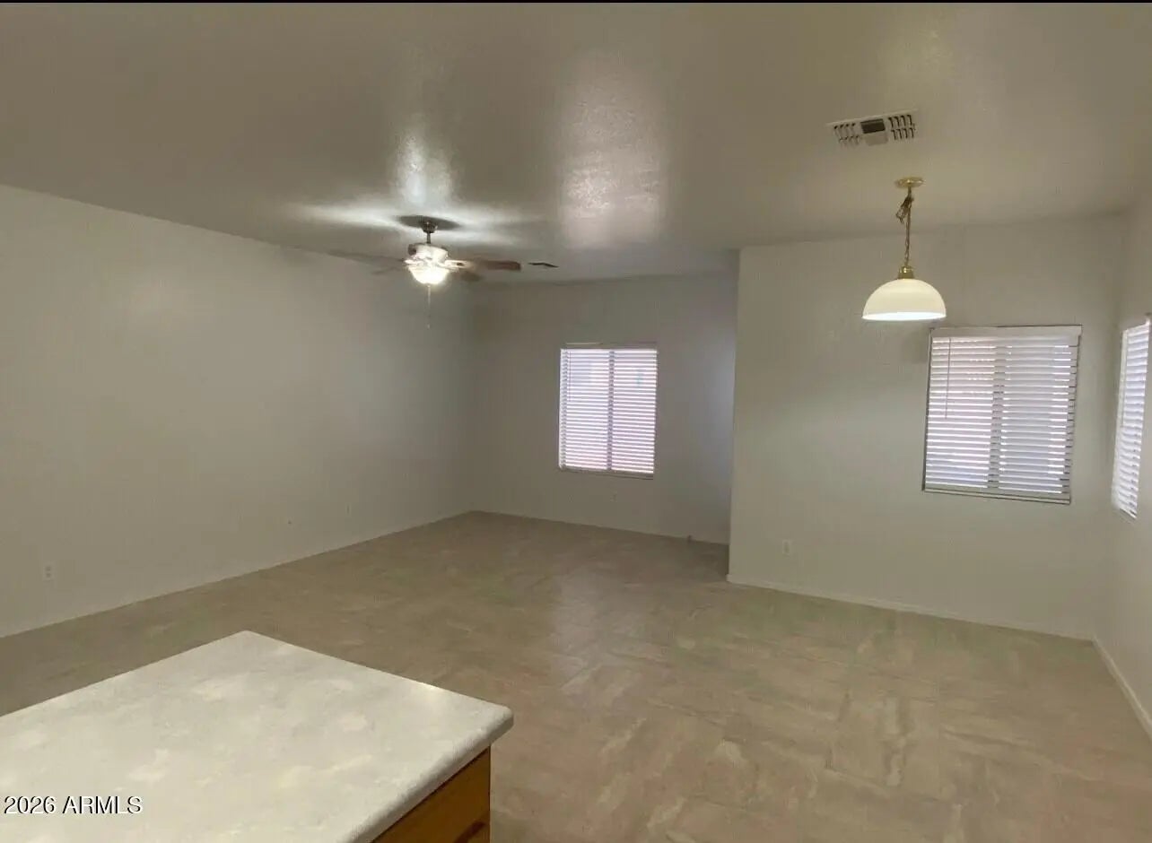 Corner lot - Move-in ready 4 beds, 2 baths, 2 car garage with no HOA! Open-concept layout with TILE flooring throughout the home! New interior & exterior paint! Large great room ready for hosting! Low-maintenance desert landscape front & back yards. Perfect starter home or investment home that's ready for you!
