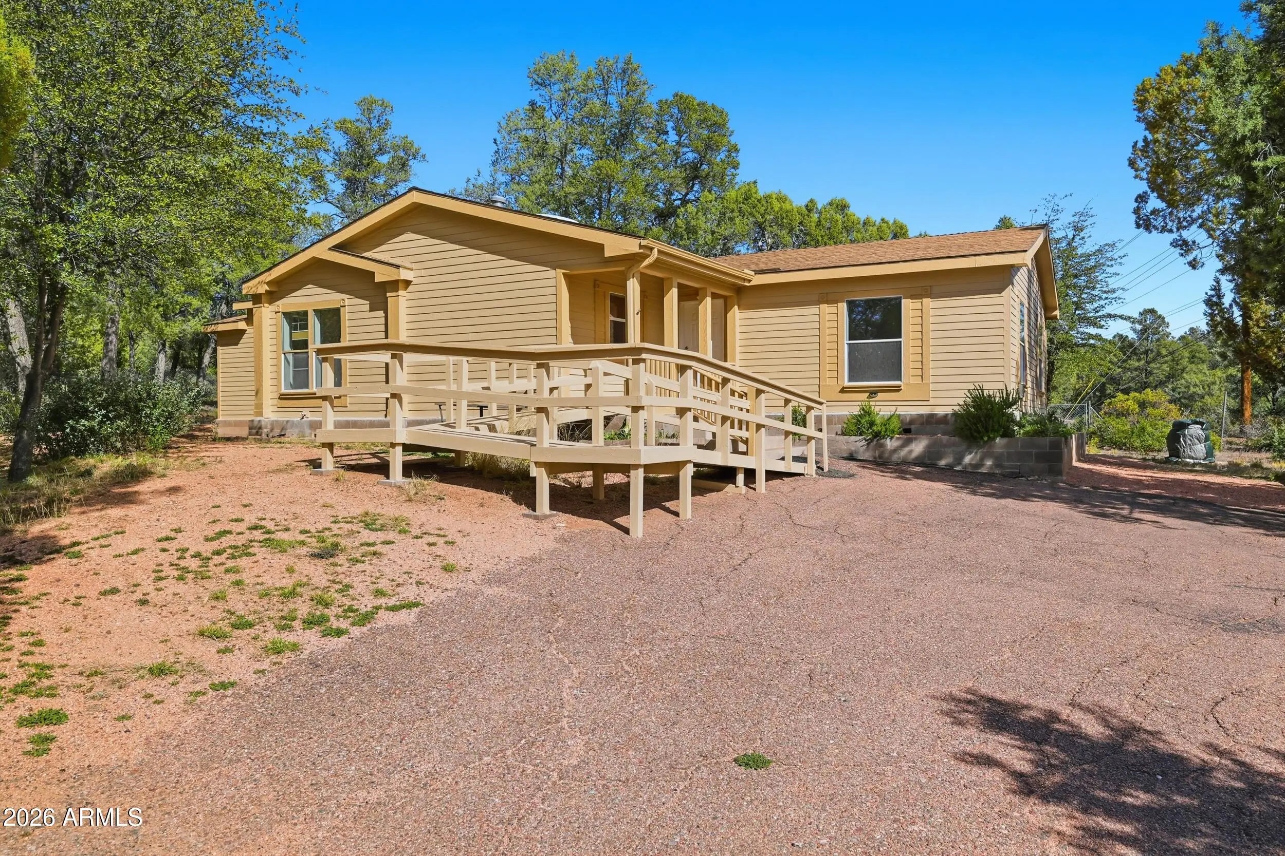 DONT MISS THE 1 ACRE LOT THAT BACKS TO THE NATIONAL FOREST. Make this great home your full time home or weekend retreat. This home offers 3 bedrooms and 3 bathrooms, plenty of room for guests. The 2574 sq ft also offers two dining areas and two living areas, so much potential for office, game area and more with this open floor plan. Living room has large windows that face the forest to watch the wildlife come in. Home is on a private well and septic , no monthly bills. PLENTY of room on the property to build a garage, workshop, guest bunkhouse or more. NO NOA on this desirable subdivisions, get the privacy and seclusion you want , but have the option to have your RV, toys, and horses right here. Walk out the back gate and you are on USNF land, great for hiking, biking, trails and more. Home has been maintained and has some fresh updates, interior/exterior paint. Has handicap accessible ramp for front entrance. Lot is fenced in with electric front drive gate. Don't miss out.