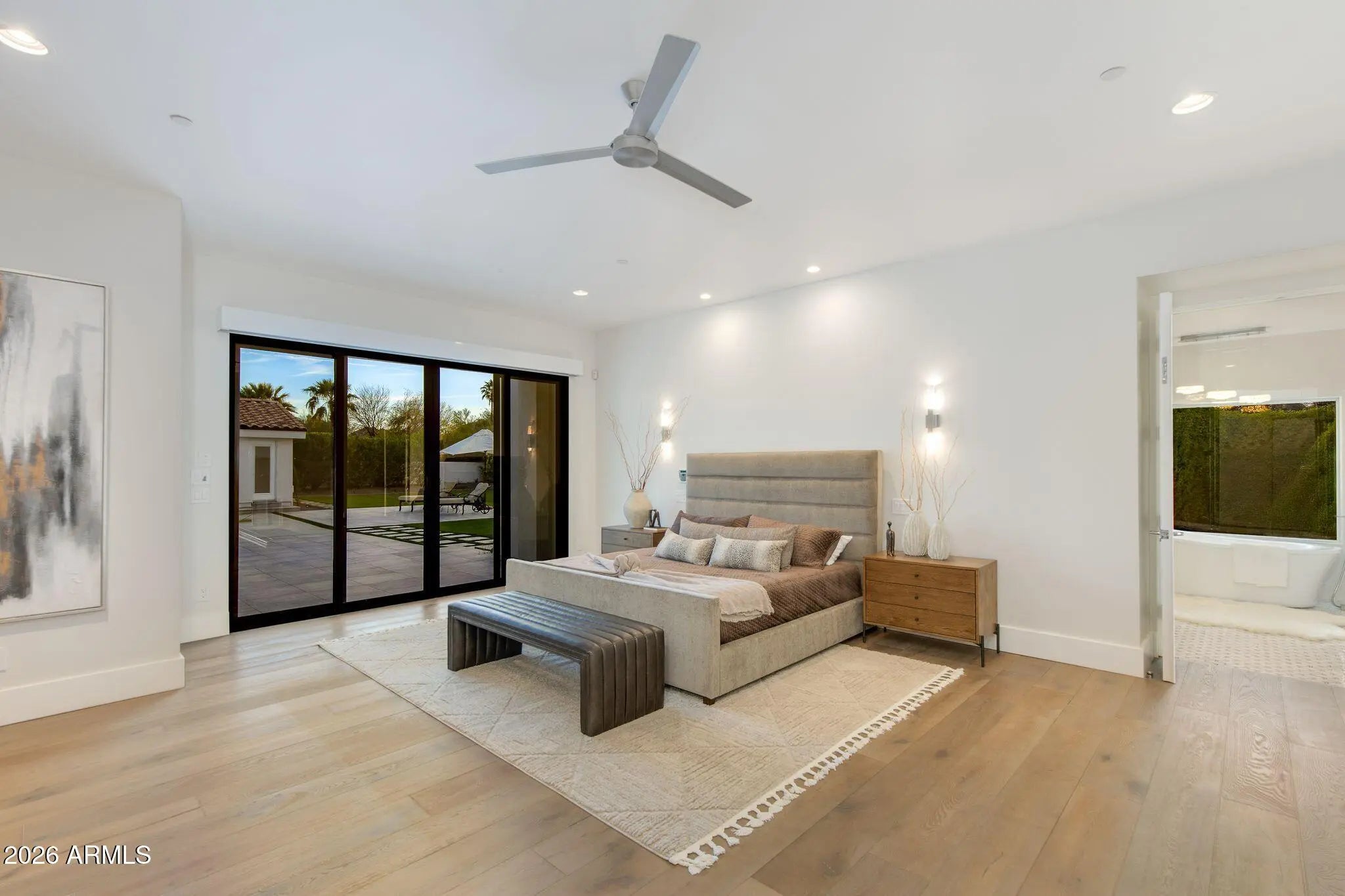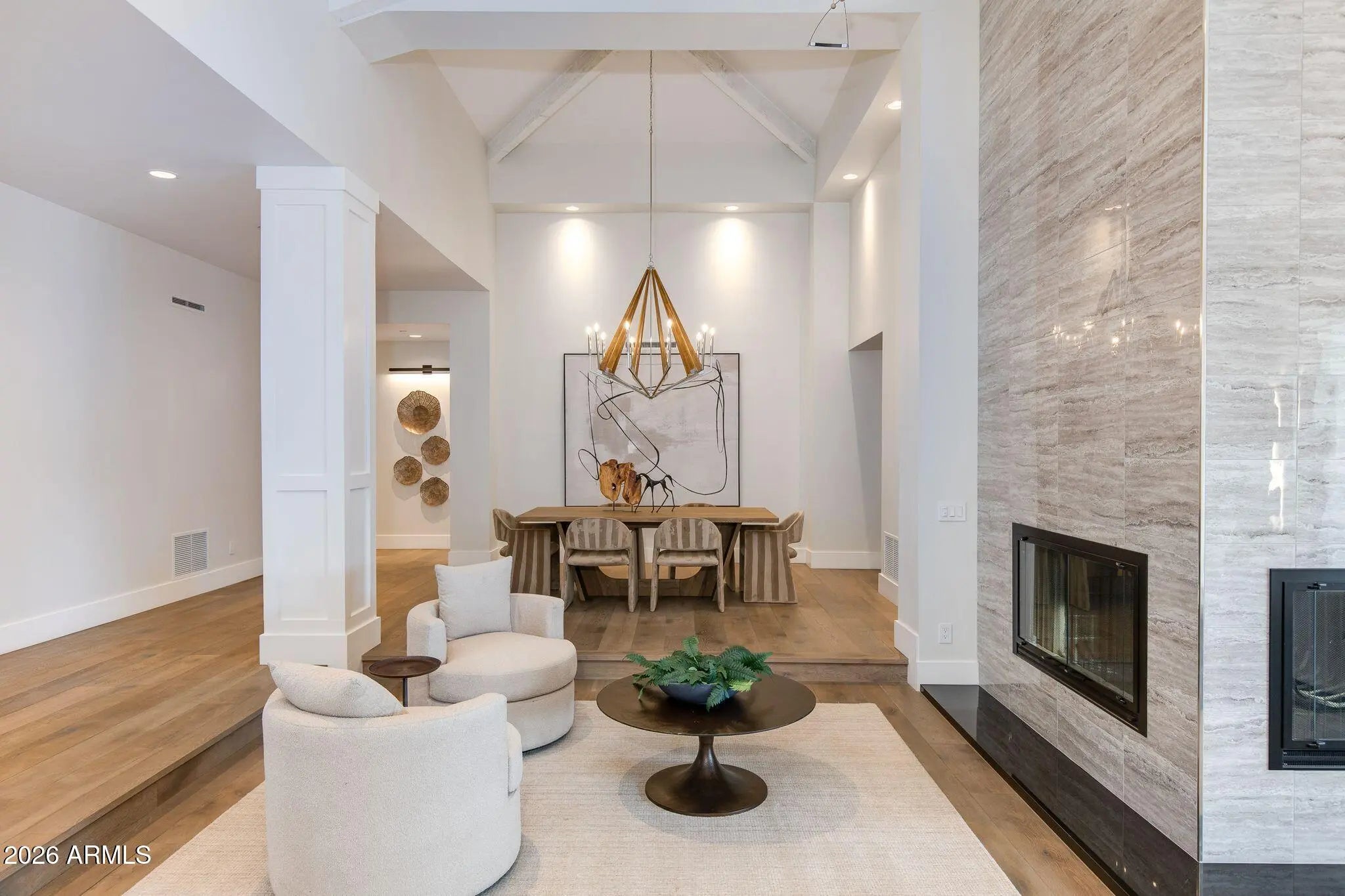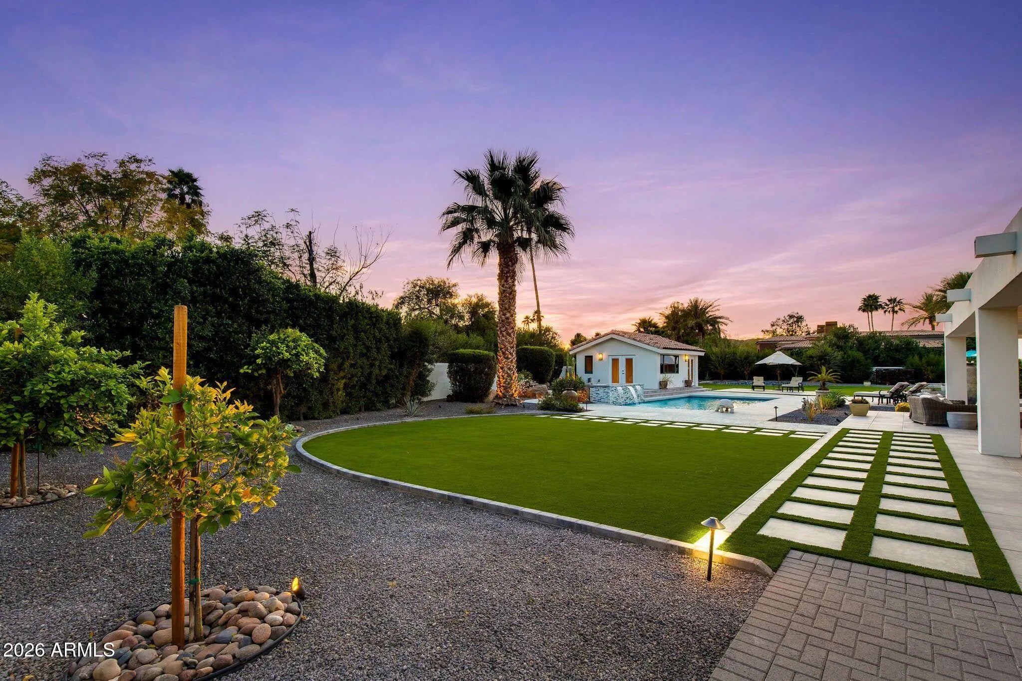 Located on a quiet and charming street, this move-in-ready residence blends exceptional quality and thoughtful design with Arizona's signature indoor-outdoor lifestyle. Originally reimagined in a comprehensive 2018 remodel, the home has been further elevated with quality upgrades, reflecting a meticulous attention to detail throughout. Just beyond the entry, a grand living room with soaring ceilings and a dramatic double-sided fireplace opens seamlessly to the outdoors, creating the perfect setting for both intimate evenings and entertaining. The beautifully appointed kitchen features quality custom cabinetry and a center island with seating, serving as both a functional workspace and natural gathering point. The primary wing offers a bedroom or flex space in addition to the luxurious primary suite. The primary bathroom is a timeless sanctuary featuring marble countertops, a freestanding tub, and two oversized walk-in closets. In the secondary wing, two well-appointed bedrooms and a beautifully designed powder room provide comfort for family or guests. Beyond the main house, a versatile detached casita with its own bathroom provides the ideal footprint for a private guest retreat, executive home office, fitness studio or creative space. The lush backyard is a destination in itself, centered around an oversized pool and spa complemented by an accent fireplace. Whether you are enjoying a quite evening or hosting a sunset soirée, this home offers a desired lifestyle curated for comfort and effortless desert living.