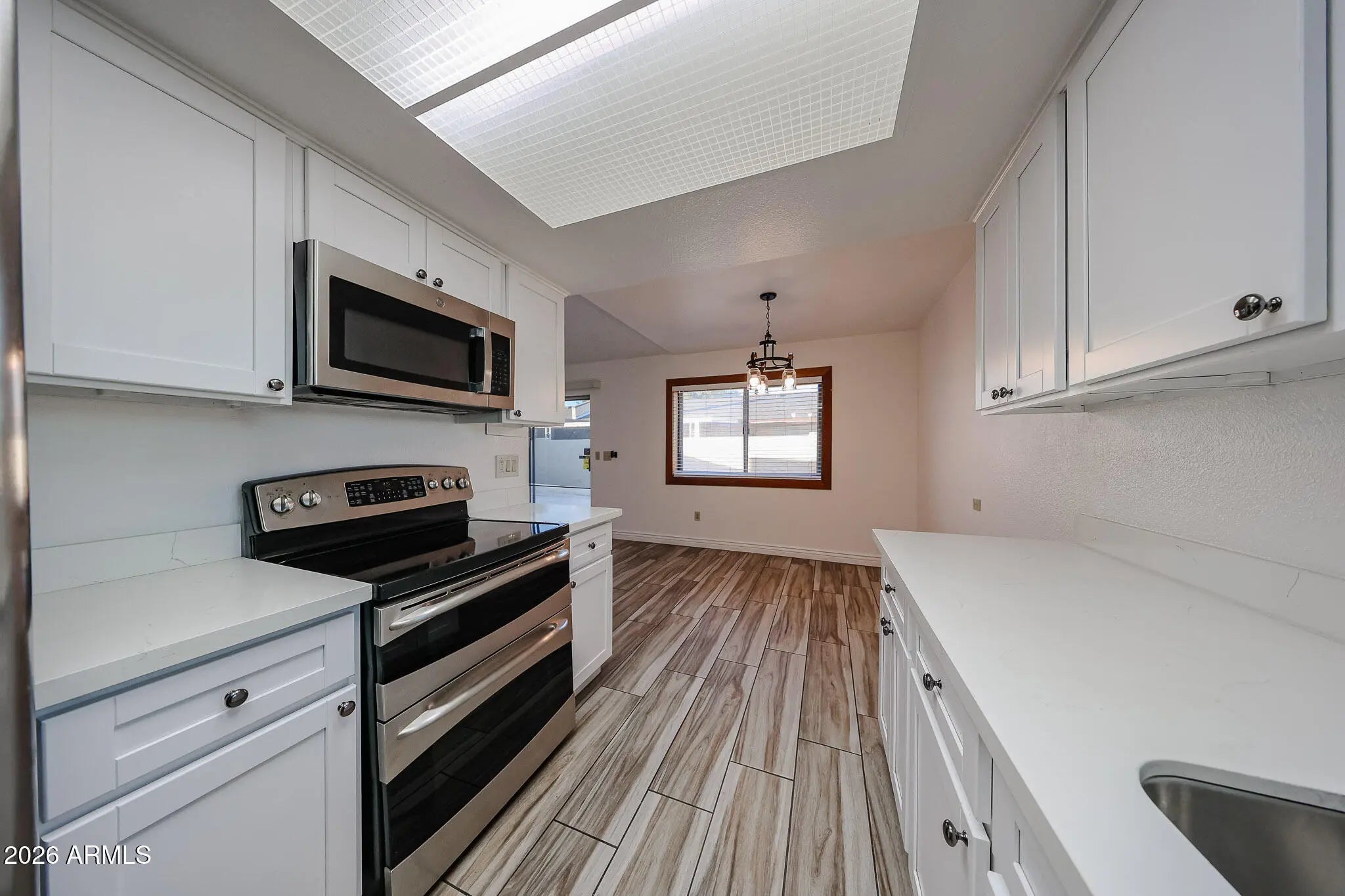 Fully remodeled 2 bed 1.75 bath townhome with new roof & private backyard in a quiet & well maintained community in the heart of Phoenix! Near GCU, next door to elementary school, & proximate to freeway access. End unit next to a large grassy field with bbq grill & community pool! Interior has been fully remodeled - home features: New roof, fresh interior paint, central HVAC, two-way fireplace (serving living room & master), white shaker cabinets & quartz countertops, stainless steel appliances, wood plank tile floors throughout, his/hers closets in master bedroom, faux wood window blinds in every room. Large storage shed out back and 2 car covered carport parking out front.