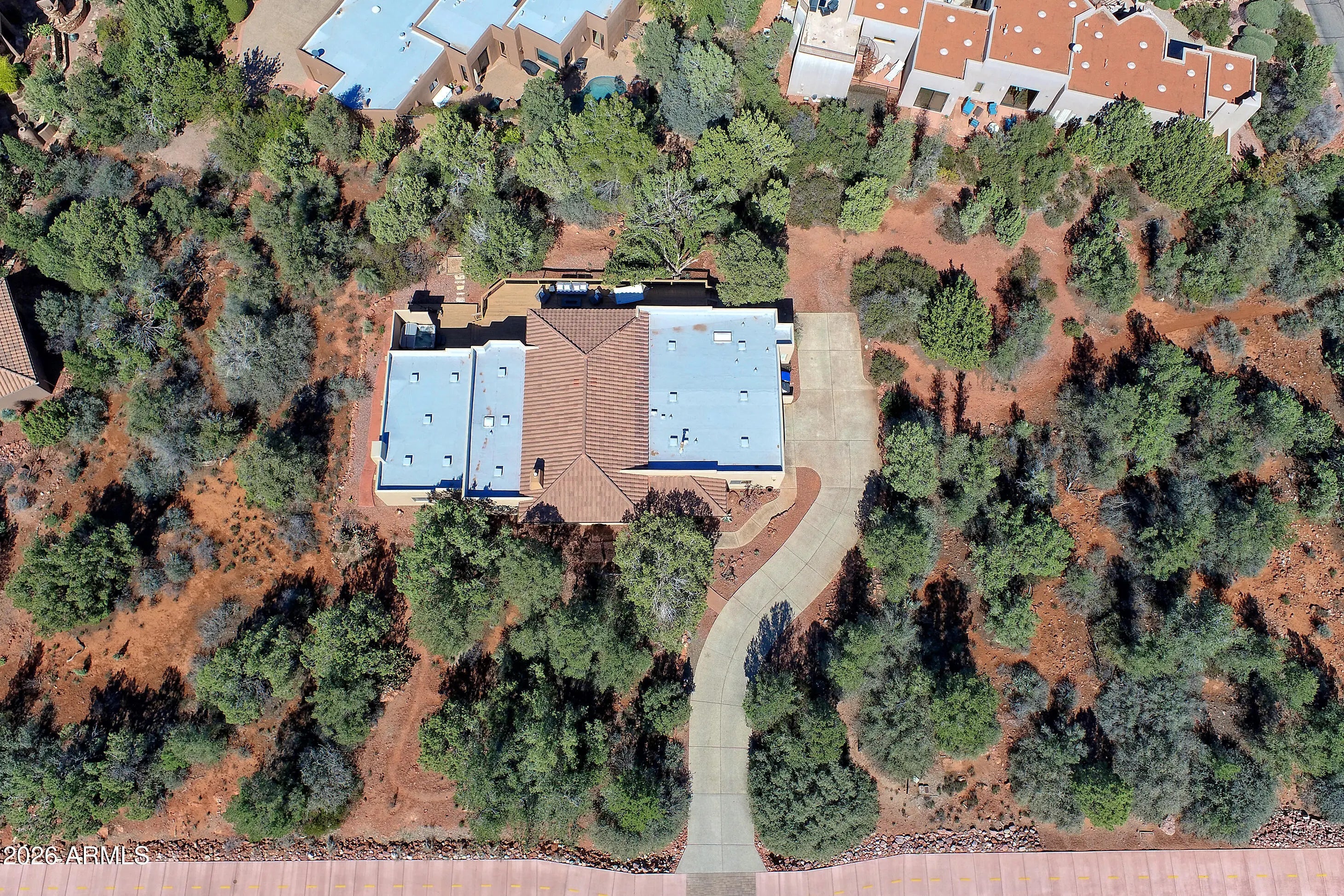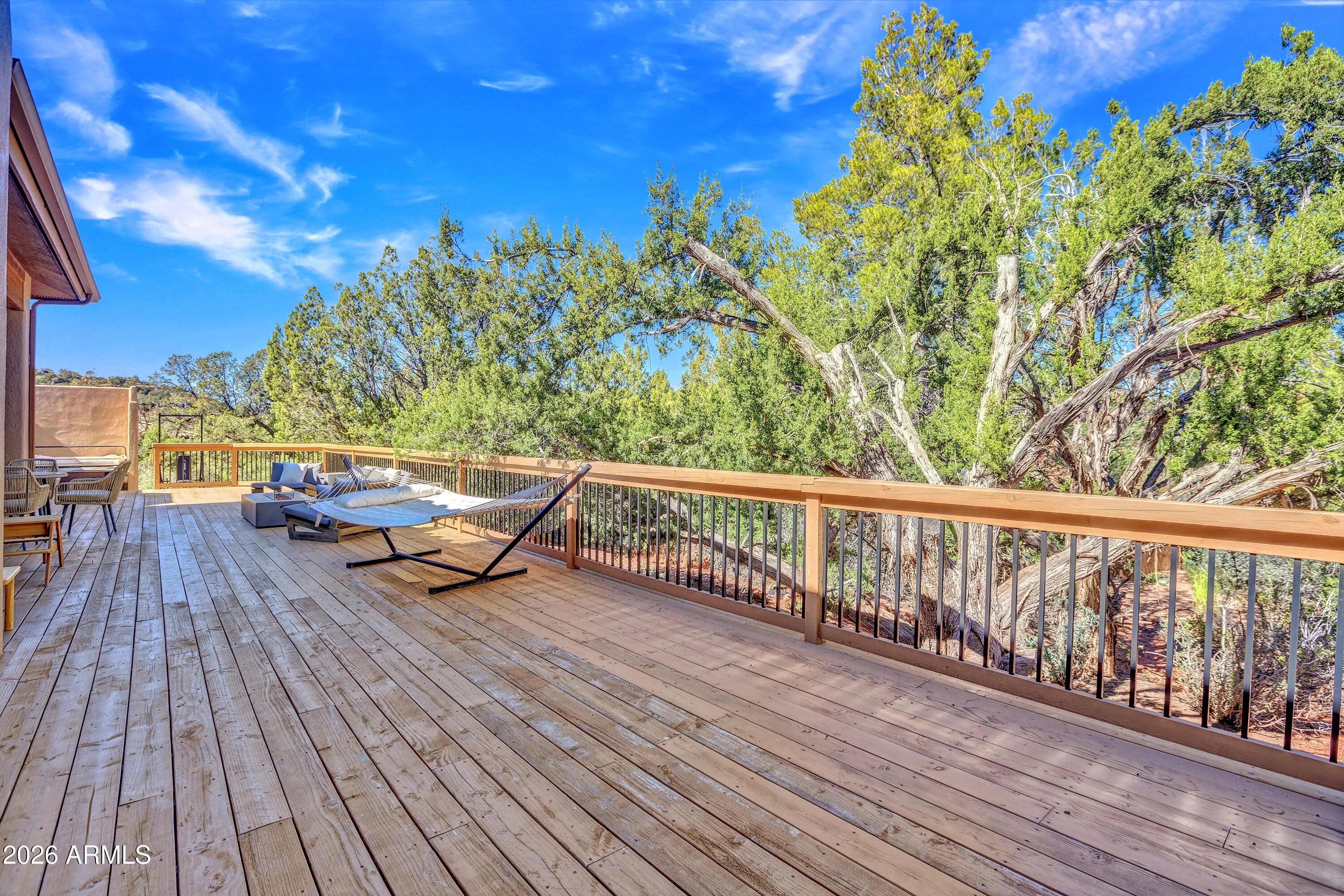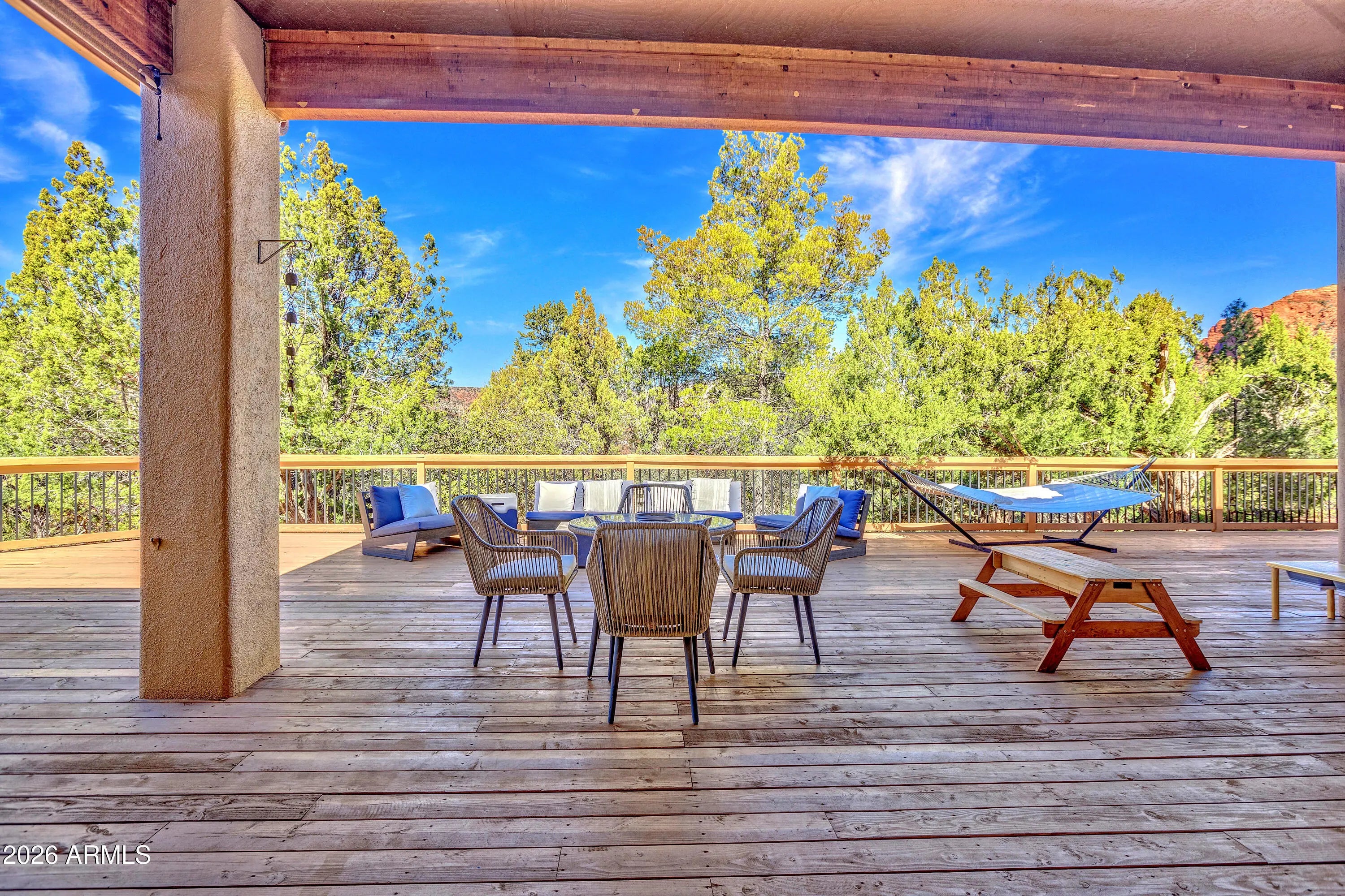 Elephant Rock. Not a peek. Not a sliver. A full-frame, red-rock backdrop from your own massive outdoor deck complete with hot tub, sunset glow, & enough space to host everyone! This is single-level Sedona living done right. The main residence offers 3 bedrooms and 3 baths, all on one level. Easy flow. No stairs. Clean lines. Open living spaces that lead directly to that oversized deck because in Sedona, the view is the real square footage. Mornings start with coffee and red rock light.Evenings end in the hot tub under desert stars. And then there's the bonus. An attached apartment with its own entrance, kitchenette, living room, bedroom, and bath. Ideal for long-term guests, caregiver, or a long term tenant who helps offset your ownership costs. Live comfortably in the main home & let the apartment work for you. Smart, flexible, future-proof. Located in Mystic Hills, you also gain access to the community rec center, pool and spa, tennis, pickleball, and fitness room. Plus you're steps to some of Sedona's best hiking and mountain biking trails--because the lifestyle isn't optional here, it's built in.Yes, the home sits on Chapel Road.No, it doesn't feel like it.Set back off the road and surrounded by mature trees, it offers privacy that surprises you the moment you arrive.Super location. One-level living. Income flexibility.Massive deck with a hot tub framing Elephant Rock like a private painting. Sedona real estate rewards clarity and smart positioning.This one checks both boxes. Mystic Hills is a 6 month minimum. Note: Brand new roof, exterior paint of home just done, 2 year old deck addition! Current tenant pays $4500/ mth and would love to stay. Seller will not warrant spa jets at primary bath.