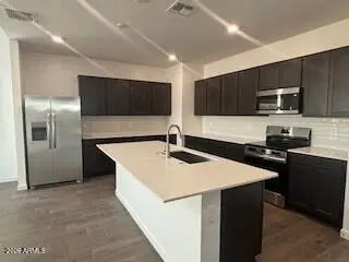 Ready Now!! Walking Distance to K-12 Schools | Minutes from Hospital, Shopping & Freeway. Coming Soon and just an exit away from Verrado Way, where you will find an open mall with a movie theater, eatery, retail and more. This two-story Contemporary Style home offers 5 bedrooms, 3 baths, and a 2-car garage. 8 ft Double Gates. Enjoy a side covered patio plus covered backyard patio, perfect for entertaining. Inside you will find stainless steel appliances, quartz countertops, stylish backsplash, plank tile flooring, cozy carpet, and window coverings throughout.
