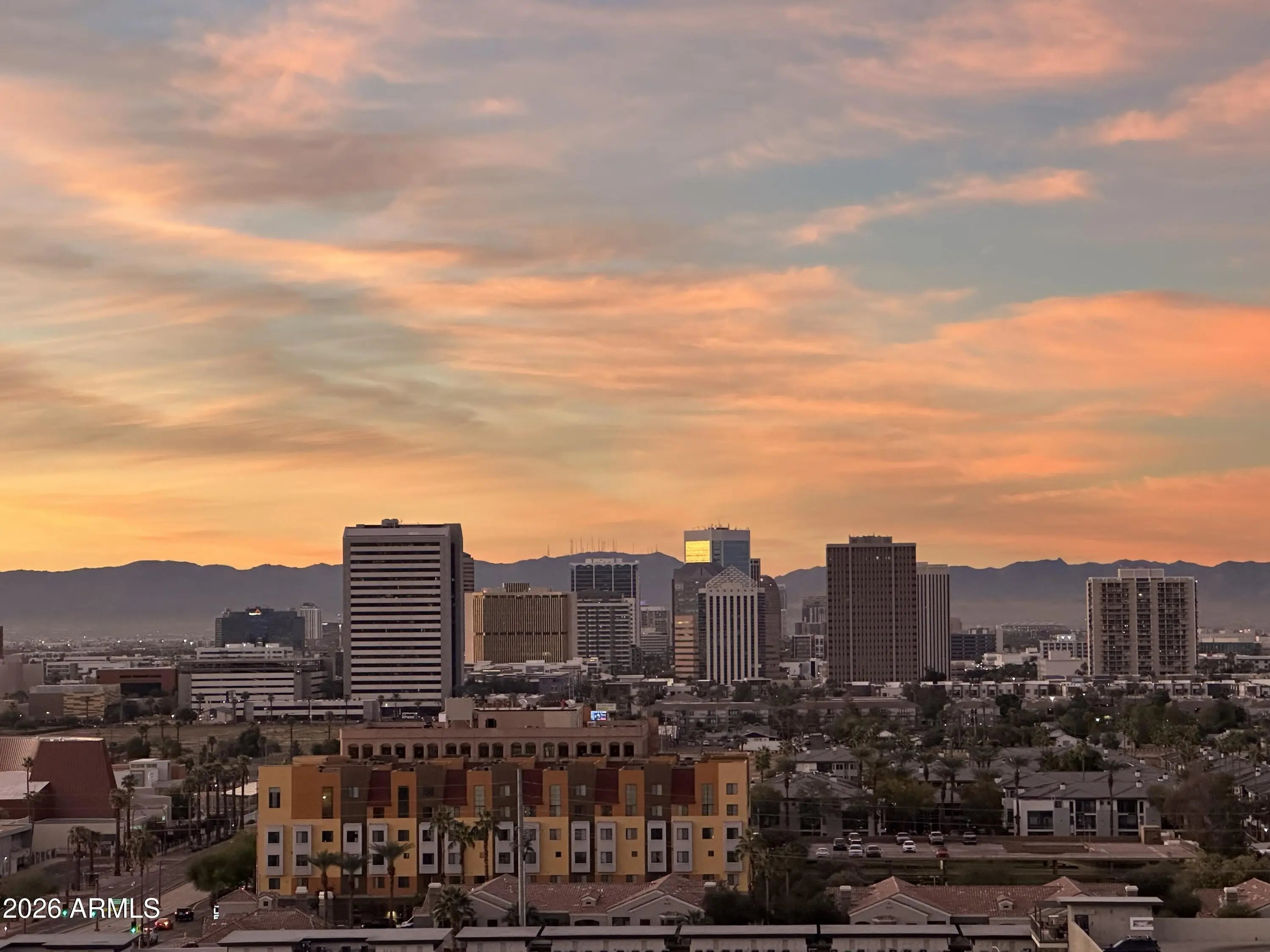 Rare find with FHA financing, investor friendly unit w/2 parking spots (1 deeded on 1st floor) Arguably the best views in PHX for under $200K, this 14th-floor residence captures sweeping views of PHX, Tempe, airport, S. Mountain, Estrella, etc. through walls of glass that flood the space with natural light. Partially furnished and newly renovated with brand new shower, vanity, fresh paint, live edge butcher block counters, subway backsplash, lamin floors, crown moulding, appliances & 4in baseboards . The balcony spans the entire condo and is accessible from both the living room and bedroom--perfect for sunrise coffee or sunset city lights. Recent upgrades include reinforced balcony and rooftop patio, chillers, elevators and water heaters. Owner is licensed AZ real estate agent.