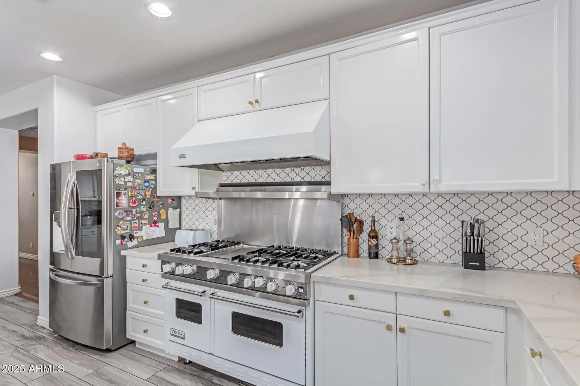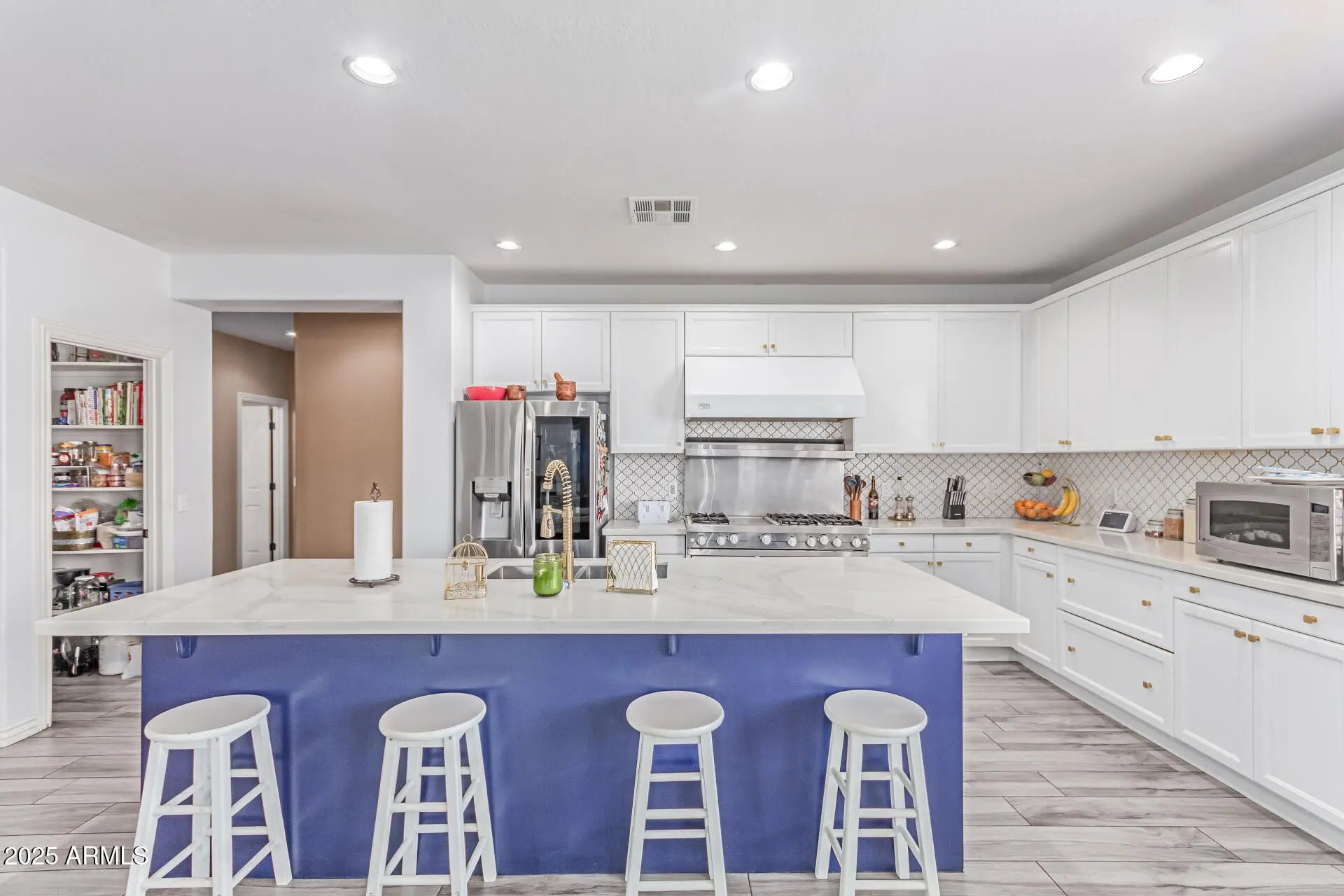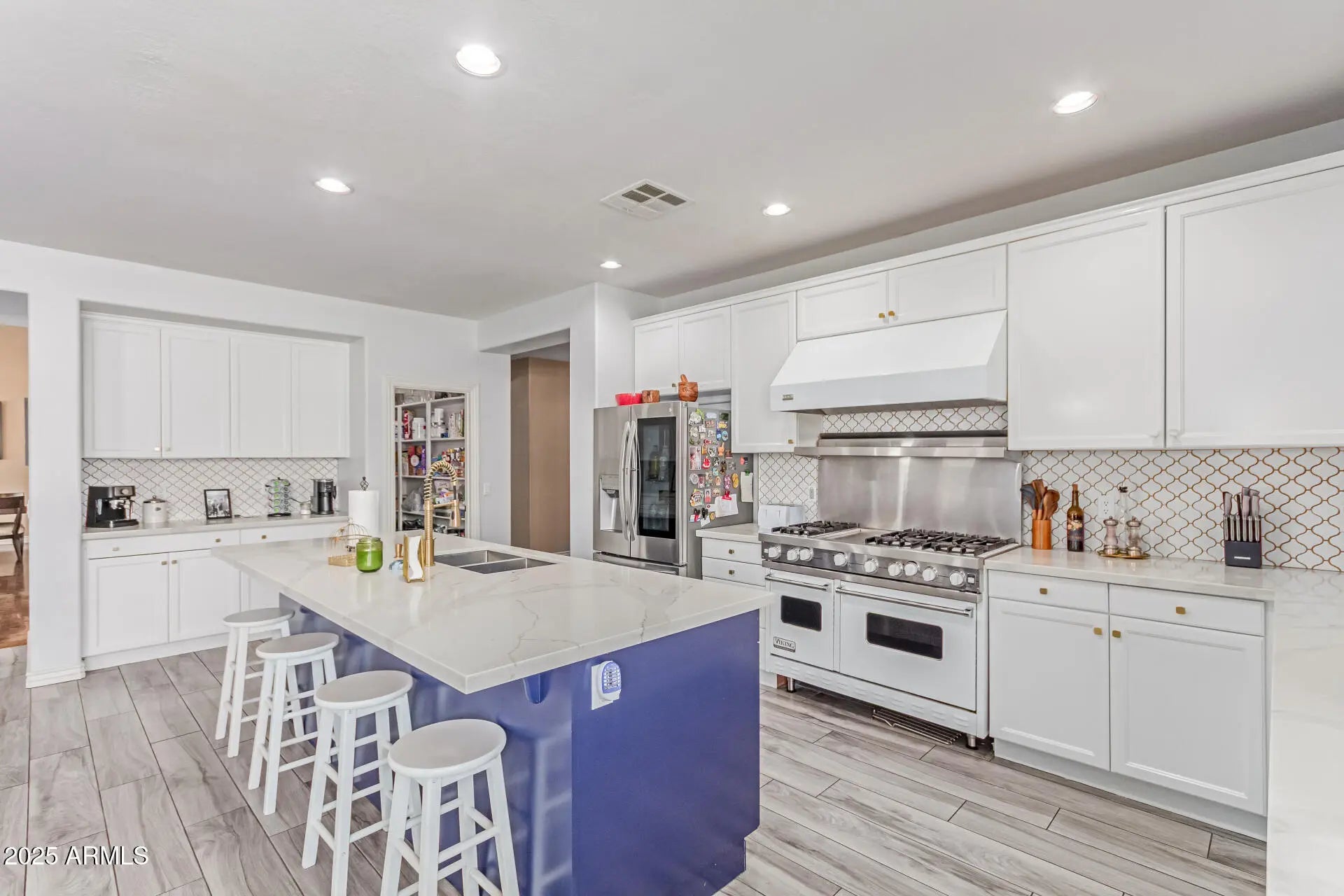 Priced BELOW appraised value for instant equity is this ideal property for multigenerational living or grand entertaining. This prime Litchfield Park location is near top-rated schools, shopping, dining & entertainment. This spacious 7-bed, 4-bath home offers over 5,200 sq ft on a .42-acre lot-- Features include a downstairs primary suite with dual sinks, private toilet room & his-and-hers walk-in closets, a second guest bedroom on first floor, multiple living areas, upstairs office, flex space for game room or gym with plumbing rough ins for wet bar or kitchenette install. The large kitchen boasts gourmet features like a Viking stove, quartz counters & ample cabinetry. Warm wood & tile floors throughout. Enjoy a lush backyard retreat with pool, spa, covered patio & 3-car garage.