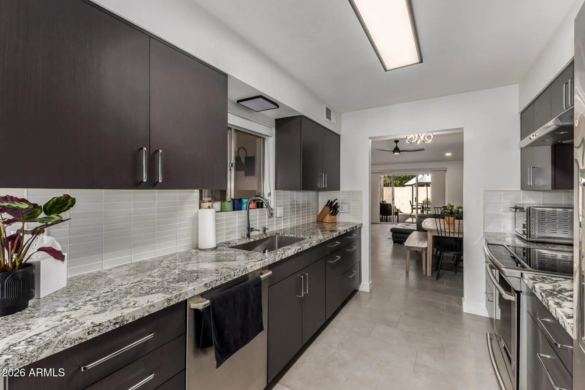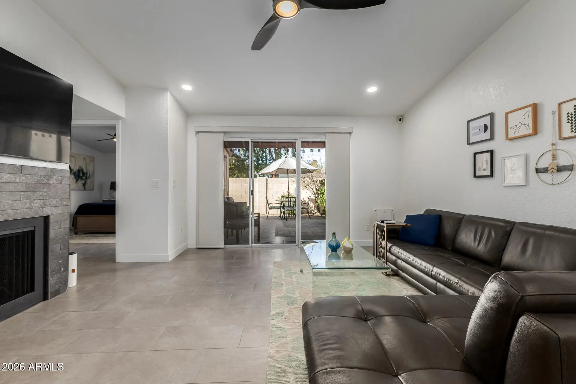 Don't miss this Newly Remodeled True 3 bed 2 bath Modern Charmer. Quartz Countertops & Tile Floors throughout. Great Room & Primary have Vaulted Ceilings. Kitchen boasts Stainless Electrolux Appliances including an Induction Range and Pullout drawers in the Cabinets. Primary Bath has a Tiled Walk-in Shower and a Large Walk-in Closet. Backyard is fully remodled with Pavers, Turf & Lush Landscaping of Plants and Trees and a Shed for additional Storage. Lots of Privacy as this is an end unit with no one behind.