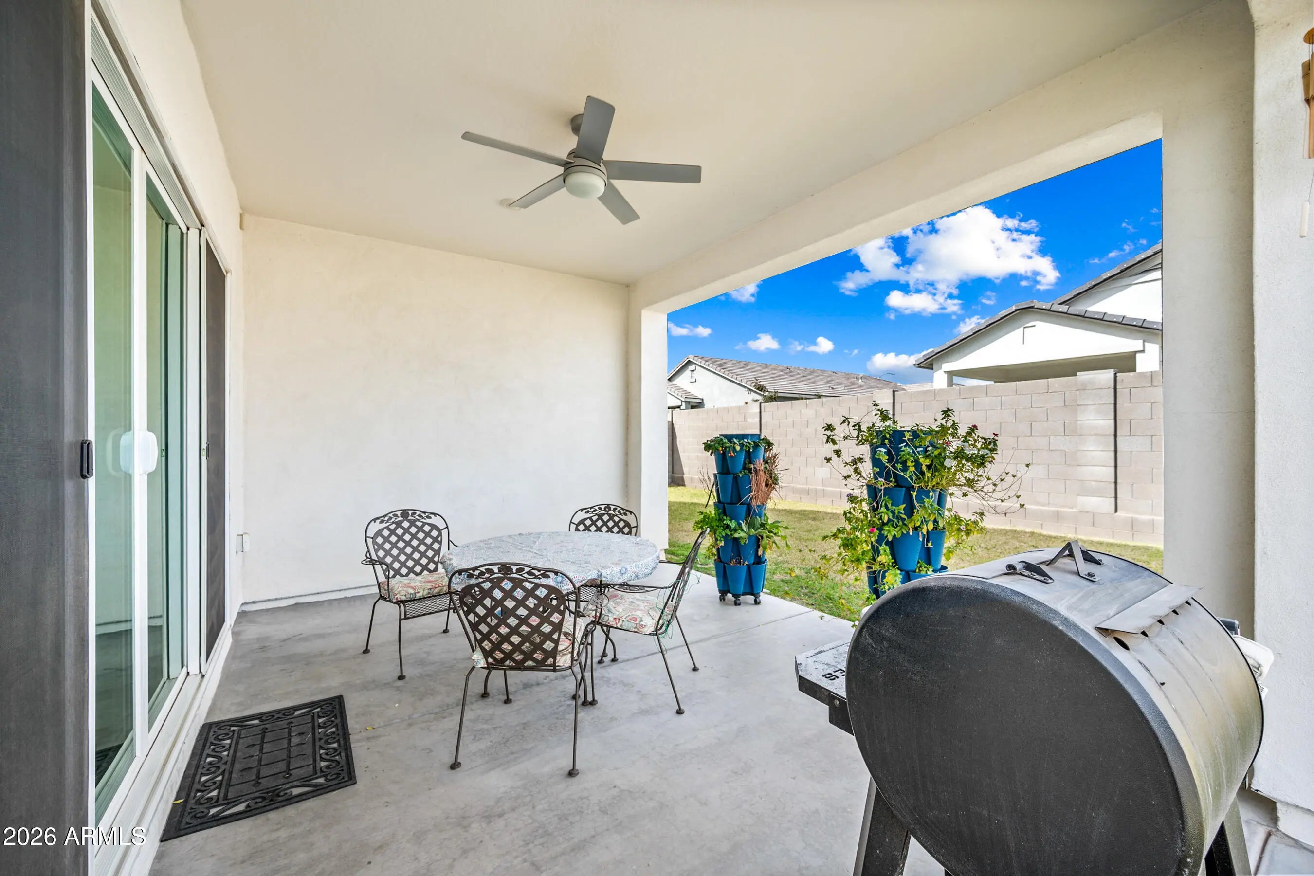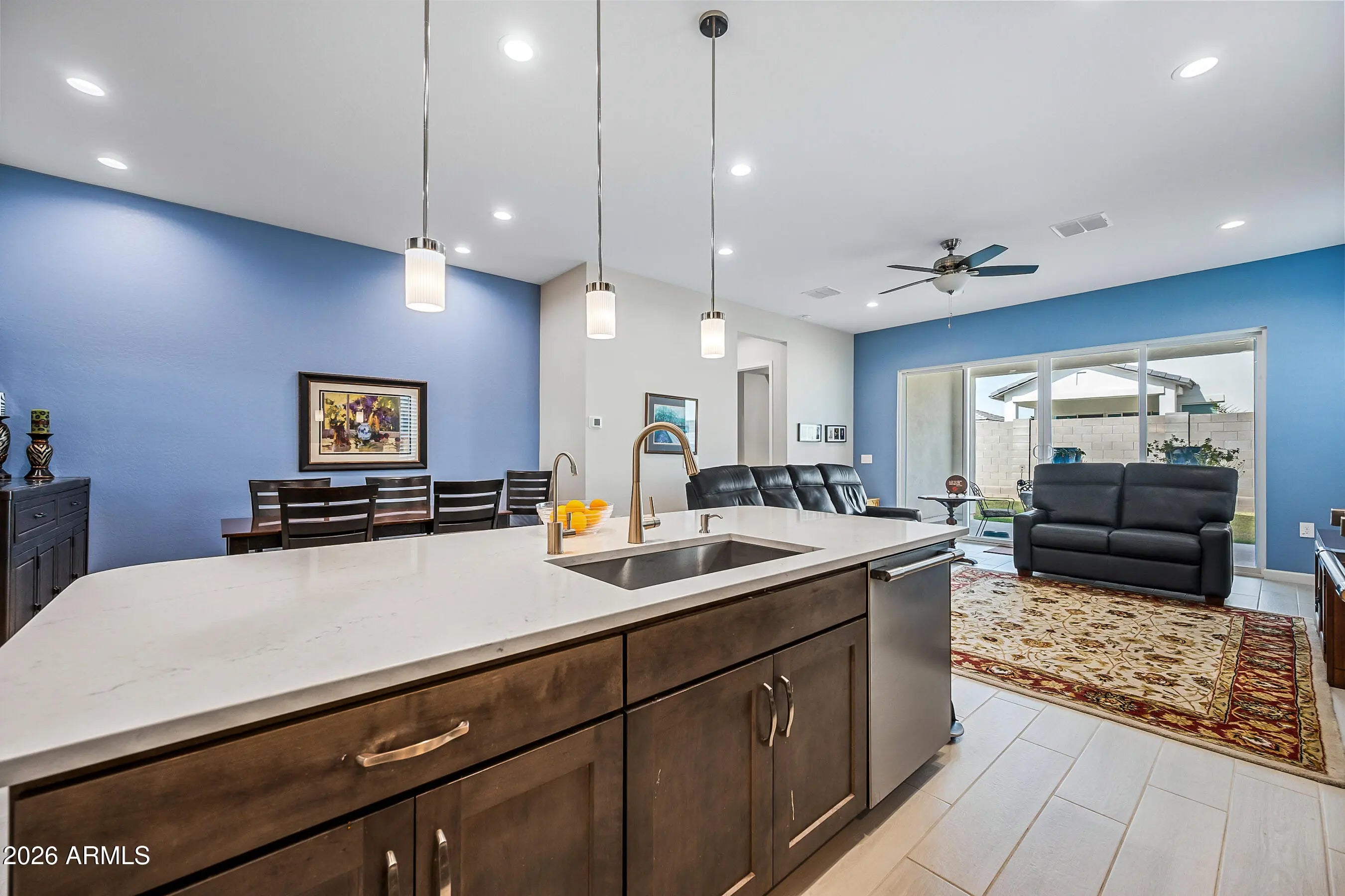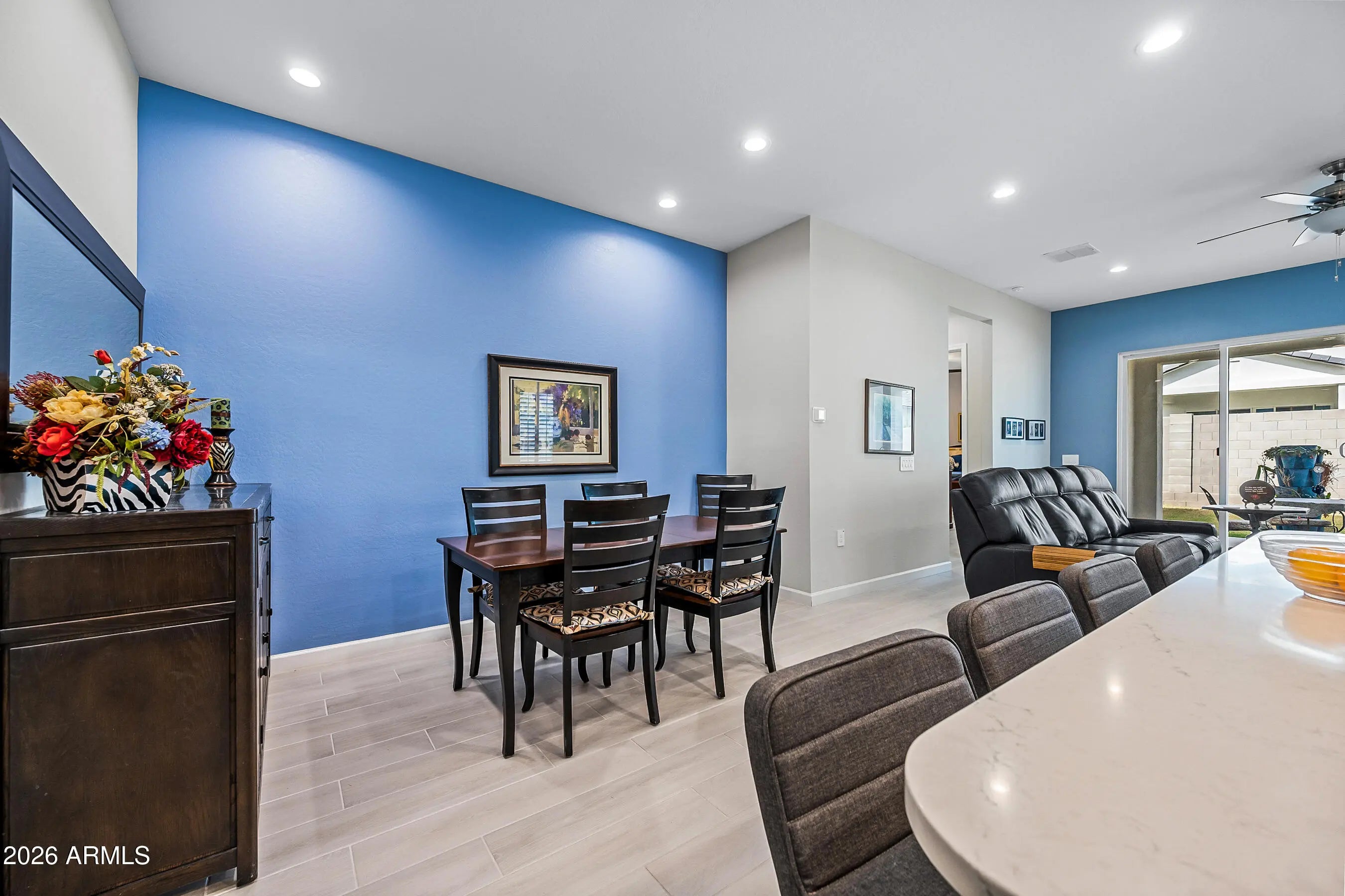 Welcome to this modern Dr Horton home for sale in the desirable Camino a Lago community in Peoria offering 4 bedrooms, 3 bathrooms, and 2,120 square feet of thoughtfully designed living space. Ideally located across from a neighborhood desert garden, this home combines privacy, views, and low-maintenance living. This single-story Peoria house features all tile flooring, ceiling fans throughout, and a spacious open-concept great room, perfect for entertaining or everyday comfort. The gourmet kitchen includes quartz countertops, a cooktop stove, wall oven, and a sleek stainless steel range hood--all seamlessly blending style and function for the home chef. Washer/Dryer and Upgraded refrigerator included. Enjoy true Arizona indoor-outdoor living with a stunning 4-panel sliding glass door that opens to a covered patio perfect for relaxing or dining outdoors. Additional upgrades include attractive shutters, a garage with a sealed epoxy floor, and a clean, modern design throughout. The primary shower is luxurious and spacious with a bench. Also, something to note is the stone elevation. Located near shopping, dining, and outdoor recreation, this move-in ready Peoria AZ home offers style, functionality, and a prime location. Don't miss this opportunity to own a modern home in Camino a Lago.