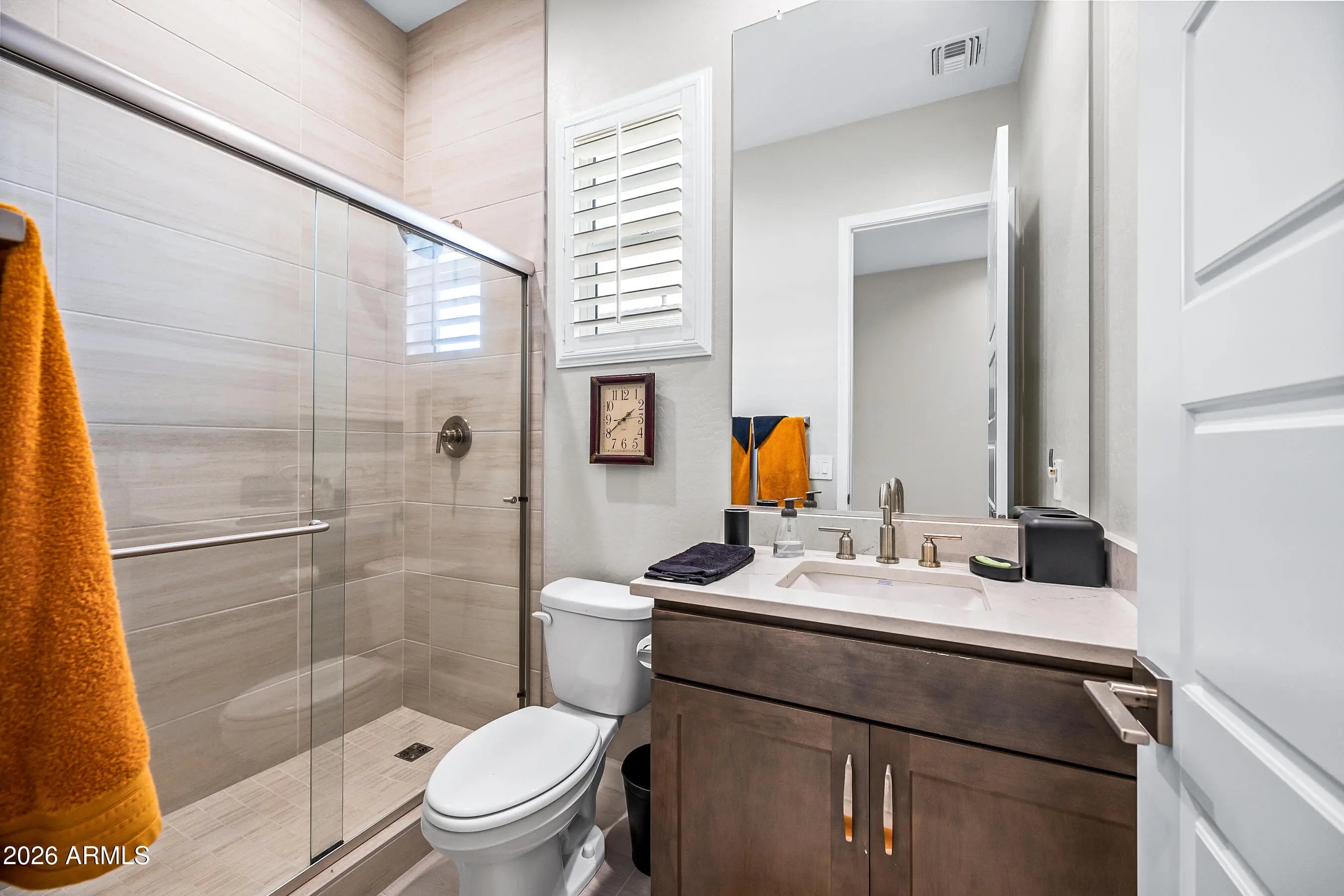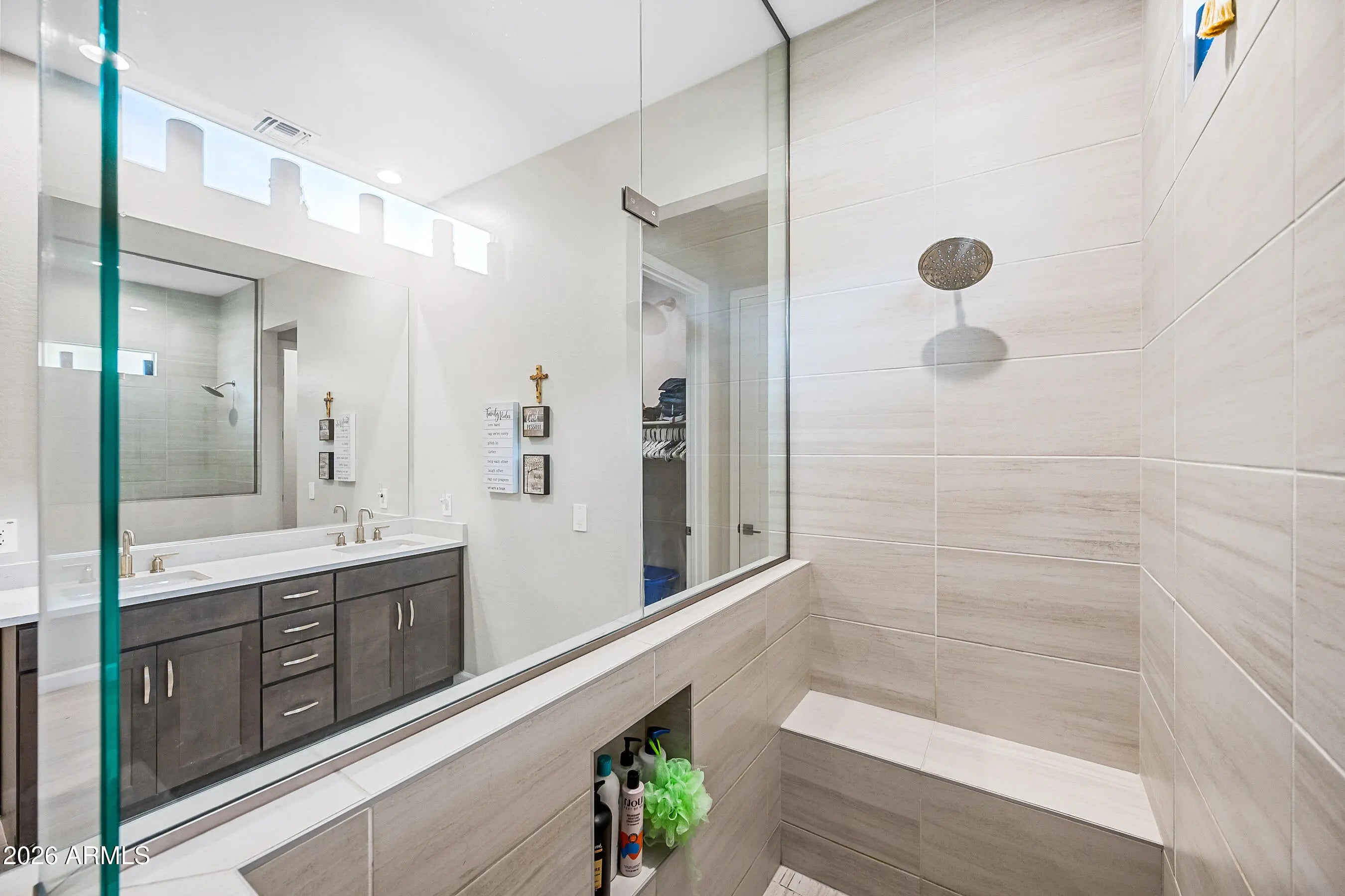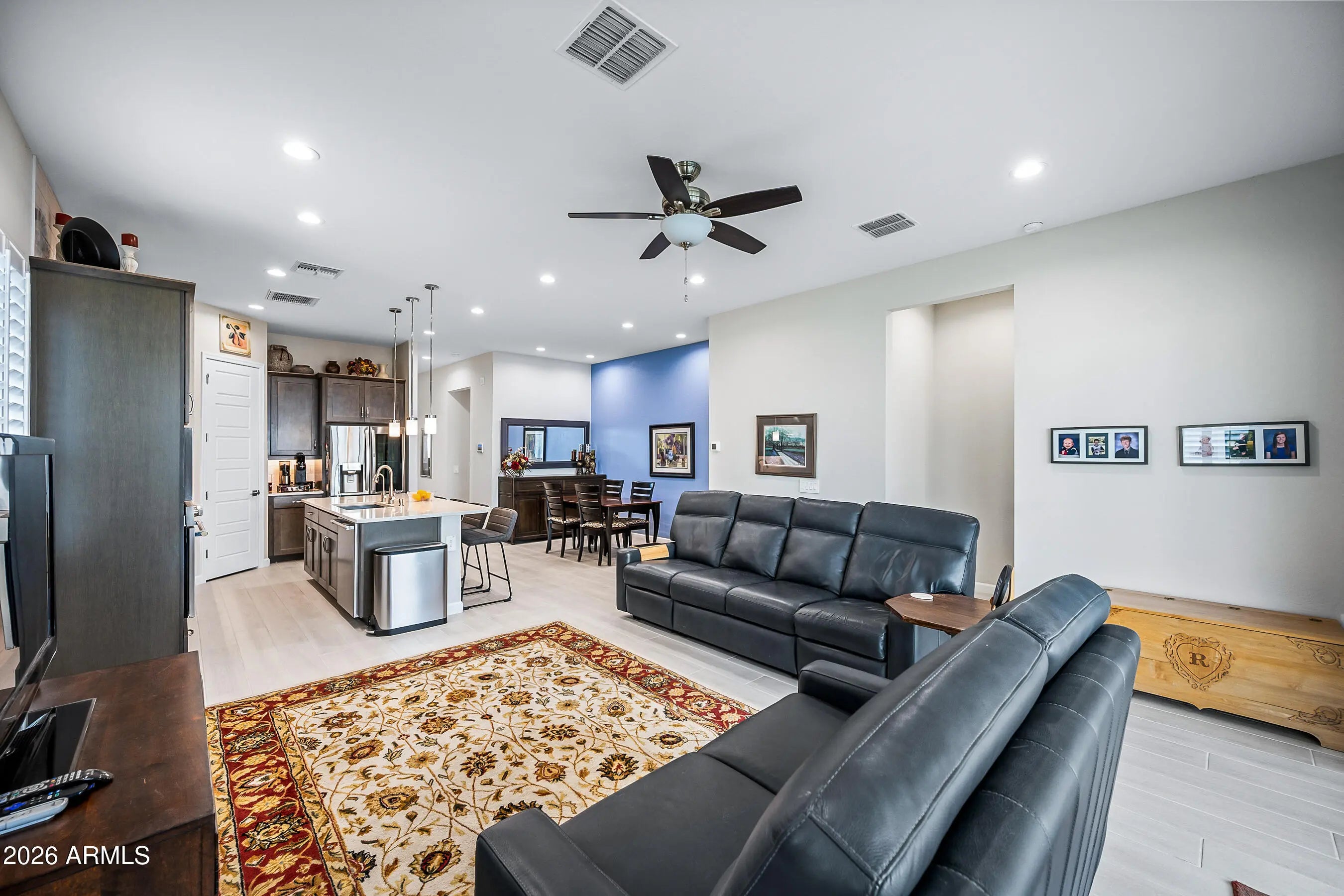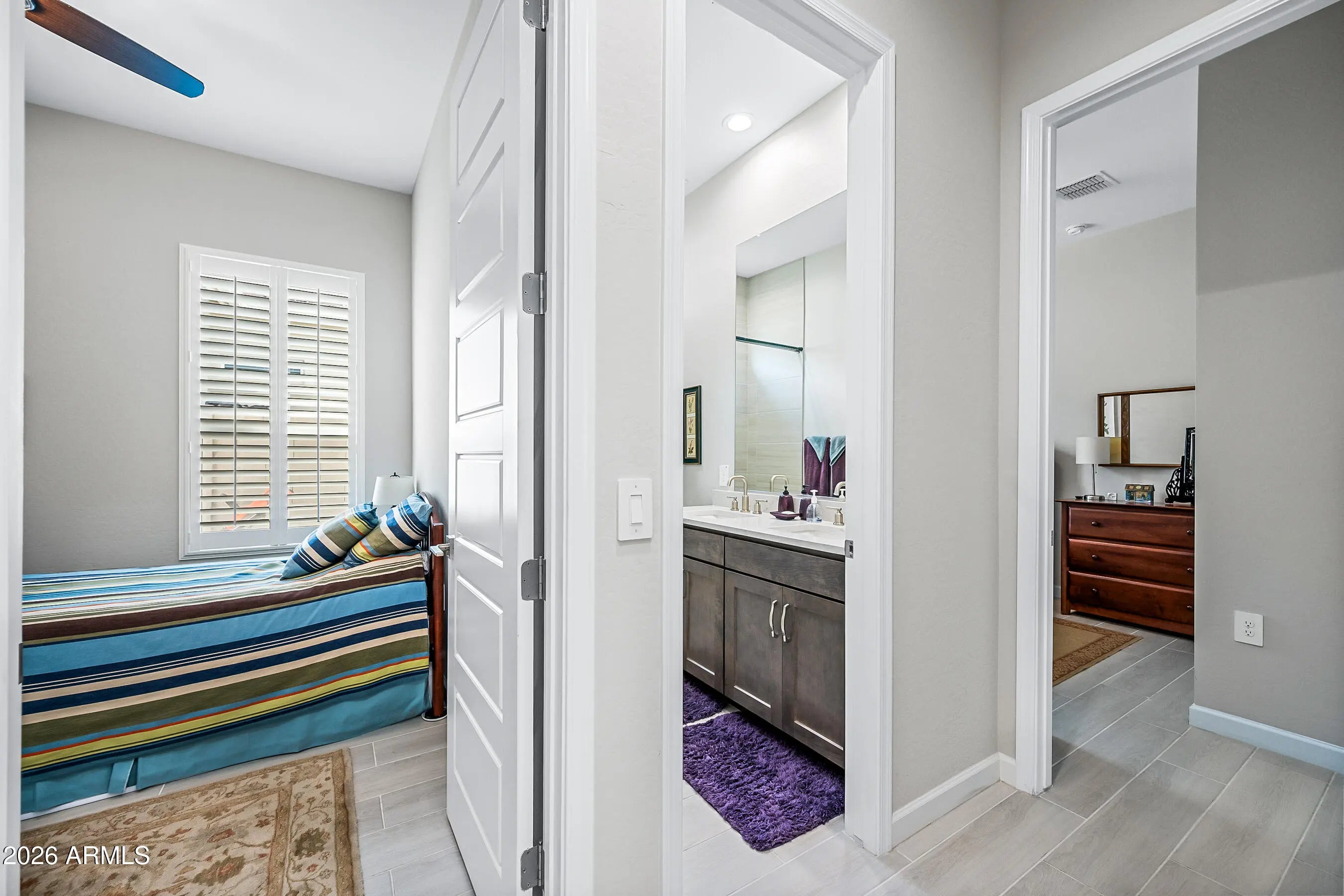 Welcome to this modern Dr Horton home for sale in the desirable Camino a Lago community in Peoria offering 4 bedrooms, 3 bathrooms, and 2,120 square feet of thoughtfully designed living space. Ideally located across from a neighborhood desert garden, this home combines privacy, views, and low-maintenance living. This single-story Peoria house features all tile flooring, ceiling fans throughout, and a spacious open-concept great room, perfect for entertaining or everyday comfort. The gourmet kitchen includes quartz countertops, a cooktop stove, wall oven, and a sleek stainless steel range hood--all seamlessly blending style and function for the home chef. Washer/Dryer and Upgraded refrigerator included. Enjoy true Arizona indoor-outdoor living with a stunning 4-panel sliding glass door that opens to a covered patio perfect for relaxing or dining outdoors. Additional upgrades include attractive shutters, a garage with a sealed epoxy floor, and a clean, modern design throughout. The primary shower is luxurious and spacious with a bench. Also, something to note is the stone elevation. Located near shopping, dining, and outdoor recreation, this move-in ready Peoria AZ home offers style, functionality, and a prime location. Don't miss this opportunity to own a modern home in Camino a Lago.