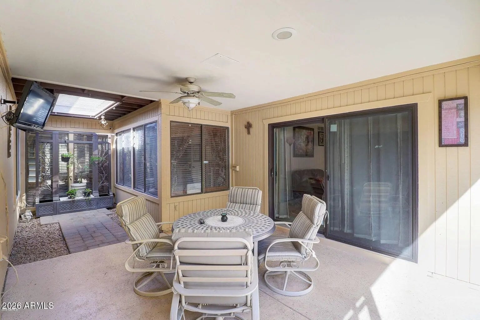 Discover the perfect Scottsdale location in this charming home nestled in the highly sought after Gainey Ranch and McCormick Ranch corridor. Surrounded by miles of scenic walking paths, world-class golf, premier shopping, and dining, this home offers the ultimate Arizona lifestyle. Built by renowned Pennington, this residence showcases classic Scottsdale architecture with a desirable south facing backyard complete with a pebble-tech diving pool-perfect for enjoying sunny desert days. The updated kitchen provides a great foundation, while the rest of the home offers an excellent opportunity to move in and personalize to your taste. The light and bright floorplan is thoughtfully designed around a central outdoor atrium, brining in abundant natural light while maintaining privacy and comfort throughout the home. The spacious primary suite features a flexible sitting area or office space, along with a spa-inspired bathroom complete with Steam room/shower. The family room, featuring a wet bar, us currently being utilized as a fourth bedroom, offering versatility to suit your needs. Homes in this desirable neighborhood that have been fully updated are selling for $1.5M+, making this an exceptional opportunity to create value in a premier Scottsdale location.