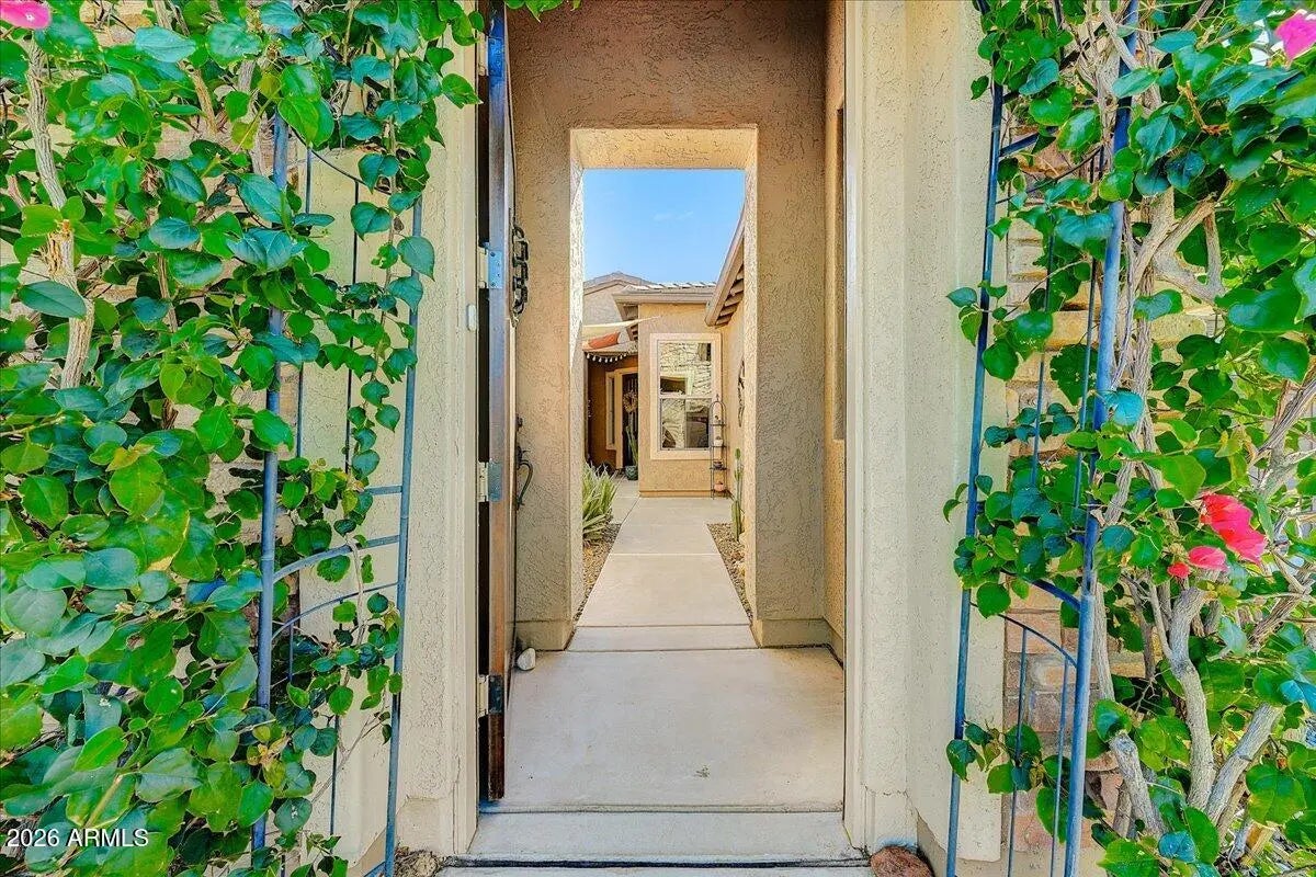 Behind the gates of Trilogy at Vistancia in beautiful Peoria, this stunning 3 Bedroom + Den home with a private detached casita has been meticulously reimagined and upgraded from 2023-2025, offering the perfect blend of luxury, comfort, and peace of mind. Your experience begins in the serene courtyard, where the tranquil water feature was enhanced with a new pump, valves, and fully permitted electrical updates through the City of Peoria, setting the tone for the thoughtful improvements throughout. Step inside to soaring tray ceilings, elegant custom tile flooring, and fresh interior and exterior paint that create a light, elevated feel. Plush new carpet was installed in both the primary and guest bedrooms, while the primary suite was further enhanced with new roller blinds, valences, and drapes; creating a true retreat. The heart of the home is built for gathering. The kitchen features granite countertops, an oversized island, abundant cabinetry, stainless steel appliances, and a brand-new 2025 gas range with steam clean. A reverse osmosis system (2025) ensures premium water quality, making everyday living feel just a little more elevated. The 2025 fully remodeled primary bathroom is nothing short of spectacular, showcasing solid wood soft-close cabinetry, quartz countertops, wood-look tile flooring, and a stunning Italian-tiled walk-in shower complete with bench seating, three niches, dual state-of-the-art shower heads, and custom glass enclosure. A steam-capable louvered window, oversized framed mirrors, new vanity lighting, and an upgraded water-saving elongated toilet complete this spa-like sanctuary. Beyond the cosmetic beauty, the major systems have been comprehensively updated for long-term confidence: " New HVAC systems (2024) -- two for the main home plus a dedicated split system for the casita " All air ducts professionally cleaned and treated " 30 solar panels installed (2024) on south and west-facing rooflines " Roof inspected with defective tiles and mortar replaced " 2025 replacement of irrigation and home water shut-off and pressure relief valves " Upgraded garage door hardware (2025) " Ongoing professional pest control and backyard mosquito mitigation system The landscaping has been beautifully refreshed with new sage, hibiscus, Texas Mountain Laurel, Star Jasmine, artichoke cactus, and lantanas, creating a lush yet low-maintenance outdoor setting. Relax under the extended covered patio overlooking the manicured backyard, or welcome guests into the fully equipped detached casita; ideal for visitors, multigenerational living, or a private office space. And just moments away, enjoy the resort-style amenities of the renowned Kiva Club -- featuring golf, pickleball, tennis, a resort pool and spa, fitness center, and a vibrant calendar of social events. This isn't just a home -- it's a meticulously upgraded, move-in-ready lifestyle opportunity in one of Peoria's most sought-after gated communities. Come experience it before someone else calls it theirs!