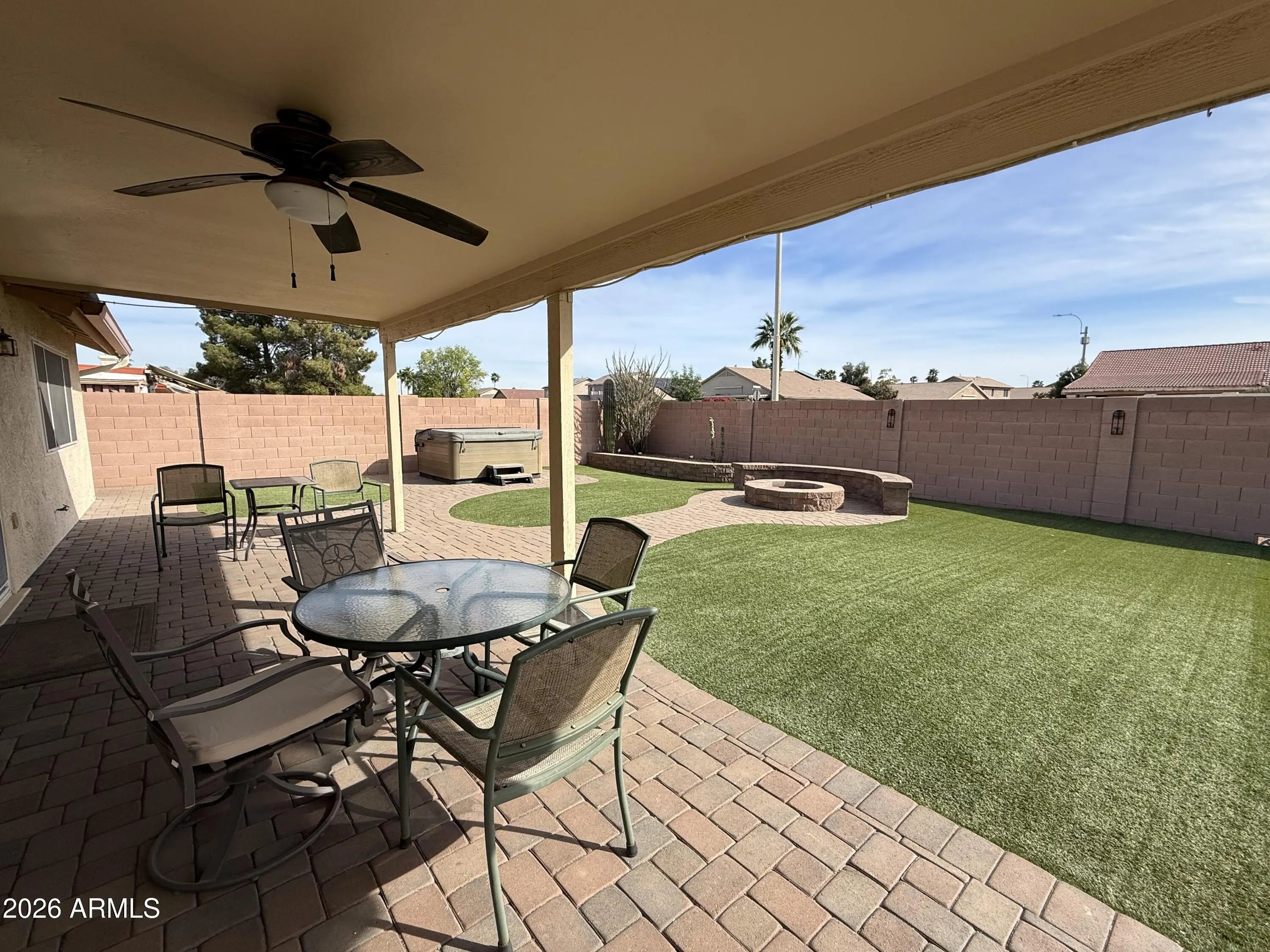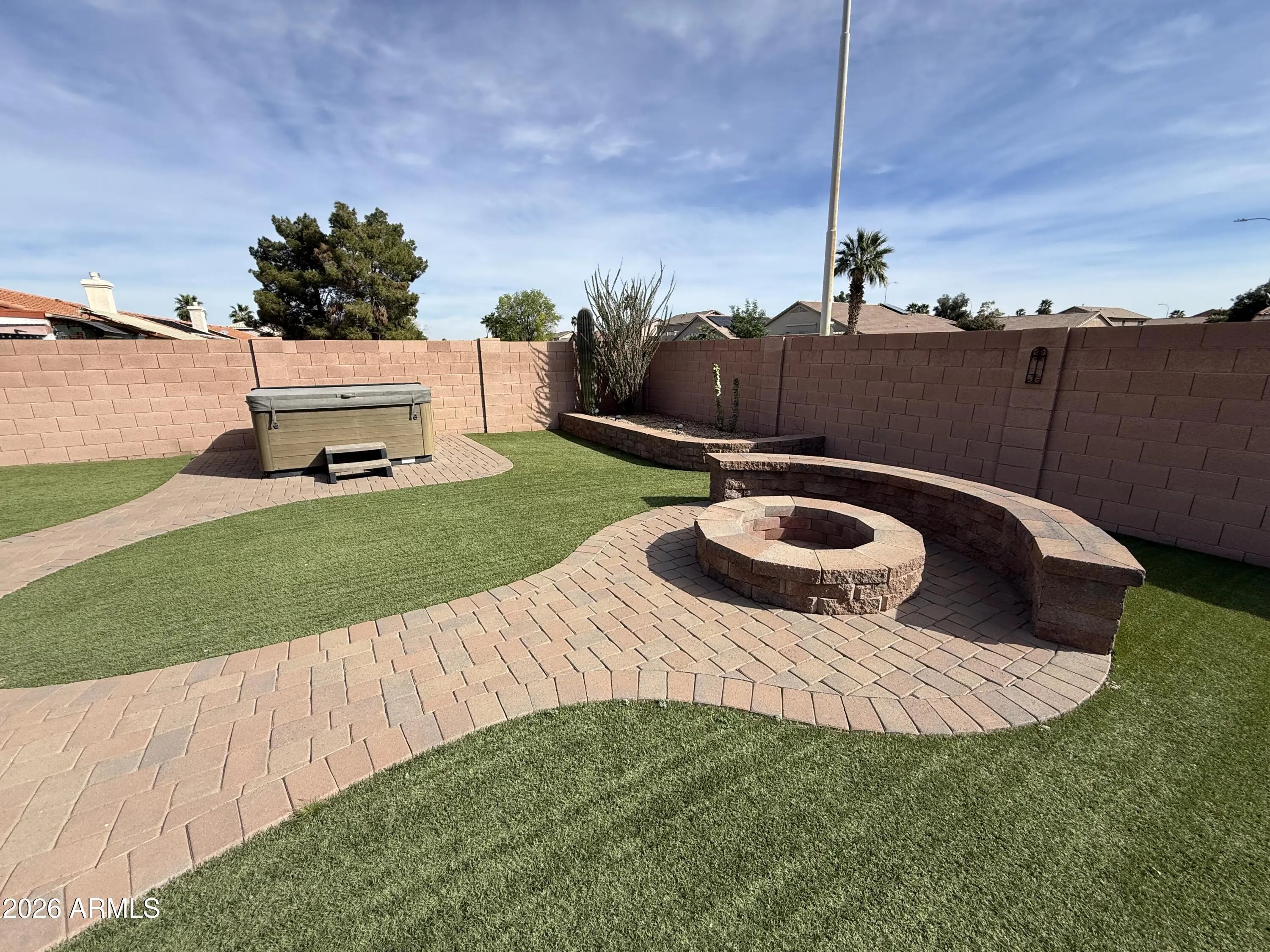 What a find near the heart of Chandler. Here is a well maintained and beautifully updated home with vaulted ceilings, NO HOA with RV Gate and Parking. This home has an open and split bedroom floor plan and what a back yard! You will love spending time in this well-designed oasis, with minimal upkeep and privacy (no one behind) Covered Patio, artificial turf, pavers, built in firepit and seating, hot tub, fountain, RV setup with dump station, electric, and water supply. Kitchen has 42' cabinets w soft close doors, matching stainless appliances, granite countertops. New quality 9x70' LVP Flooring and new carpet. Have comfort knowing the expensive things done: HVAC is a 2019 Trane system, Roof in 2016, dual pane vinyl windows in 2016. Hurry over and make this wonderful Home yours Today!