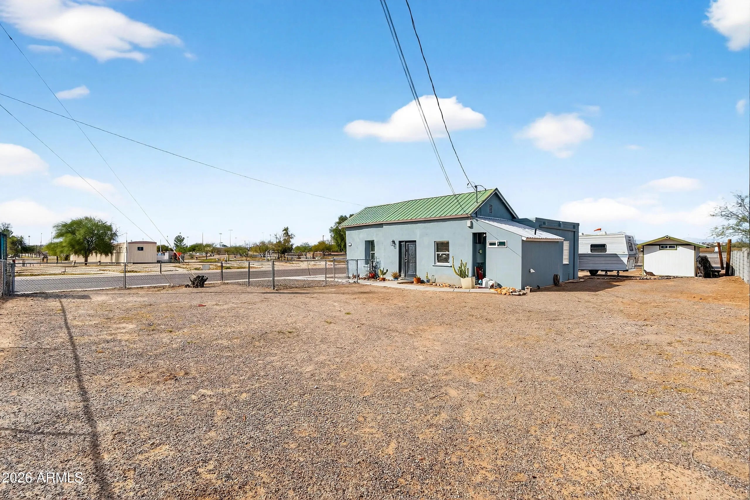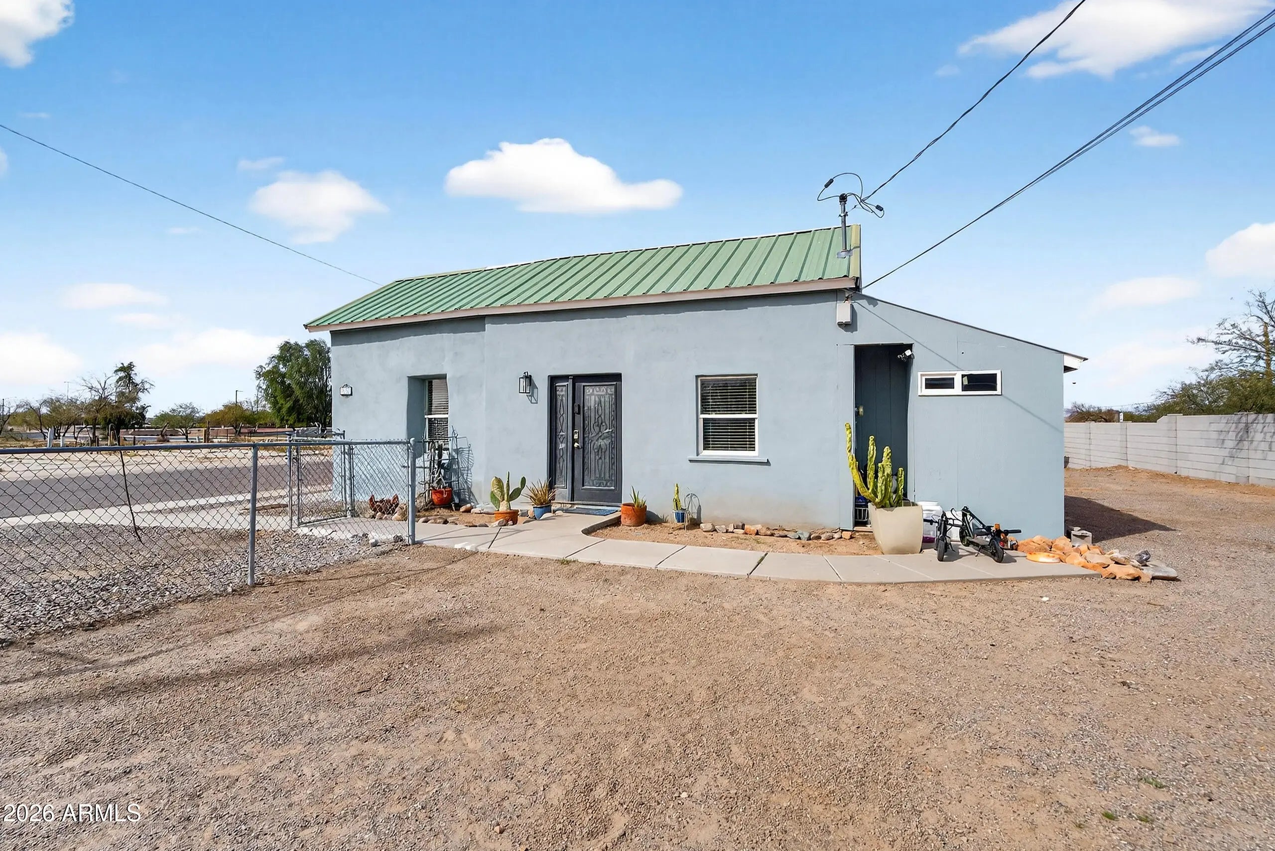 Step into this Historical gem that offers a rare blend of vintage soul and expansive outdoor freedom in the heart of Florence's Historical District! This is an unbeatable location within easy walking distance of the Community, Library & Aquatics Center! Situated on a massive 0.23-acre corner lot with no HOA, this property is a dream for those seeking room to breathe, featuring a large RV gate, a sturdy metal roof, and breathtaking mountain views. The heart of the home shines with a stunning kitchen upgrade, boasting elegant Shaker cabinetry and a stylish tile backsplash that perfectly complements this home. New LVP flooring in Living room! Retreat to the expansive large Master Bedroom addition, this property offers the space and privacy you've been searching for. Whether you're looking for a unique desert retreat, a high-character rental, or a spacious lot to make your own, this home places you within walking distance of historic landmarks and local dining, capturing the quintessential spirit of small-town Florence!