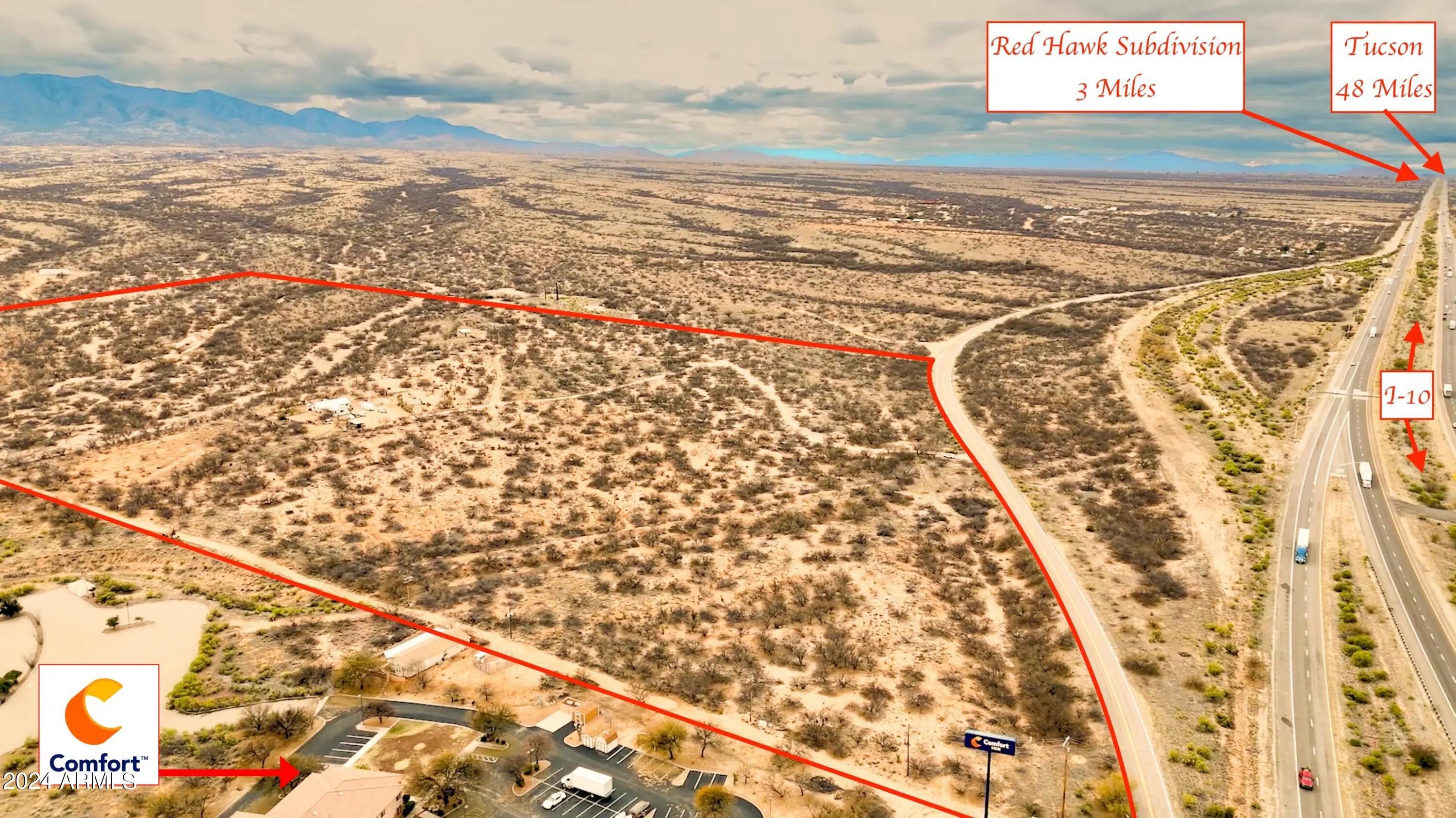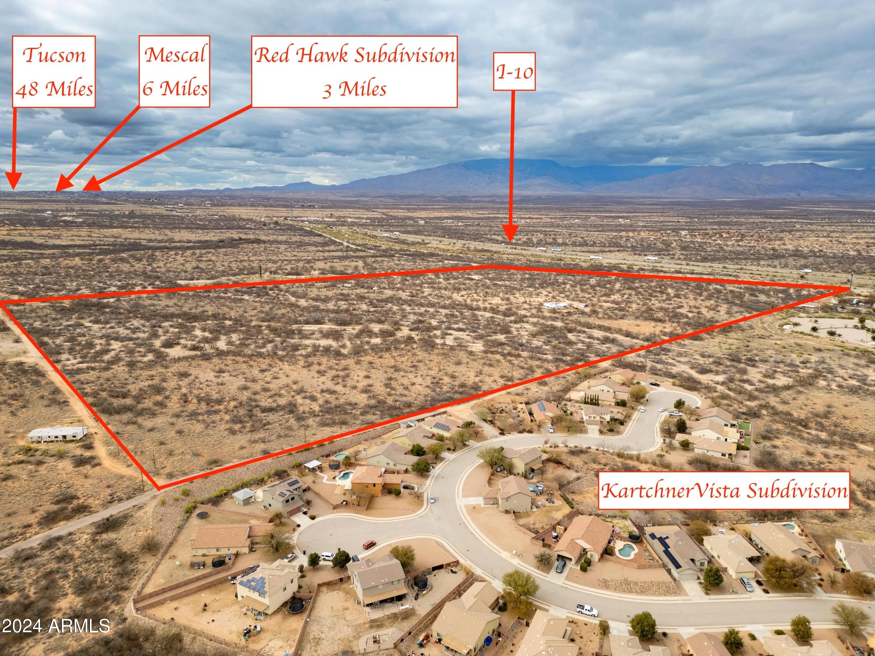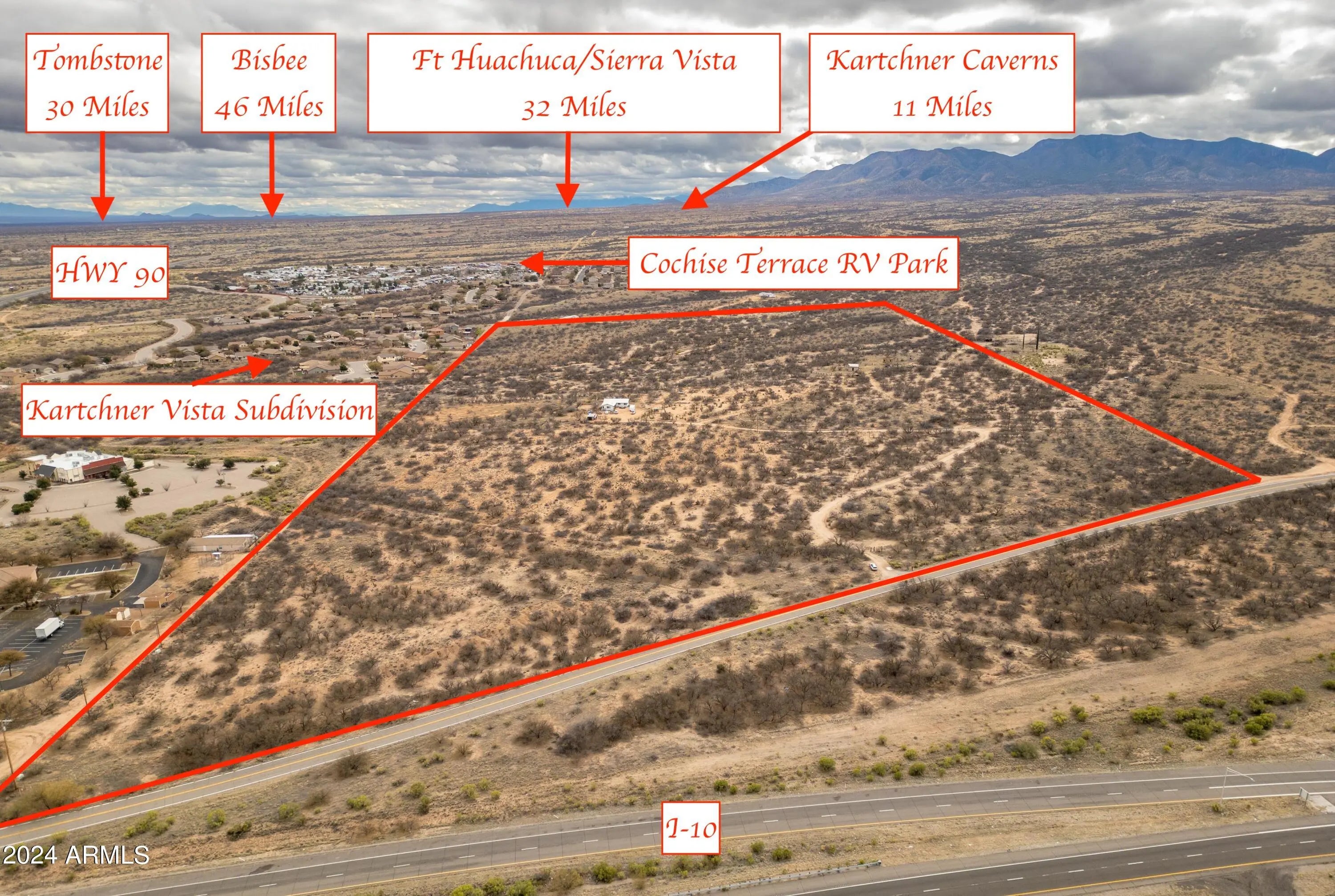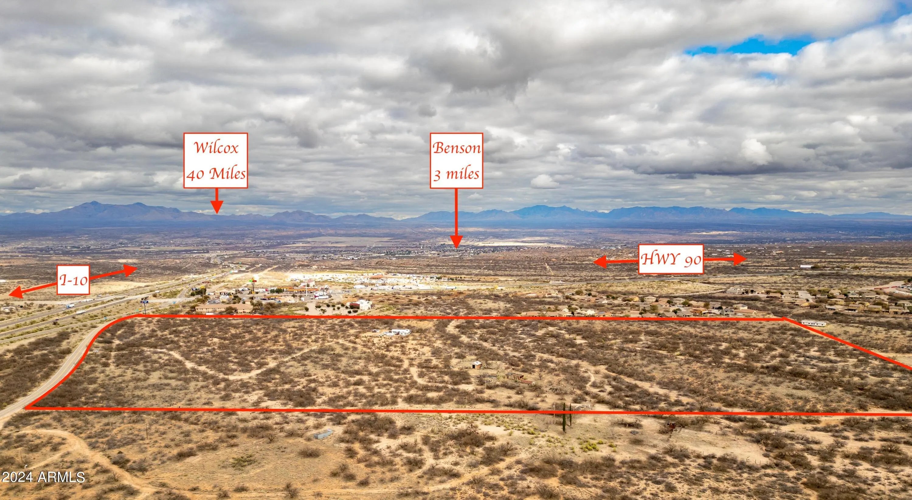 Incredible investment opportunity. Approx 65 acres of prime property with I-10 frontage. Growing commercial and residential area. New Maverick gas station/convenience store just broke grown nearby. Kartchner Vista Subdivision already abuts the south east portion of the property. Multiple RV Parks and hotels in the area. Four successful national fast food franchises on nearby properties. Water already connected to City of Benson. With zoning approval, envision commercial buildings along the over 1100 sq ft of I-10 frontage and maybe a subdivision or RV park along the remaining portion. Watch full video and labeled photos to appreciate the amazing location and many possibilities for this property. Property has a residence leased month to month. Please do not disturb tenant.