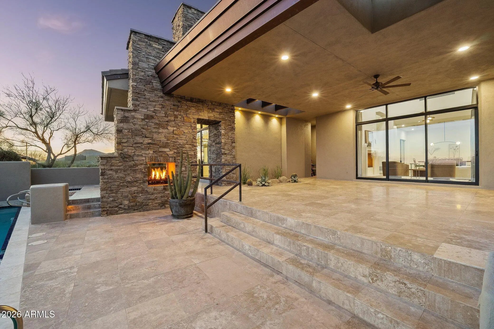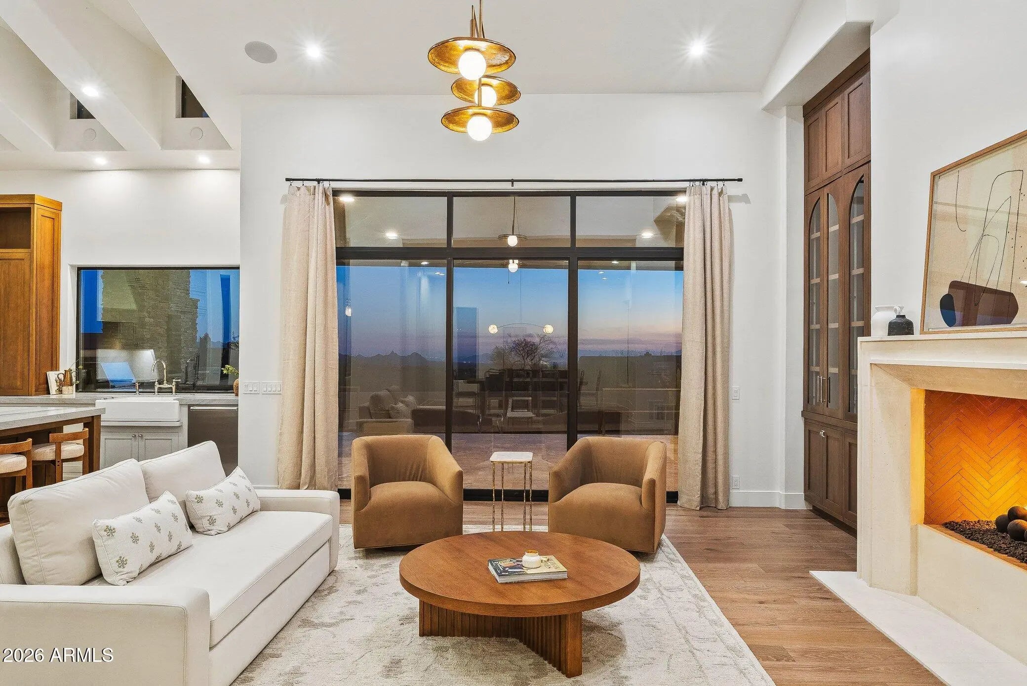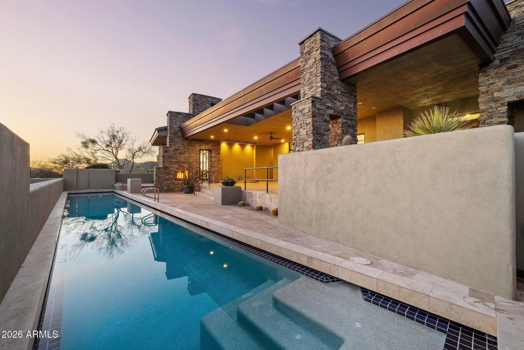 Framed by sweeping views of Pinnacle Peak and city lights, this fully reimagined residence is set within the prestigious guard-gated community of Desert Mountain, offering privacy and refined desert living. Expansive walls of sliding glass create seamless indoor-outdoor flow, opening to a generous covered patio complete with a built-in BBQ, fireplace, lap pool, and spa--perfectly suited for both vibrant entertaining and quiet evenings beneath the Arizona sky. The thoughtfully designed main level includes three en-suite bedrooms and a dedicated office, complemented by a detached guest casita that provides comfort and flexibility for visitors. The chef's kitchen is appointed with Sub-Zero and Wolf appliances, custom cabinetry, and elevated finishes throughout. The primary suite serves as a private retreat, featuring a spa-inspired bath, generous walk-in closet, fireplace sitting area, and direct access to the patio and spa. The three-car garage offers ample parking and storage, with convenient access to the main living level via steps or elevator. Located within one of North Scottsdale's most exclusive private golf communities, this home embodies the Desert Mountain lifestyle.